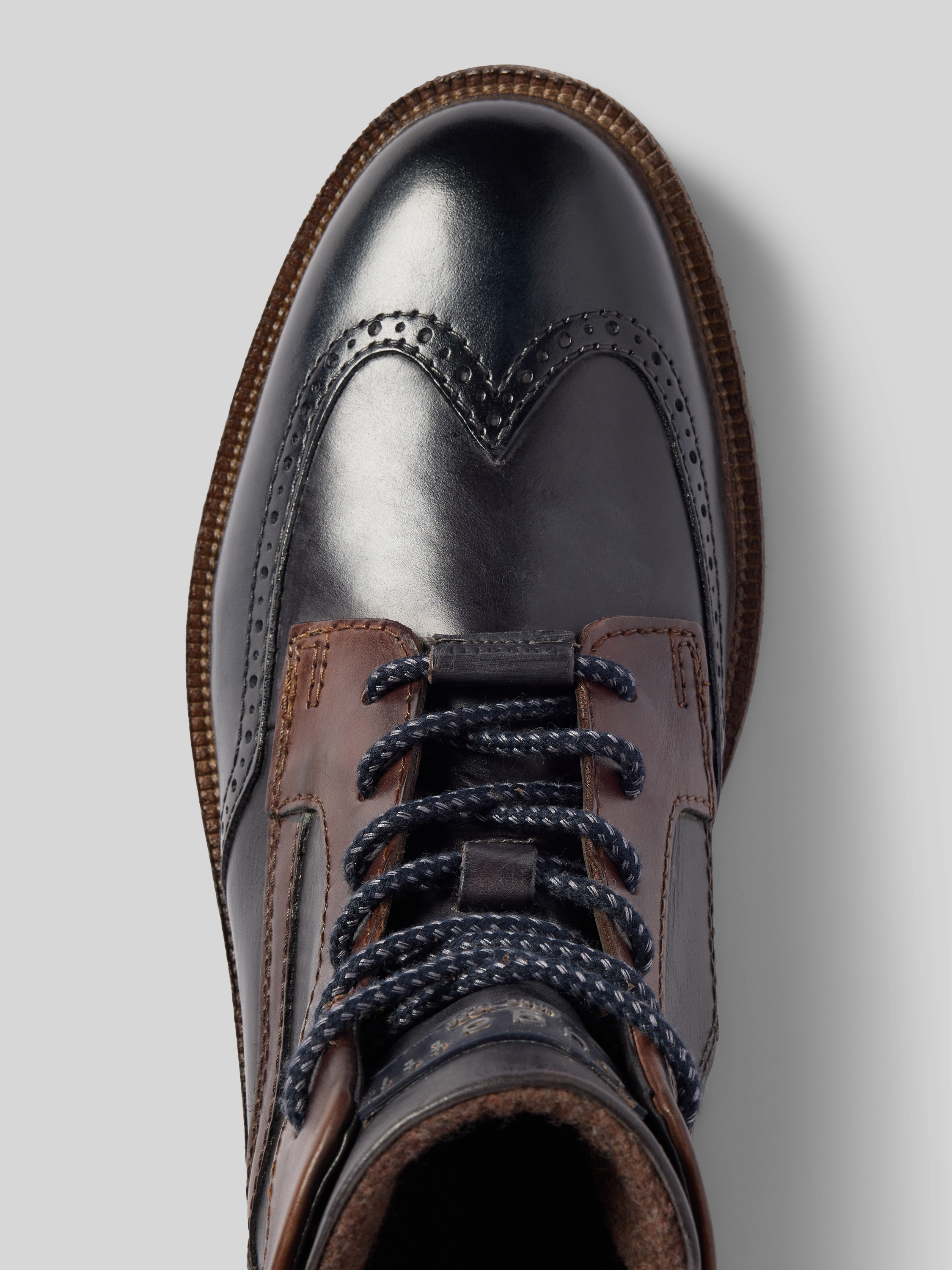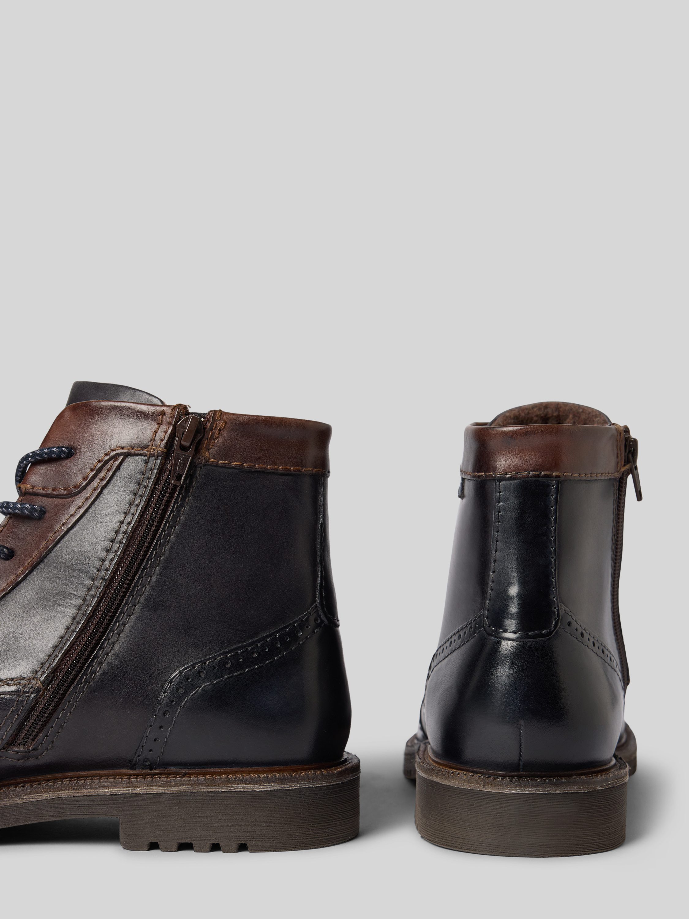 Der Herrenschnürstiefel Seve von bugatti aus echtem Leder fällt durch seine abgerundete Spitze und das dezente Label-Detail auf. Die strukturierte Sohle sorgt unterwegs für angenehmen Halt, während die klassisch-zeitlose Form vielseitige Kombinationsmöglichkeiten im Alltag ermöglicht. Ein Schuh, der Komfort und Stil verbindet.