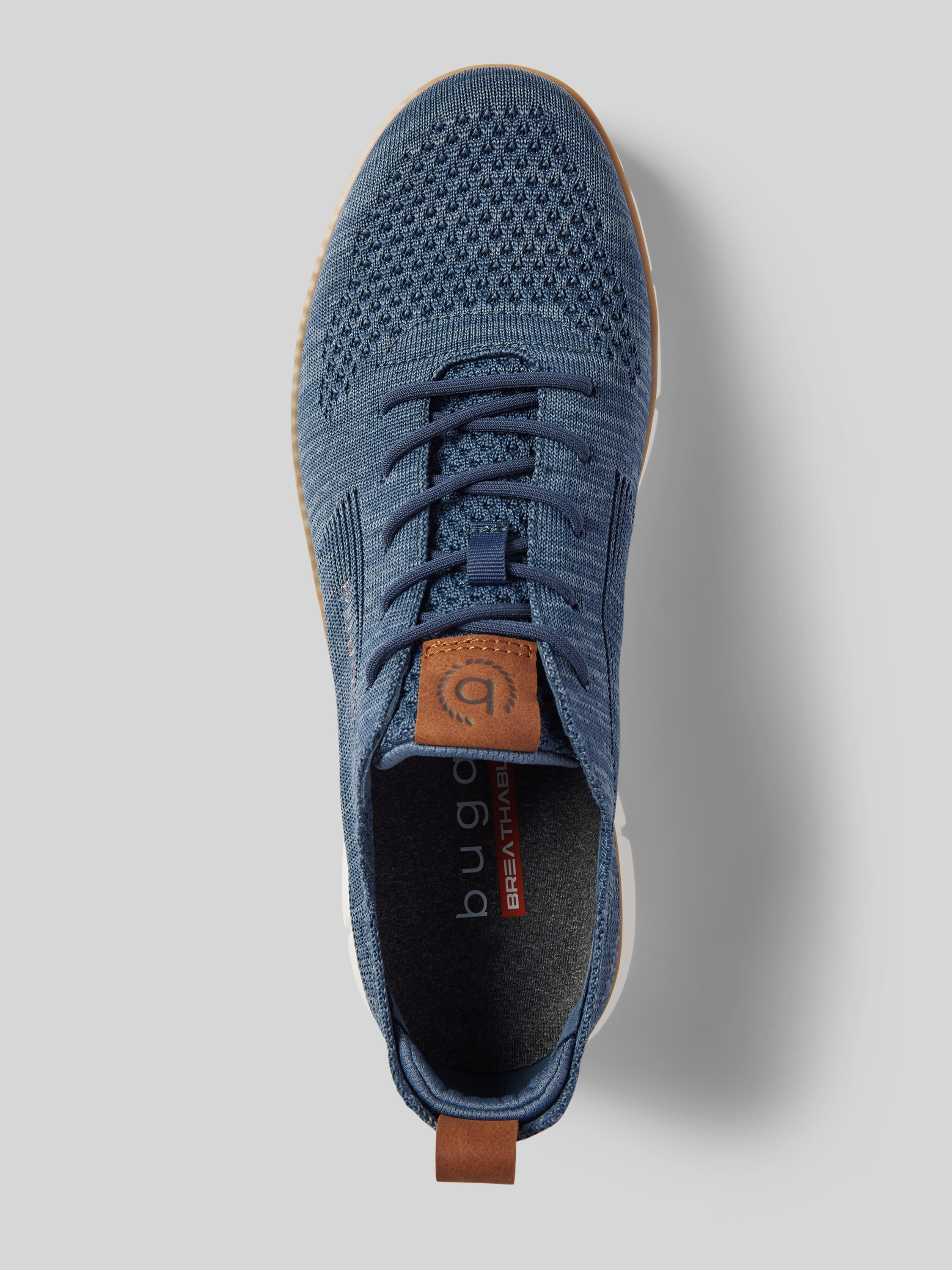 Der Herren Sneaker von bugatti, Modell 'Pasadena', punktet mit einer abgerundeten Spitze und einem praktischen Schnürverschluss, der für einen sicheren Sitz sorgt. Das dezente Label-Stitching verleiht dem Schuh einen eleganten Akzent, während die profilierte Sohle für Komfort auf jedem Untergrund sorgt. Eine Zugschlaufe erleichtert das Anziehen, ergänzt durch ein markantes Label-Badge.