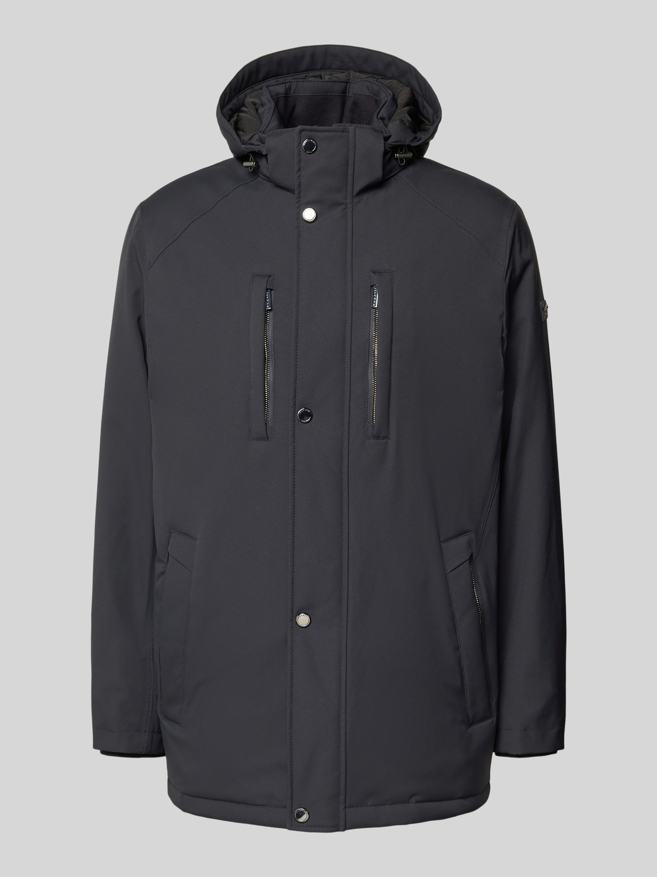 Der Herren Parka mit Kapuze von bugatti präsentiert sich im Regular Fit und sorgt durch seinen durchdachten Schnitt für angenehme Bewegungsfreiheit. Durch die integrierte Kapuze bleibt man bei wechselhaftem Wetter flexibel. Praktische Reißverschlusstaschen erleichtern das Verstauen kleiner Alltagsgegenstände.