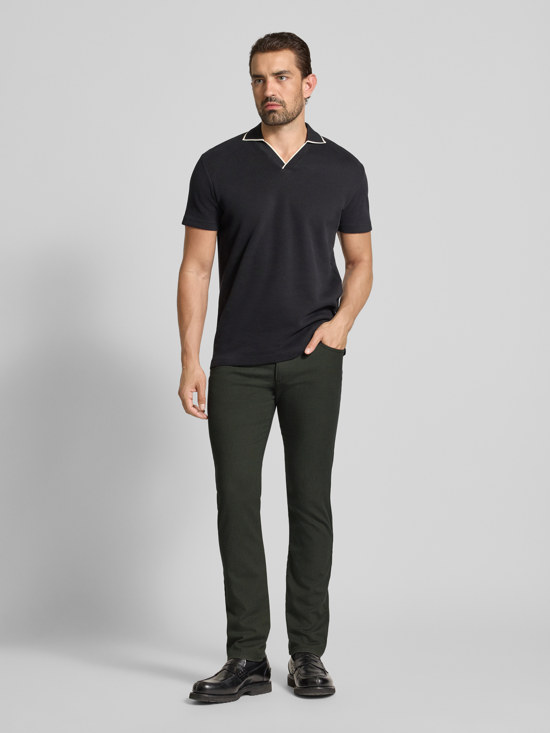 Die Regular Fit Hose 'CORDOBA' von bugatti zeichnet sich durch einen angenehmen Baumwoll-Elasthan-Mix aus, der für Komfort und Bewegungsfreiheit sorgt. Das dezente Label-Detail und die praktischen Gesäßtaschen ergänzen das durchdachte Design, das sich ideal für vielfältige Anlässe eignet.