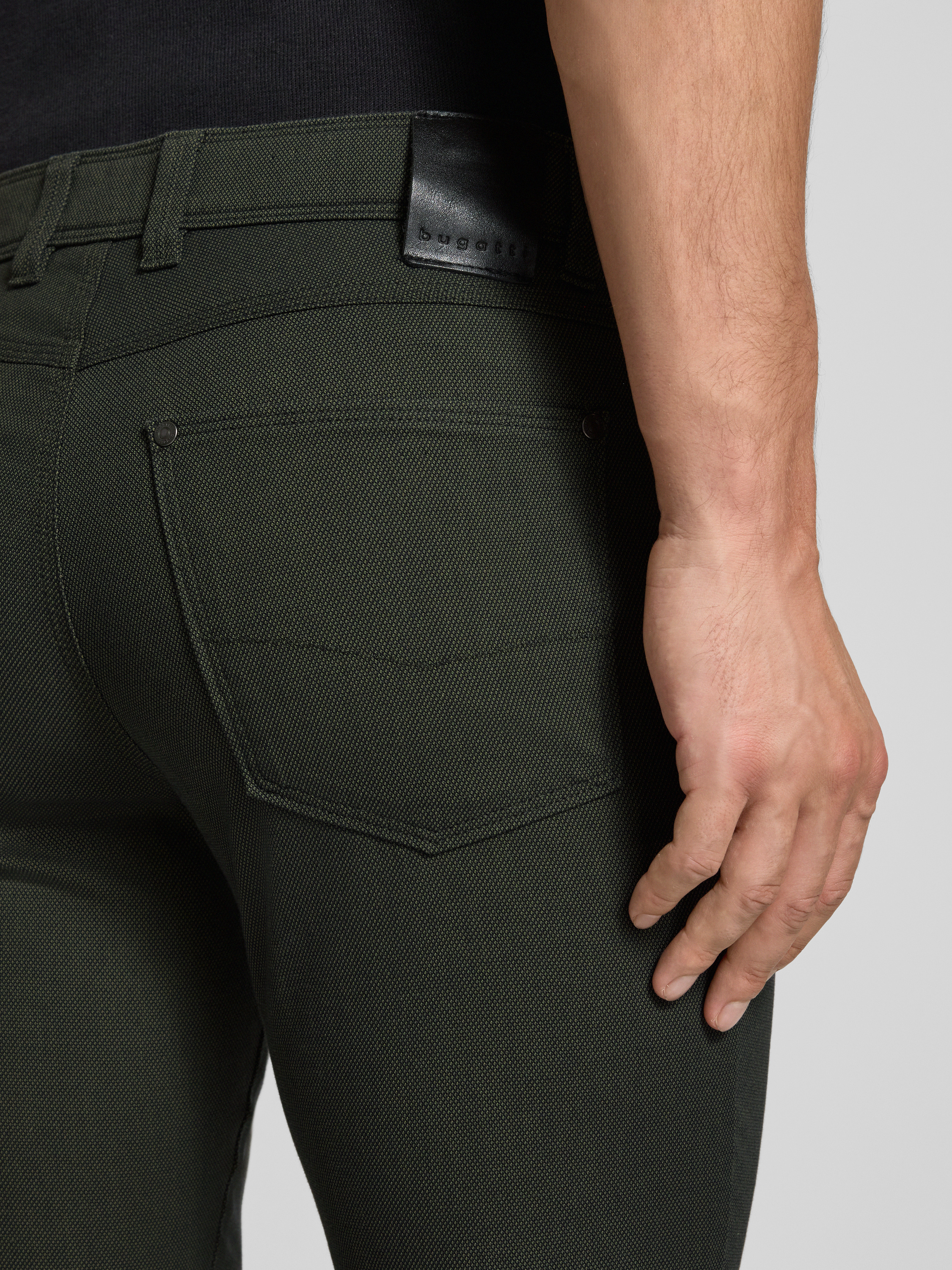 bugattiRegular Fit Hose mit Label-Detail Modell 'CORDOBA' in dunkelgruen