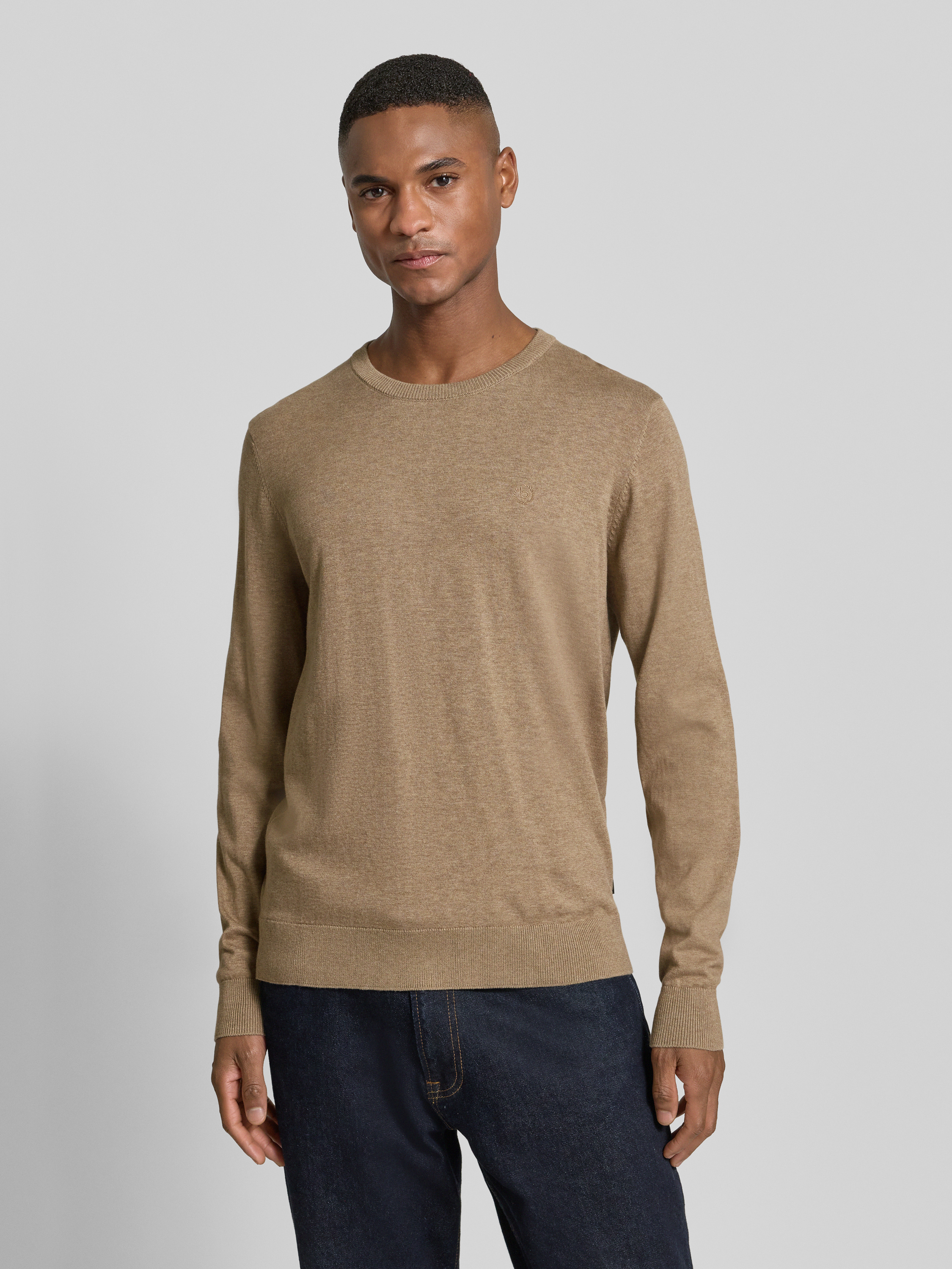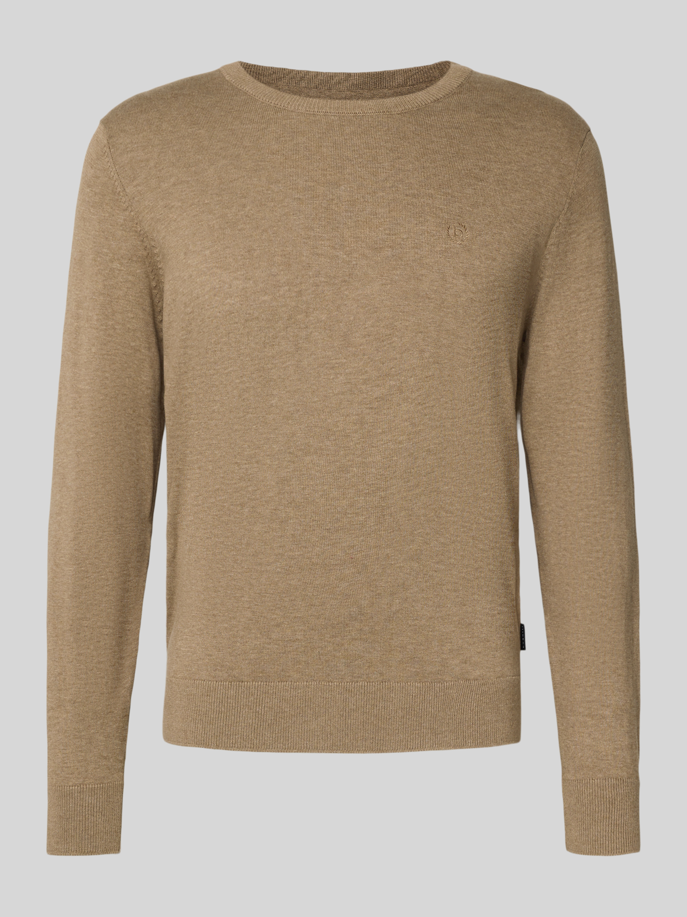• bugatti Strickpullover mit gerippten Abschlüssen Beige