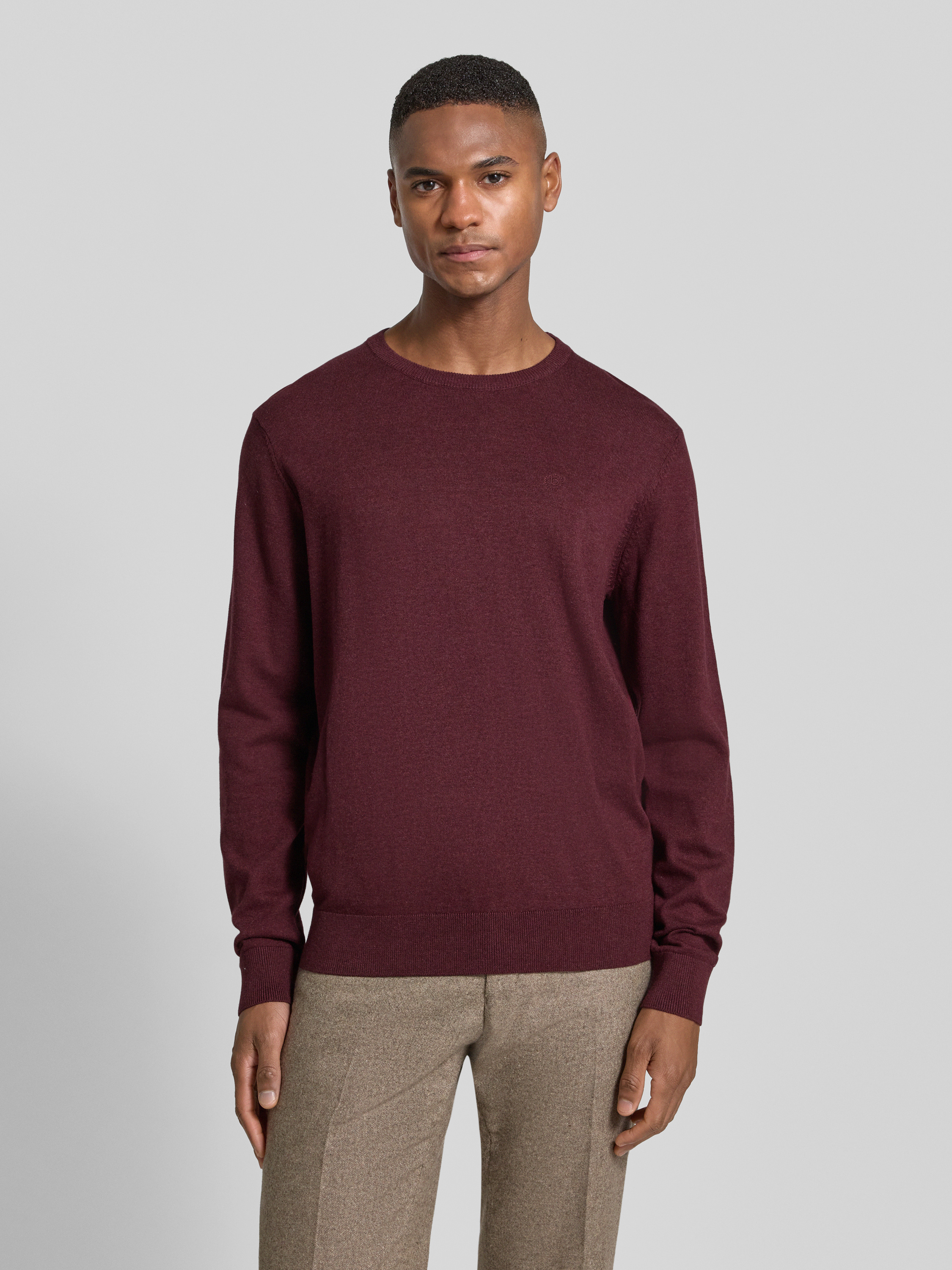 Der Herren Strickpullover von bugatti aus reiner Baumwolle zeigt sich in Regular-Fit und sorgt so für angenehmen Tragekomfort im Alltag. Durch die gerippten Abschlüsse erhält das Modell eine dezente Struktur, während der Rundhalsausschnitt vielseitige Kombinationsmöglichkeiten eröffnet. So lässt sich das Kleidungsstück flexibel in verschiedene Outfits integrieren.
