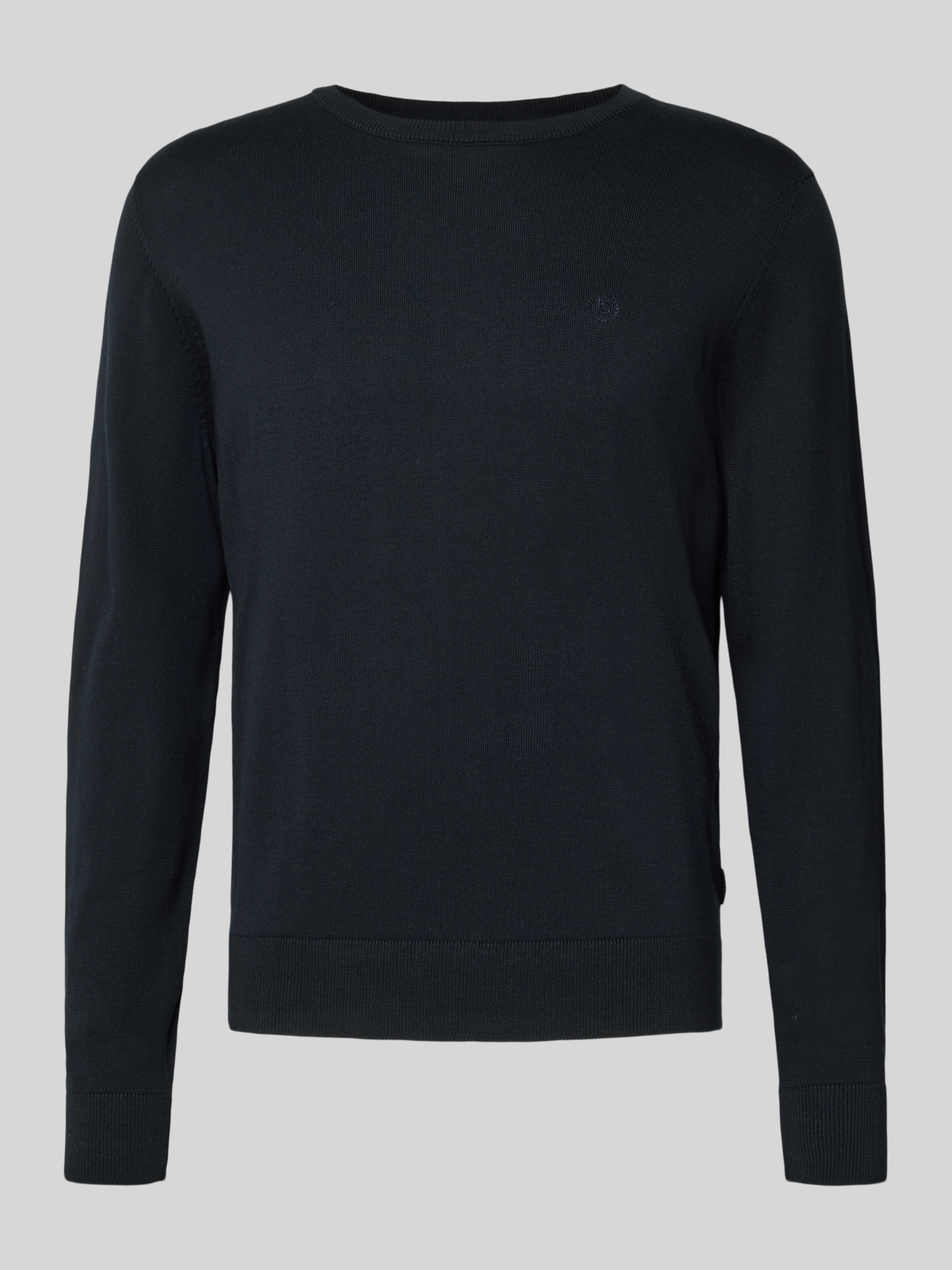 • bugatti Strickpullover mit gerippten Abschlüssen Dunkelblau