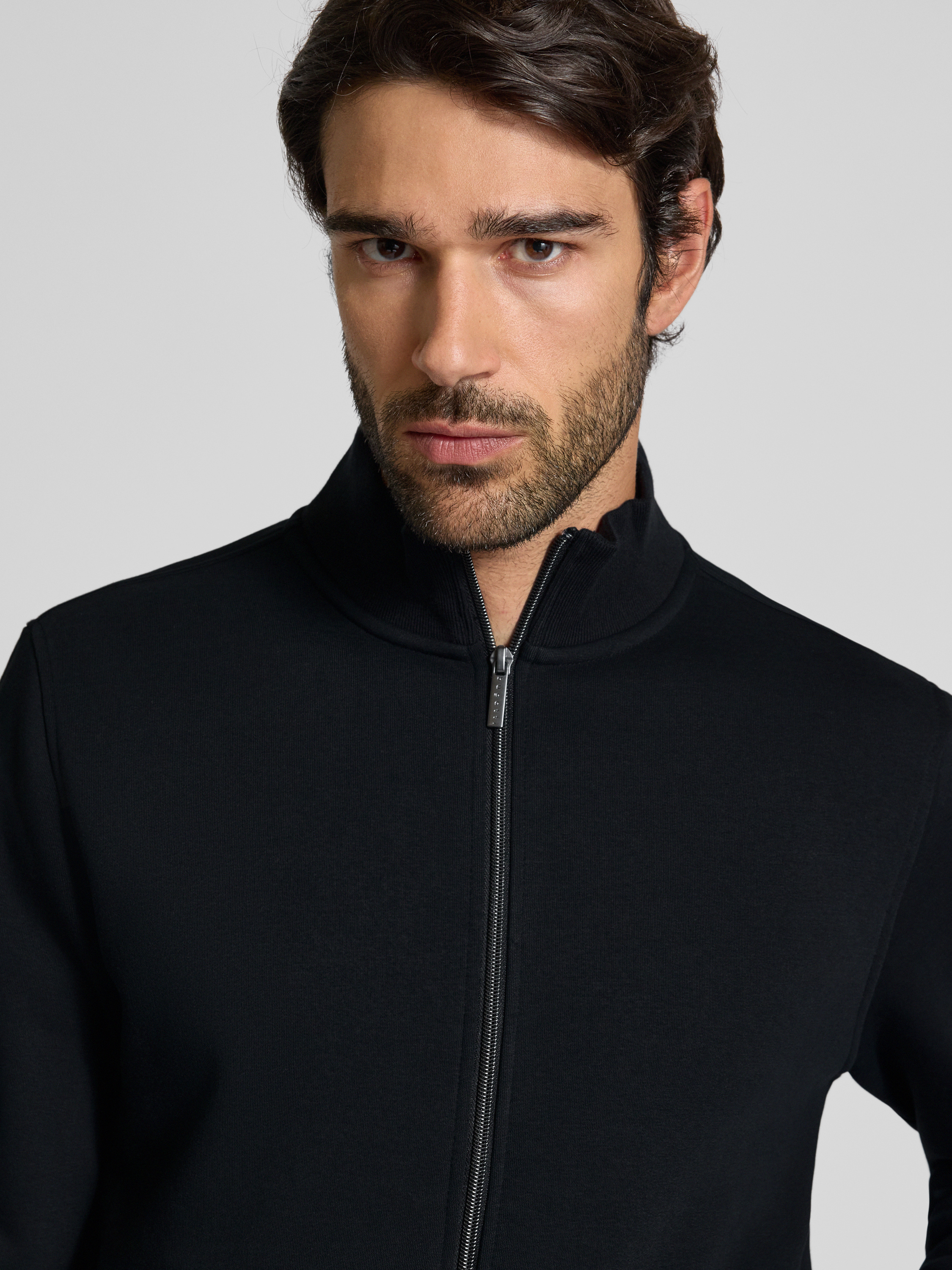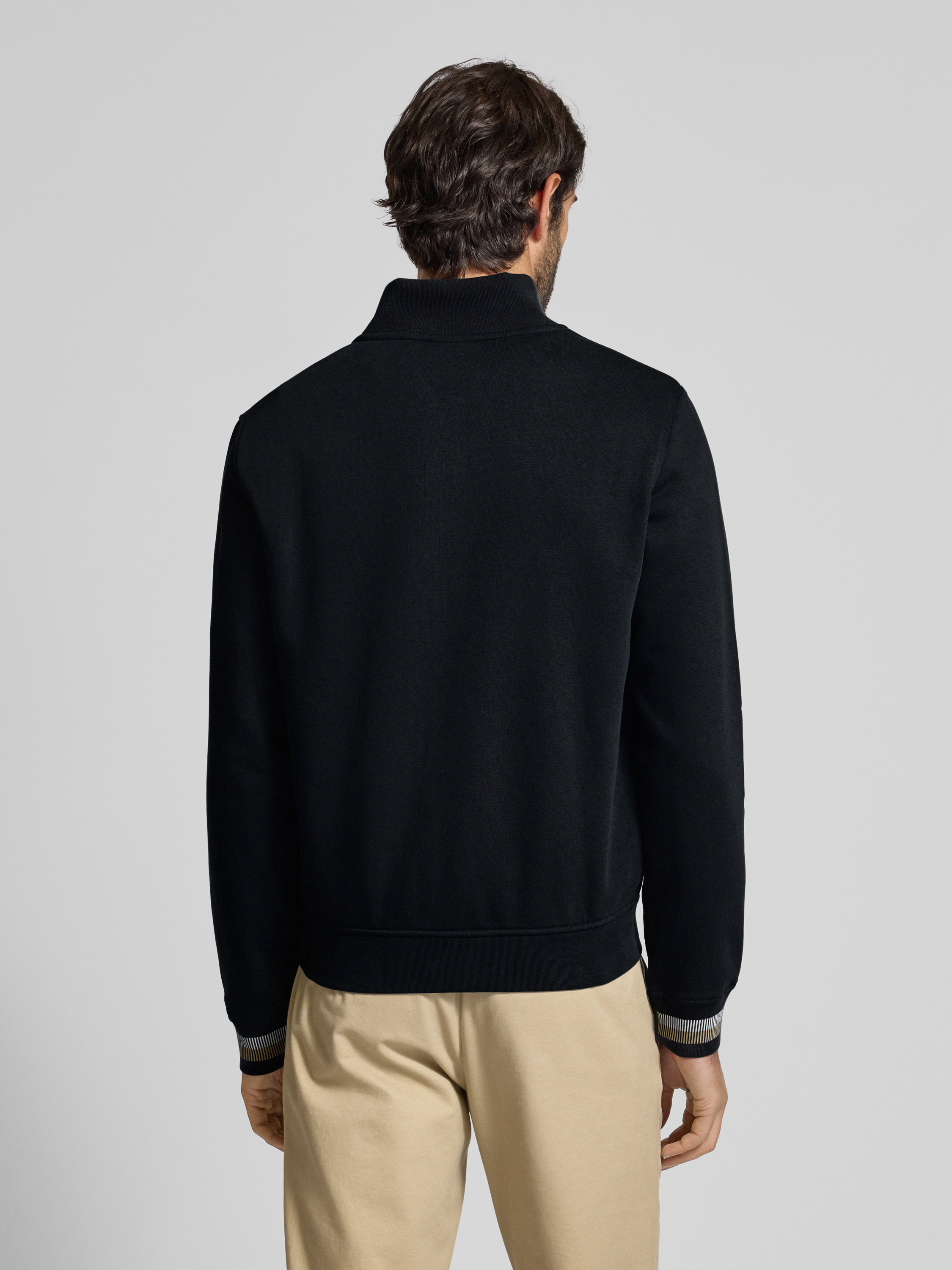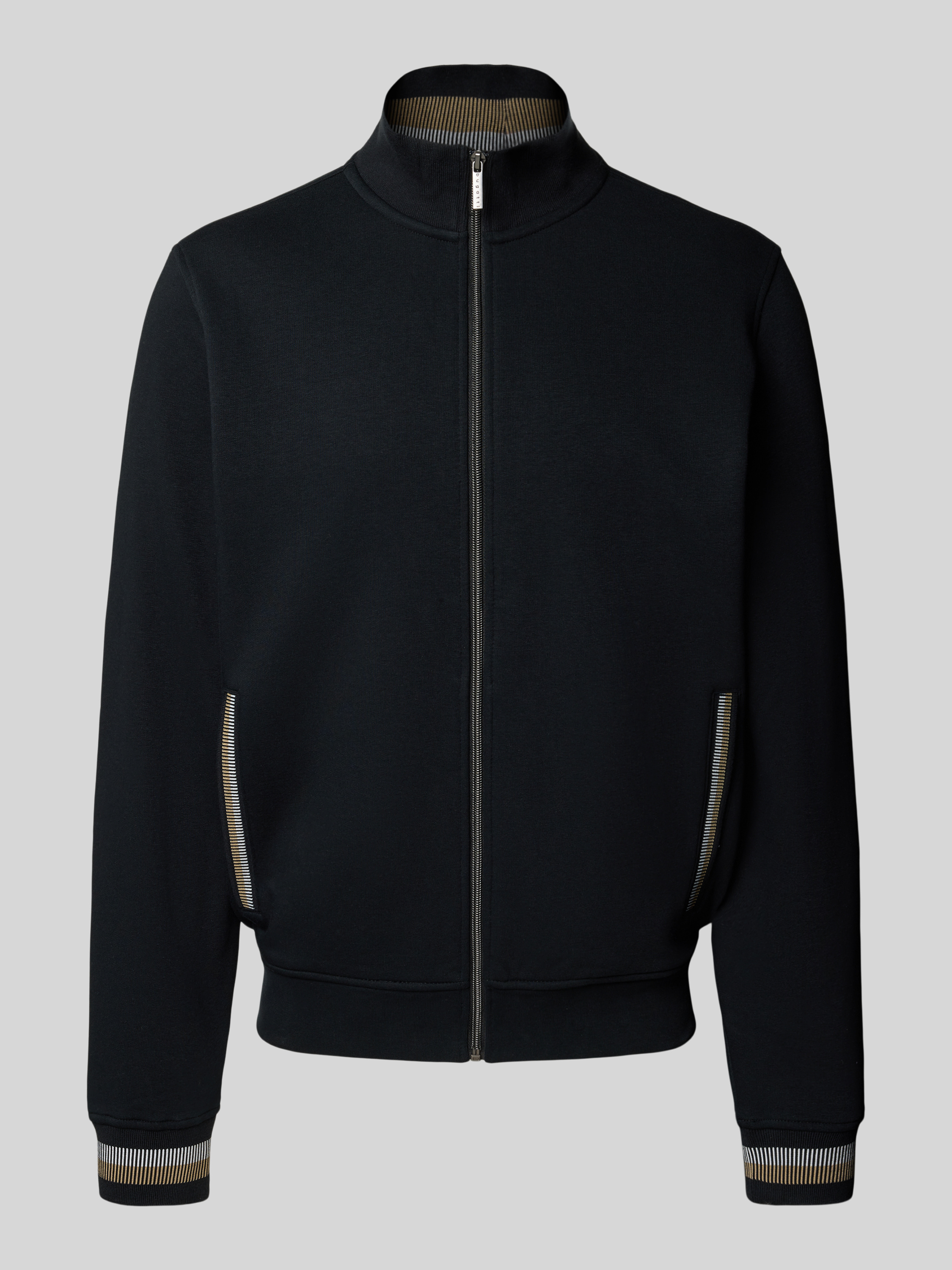 Die Herren Sweatjacke von bugatti, gefertigt aus einem angenehmen Baumwoll-Mix, eignet sich ideal für entspannte Tage. Der Regular Fit sorgt zusammen mit dem markanten Stehkragen für eine lässige Passform, während die praktischen Eingrifftaschen zusätzlichen Komfort bieten. Gerippte Abschlüsse runden das Design harmonisch ab.