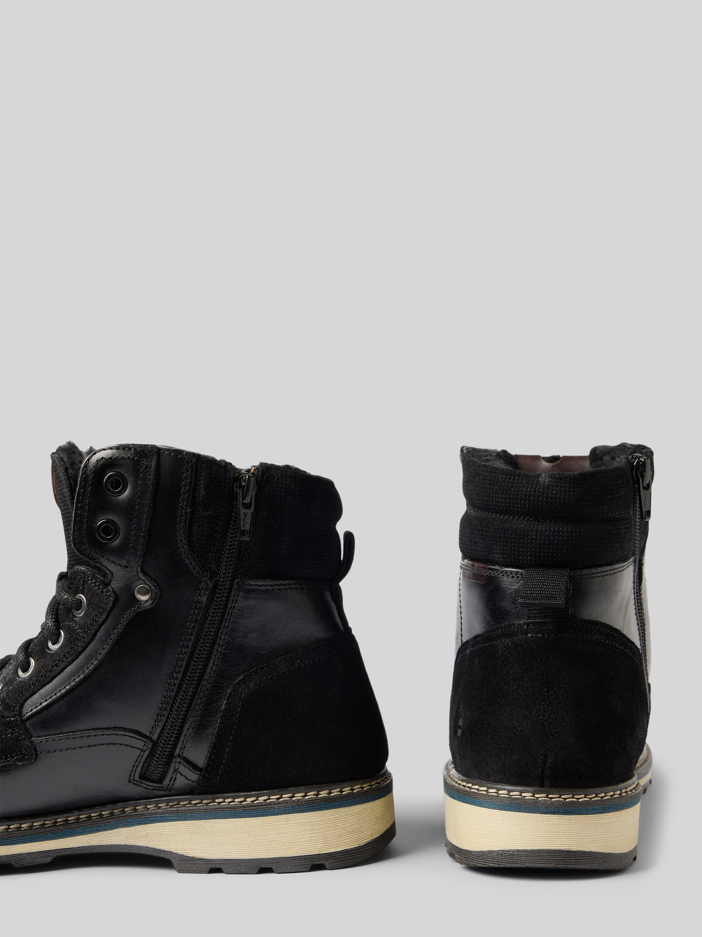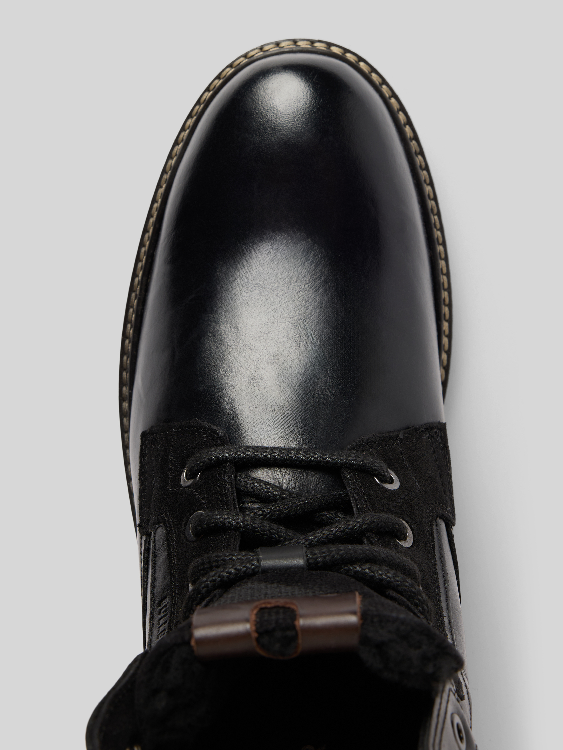 Der Herren Schnürstiefel von BULLBOXER vereint robustes beschichtetes Leder mit einer abgerundeten Spitze und zeigt durch das dezente Label-Detail einen klaren Charakter. Die strukturierte Sohle unterstützt bei alltäglichen Wegen, während der Schnitt Bewegungsfreiheit gewährt. So eignet sich das Modell für vielseitige Einsätze und komfortables Tragen.