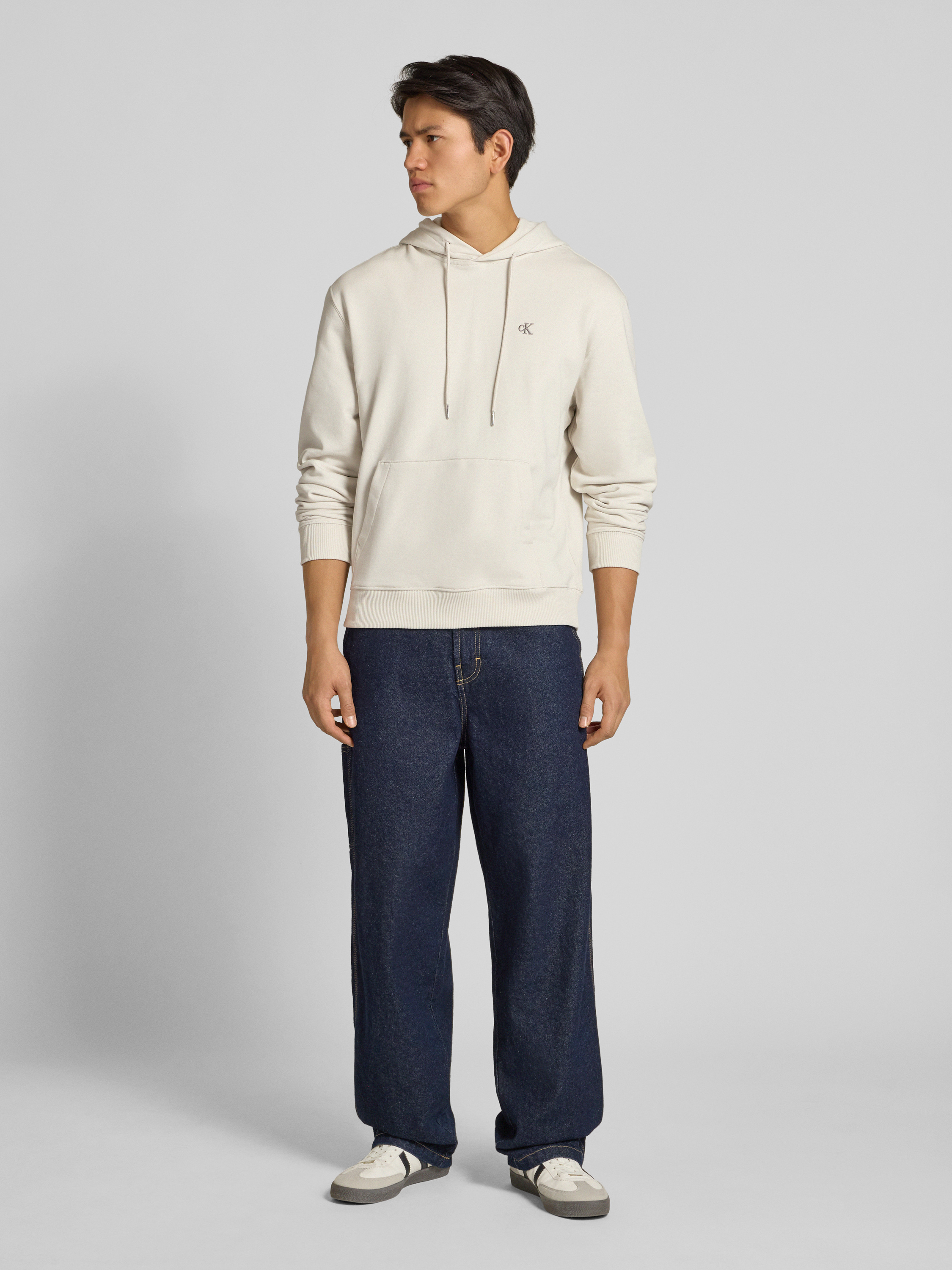 Der Herren Kapuzenpulli von Calvin Klein Jeans zeichnet sich durch reine Baumwolle und einen lockeren Schnitt aus, wodurch man sich angenehm und frei bewegen kann. Eine Kapuze mit Tunnelzug sowie eine praktische Känguru-Tasche sorgen für zusätzlichen Komfort im Alltag. Dezentes Label-Stitching rundet das schlichte Design ab.
