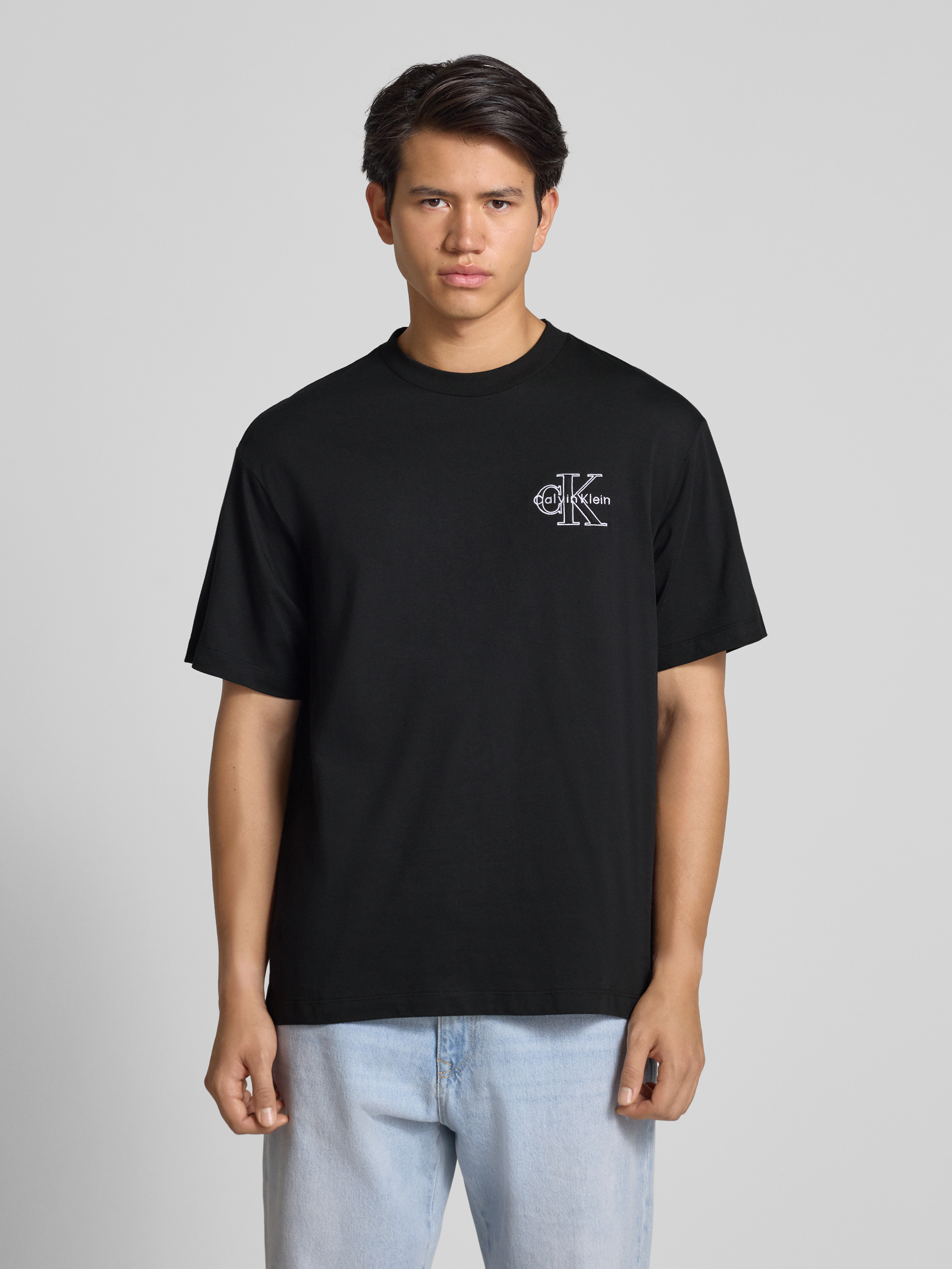 Calvin Klein JeansRegular Fit T-Shirt mit Logo-Stitching Modell 'Micro' in black