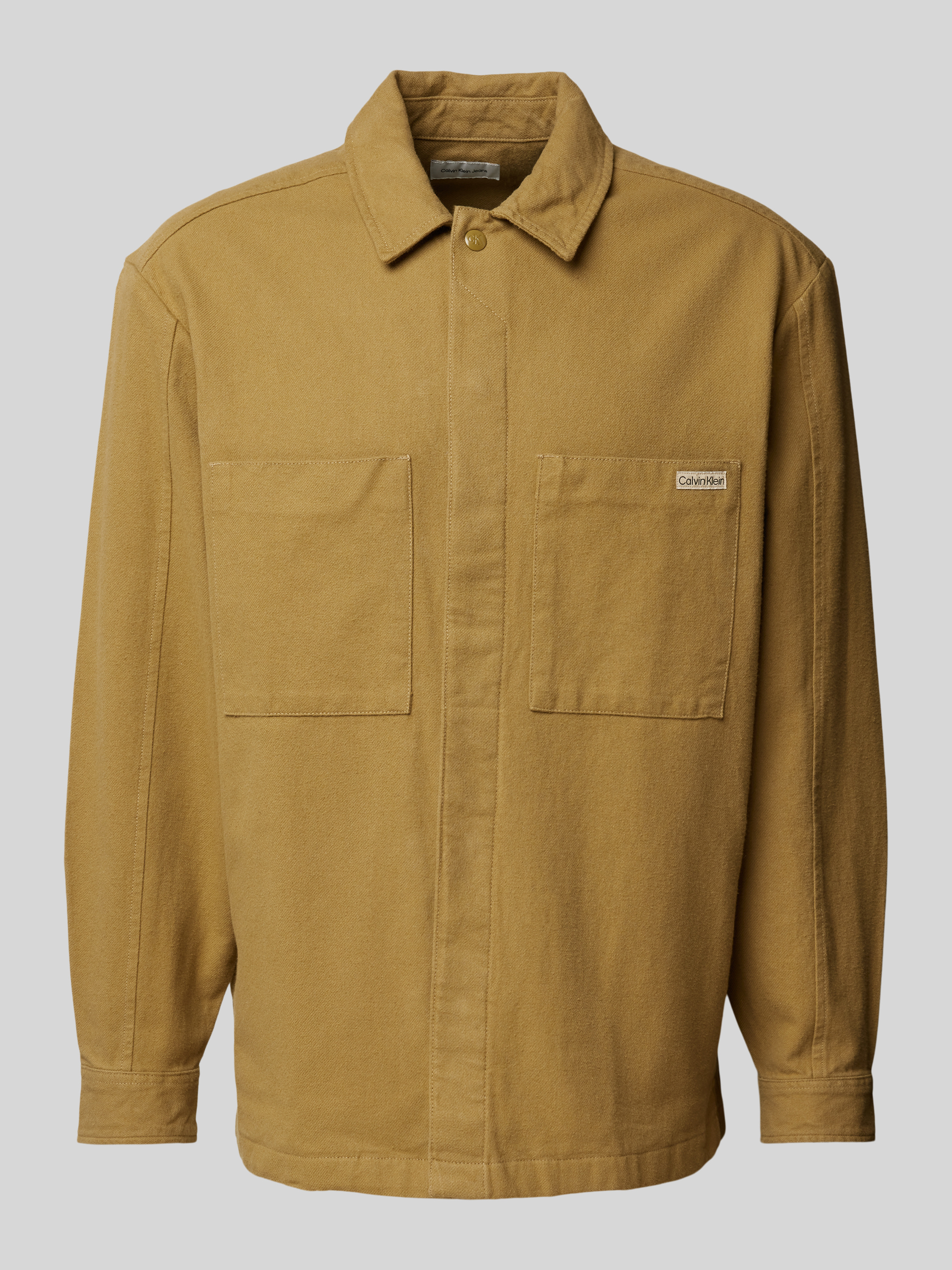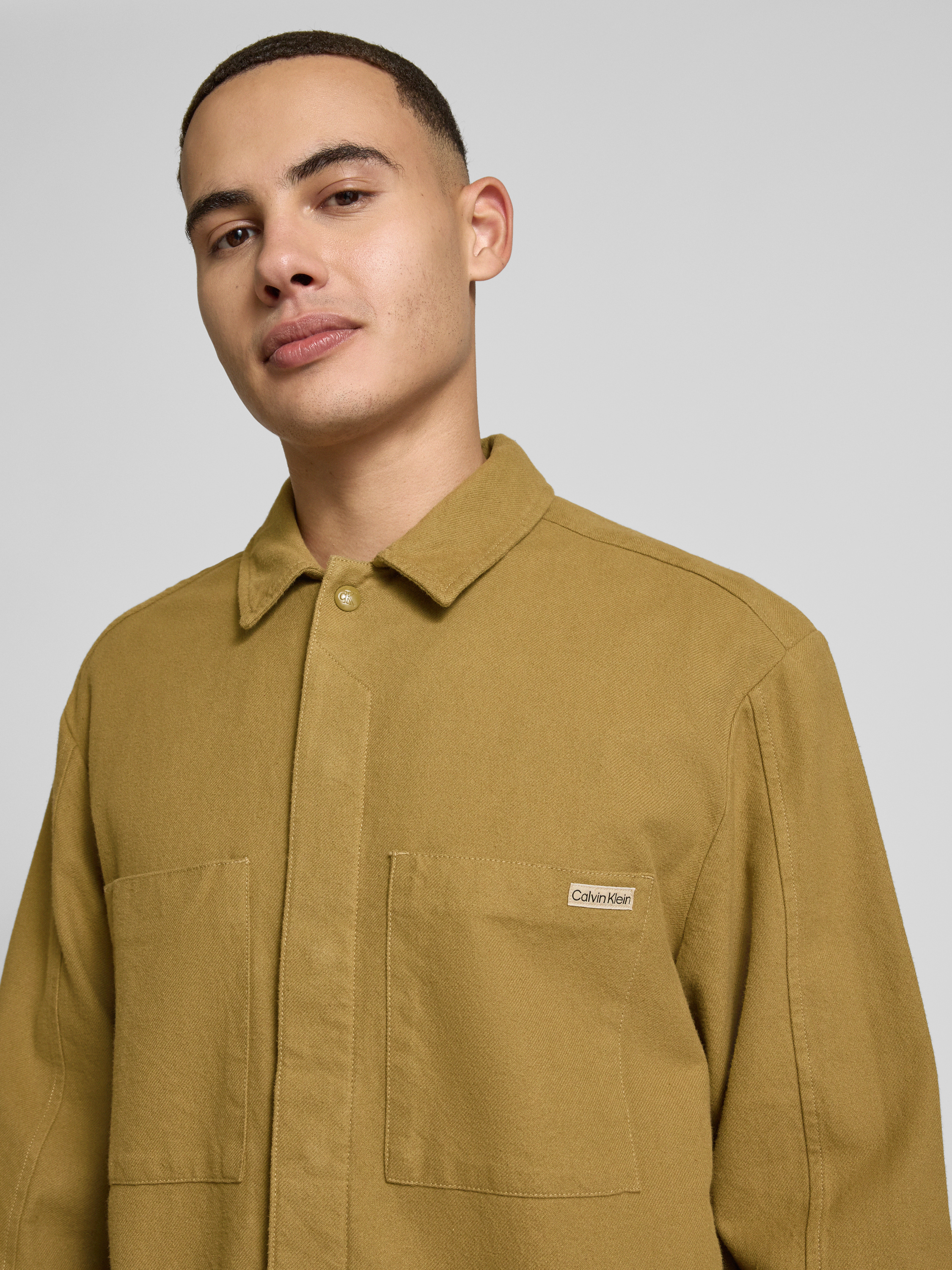Calvin Klein JeansSlim Fit Hemdjacke mit Label-Detail in oliv