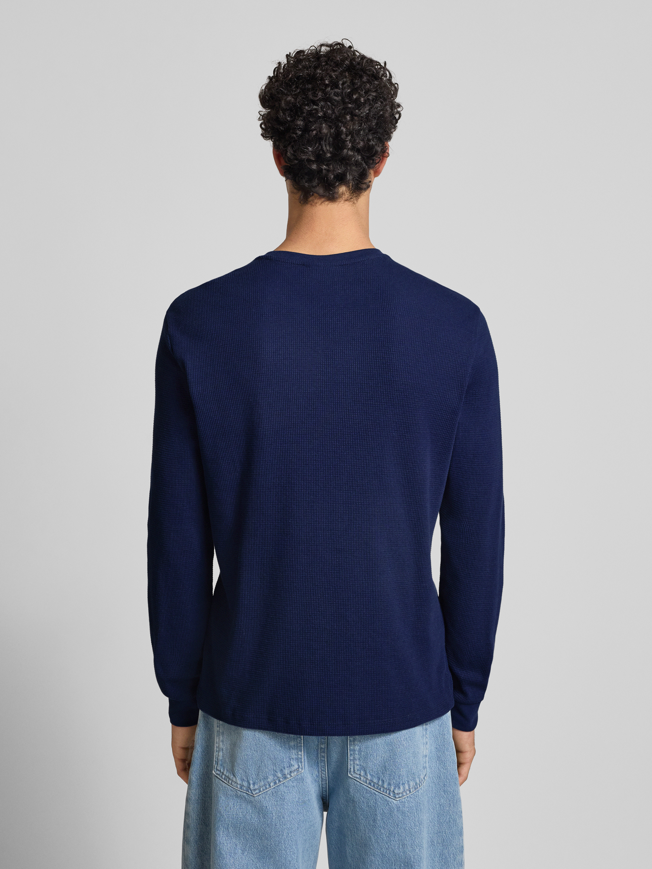 Calvin Klein JeansSlim Fit Longsleeve mit Logo-Patch Modell 'Waffle' in marine