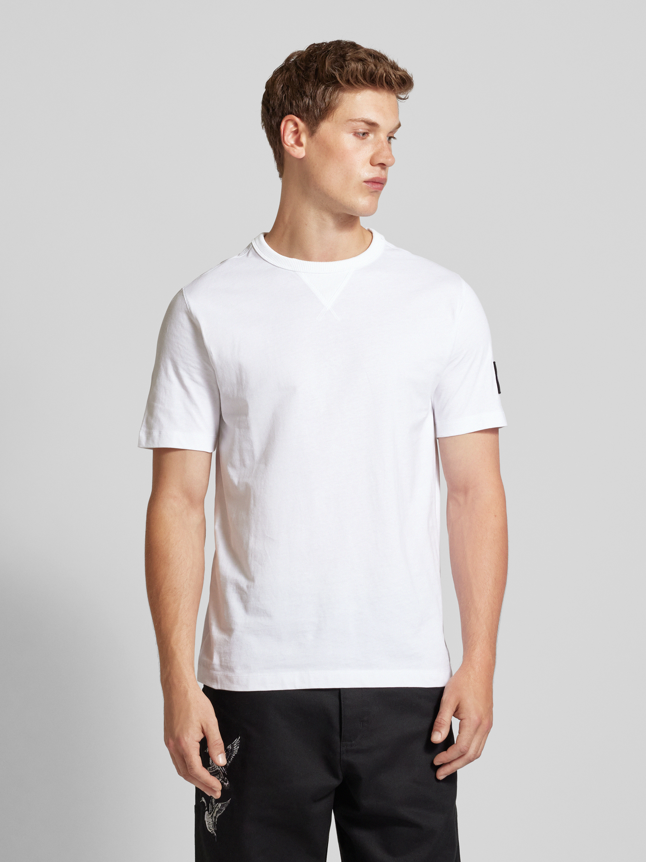 T-Shirt mit Label-Badge in weiss