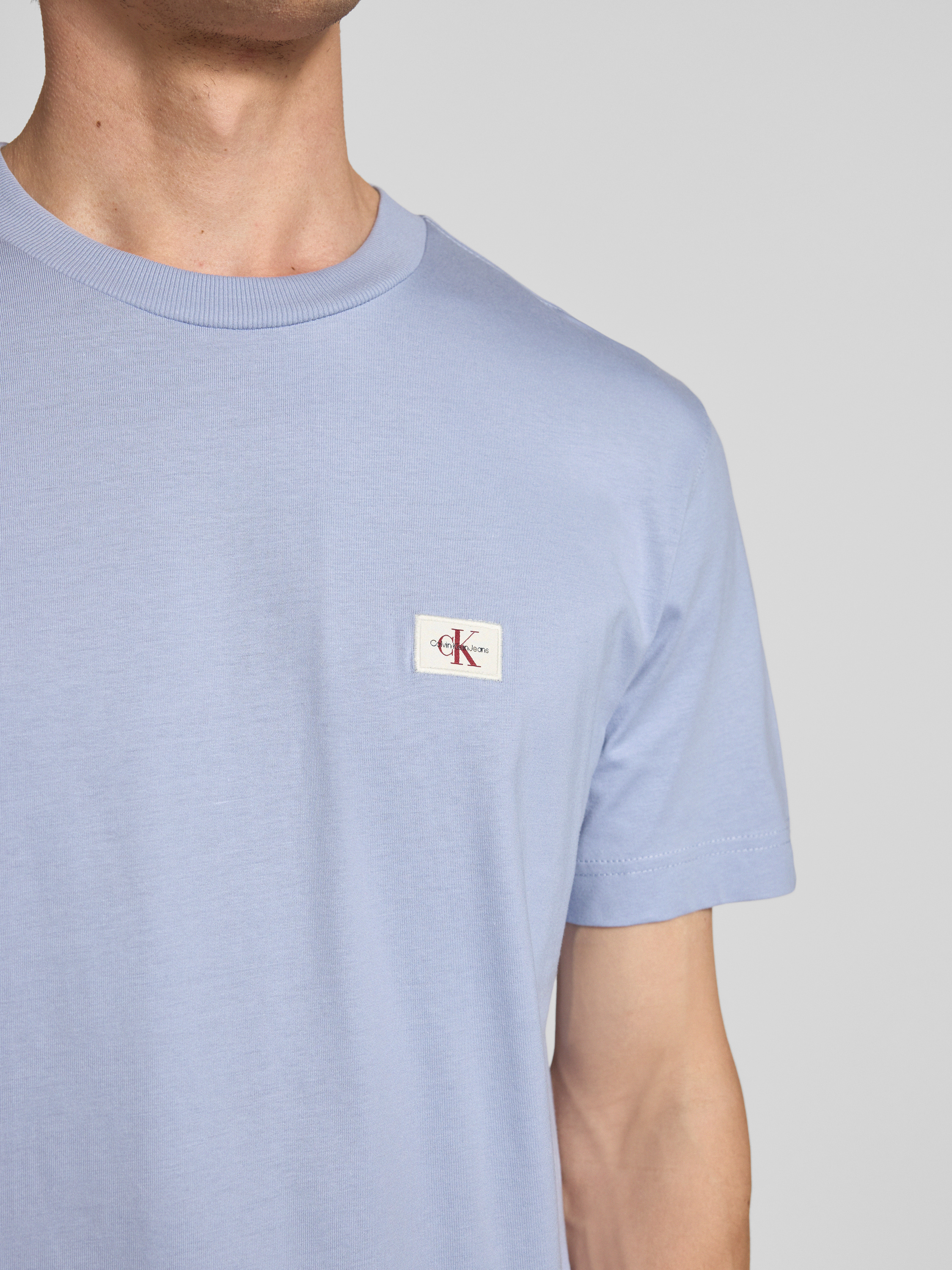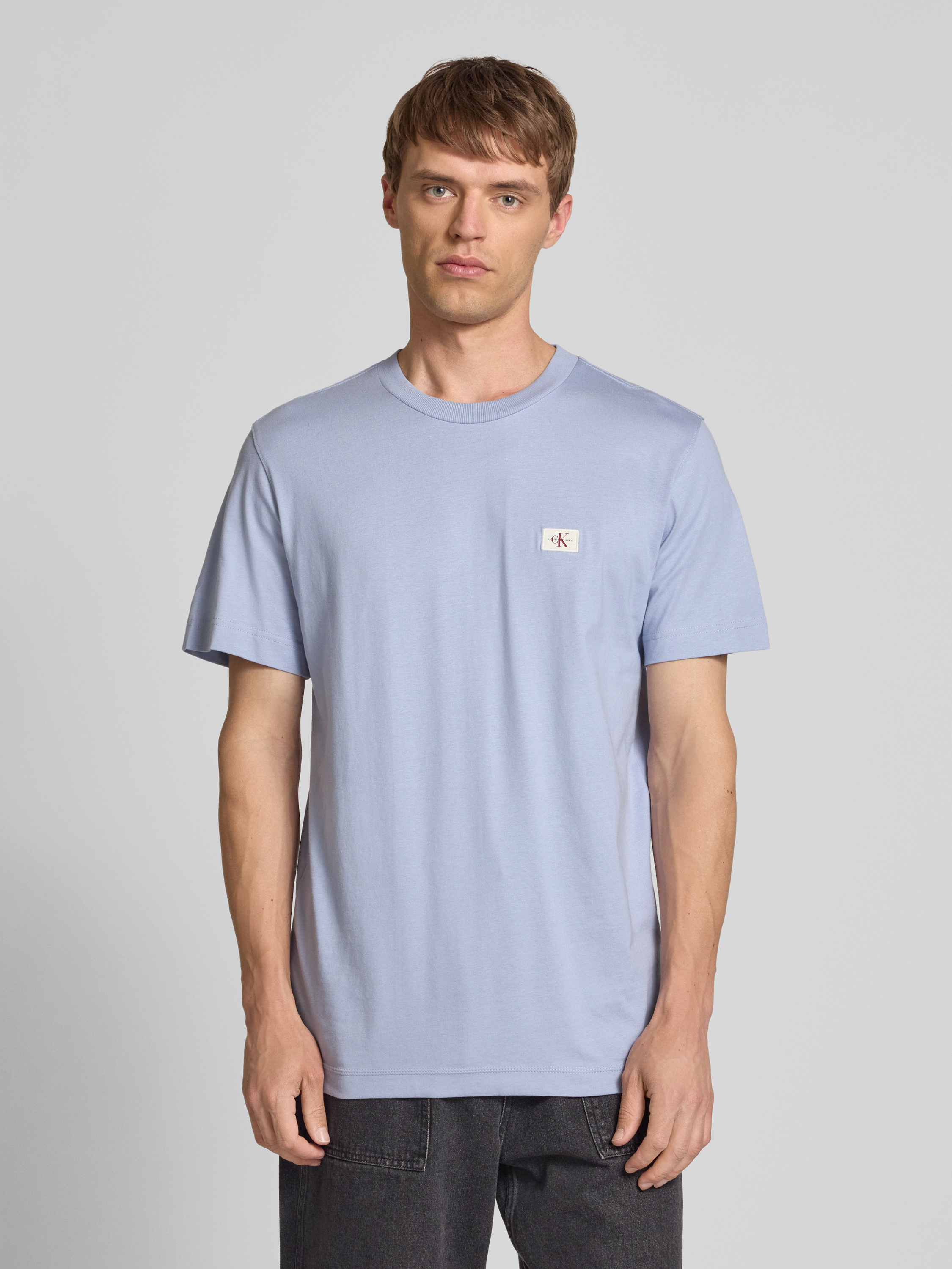 Calvin Klein JeansT-Shirt mit Label-Stitching und Rundhalsausschnitt in hellblau melange
