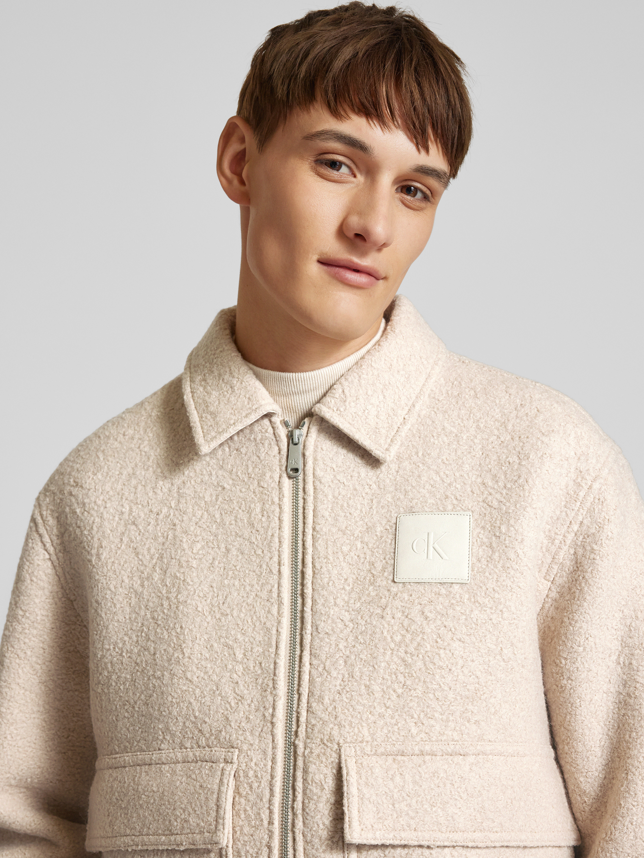 Die Wolljacke von Calvin Klein Jeans vereint einen geraden Schnitt mit einem klassischen Kentkragen, was sie zu einem vielseitigen Begleiter für unterschiedliche Anlässe macht. Der Woll-Mix sorgt für angenehme Wärme, während die Pattentaschen praktische Aufbewahrungsmöglichkeiten bieten. Ein dezenter Label-Patch rundet das Design stilvoll ab.