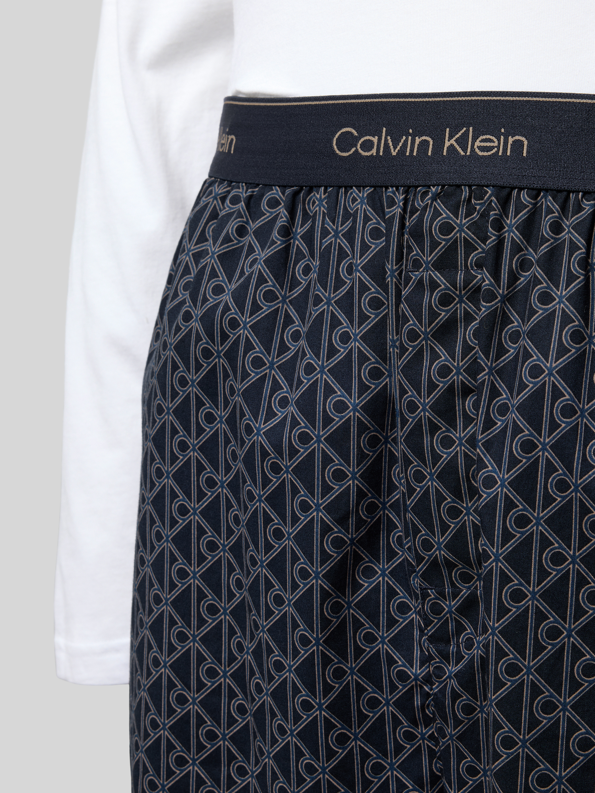Der Herren Pyjama von Calvin Klein Underwear aus reiner Baumwolle sorgt durch den lockeren Schnitt für angenehme Bewegungsfreiheit, ob nachts oder beim entspannten Start in den Tag. Dezentes Label-Stitching am Oberteil rundet das Gesamtbild ab. Der elastische Logo-Bund gewährleistet bequemen Sitz.