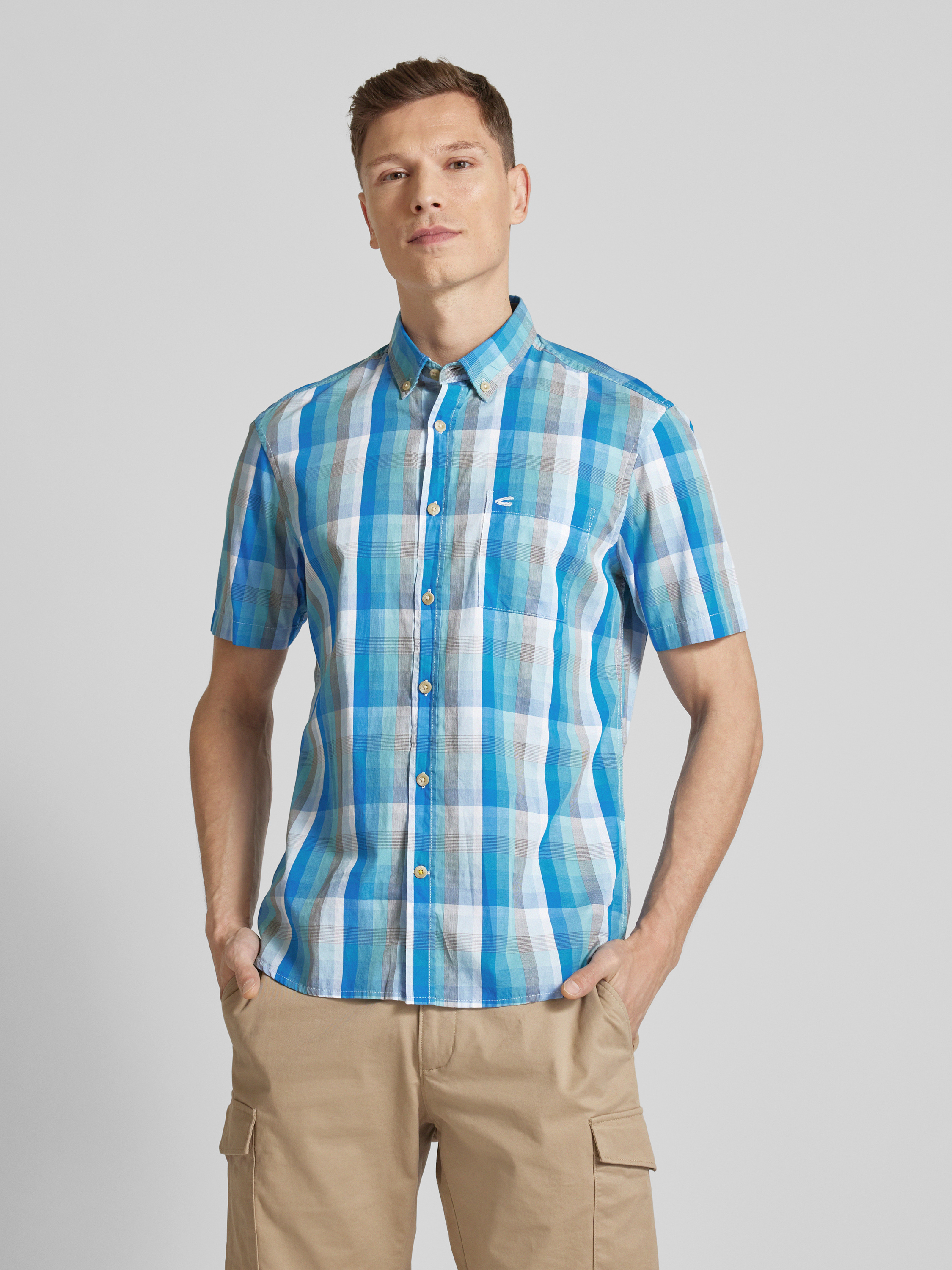 Das Freizeithemd von camel active punktet mit seinem entspannten Regular Fit und dem markanten Gitterkaro. Die reine Baumwolle sorgt für angenehmen Tragekomfort, während der Button-Down-Kragen dem Look eine lässige Note verleiht. Eine praktische Brusttasche rundet das Design ab.