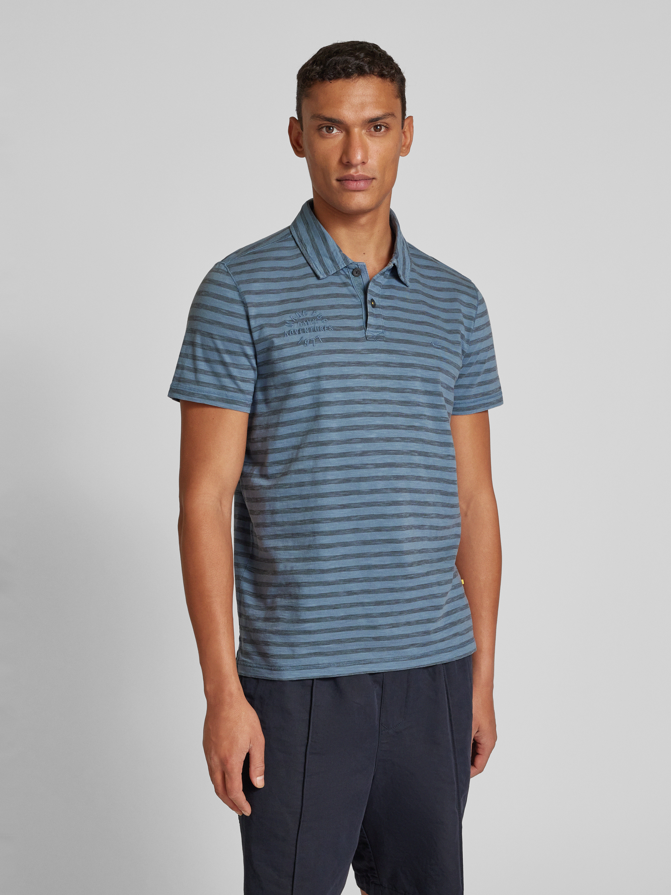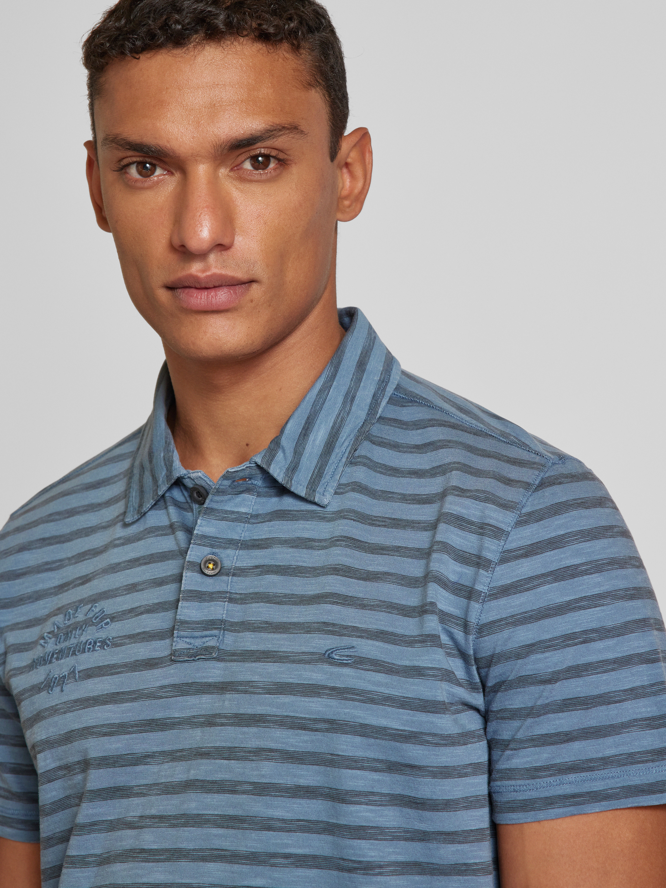 camel activePoloshirt mit Streifenmuster und Label-Stitching in blau