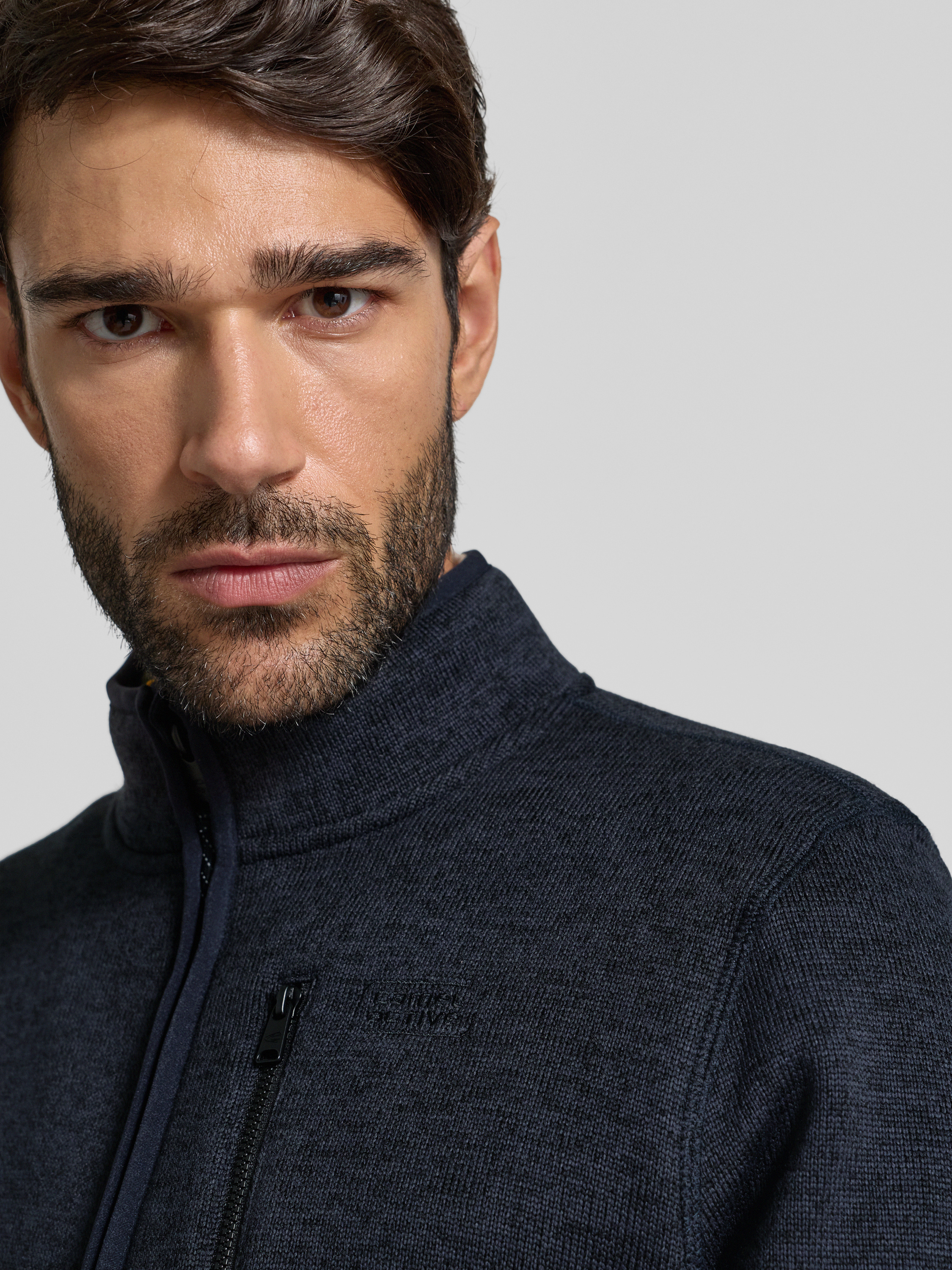 camel activeRegular Fit Strickjacke in Melange-Optik mit Stehkragen in marine