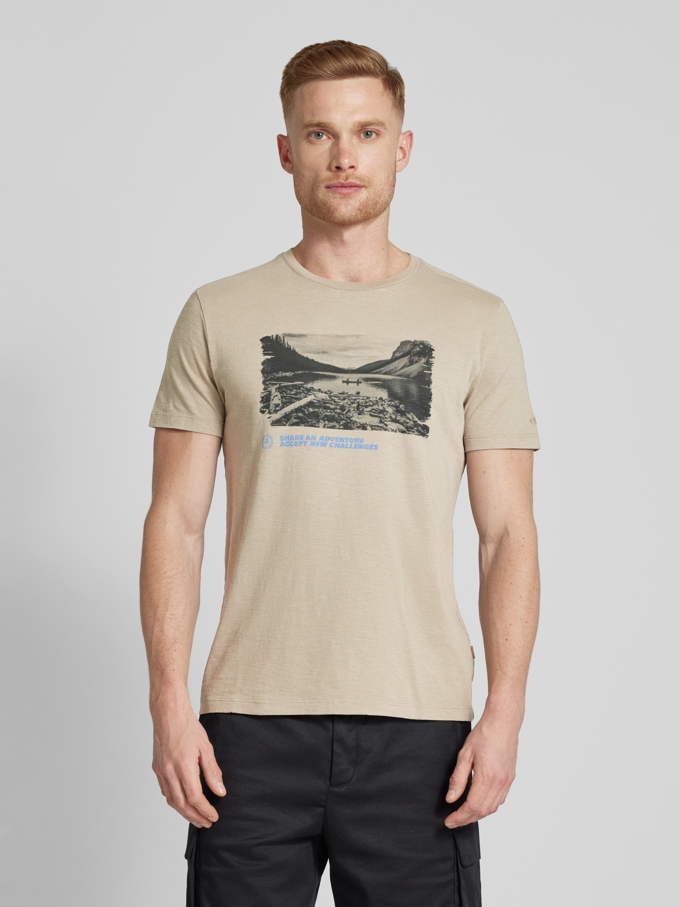 Das Herren T-Shirt von camel active aus reiner Baumwolle sorgt für ein angenehmes Tragegefühl, während der gerade Schnitt eine bequeme Passform gewährleistet. Das unifarbene Design mit Rundhalsausschnitt erhält durch den dezenten Label-Print eine moderne Note. Ideal für den lässigen Alltagslook.