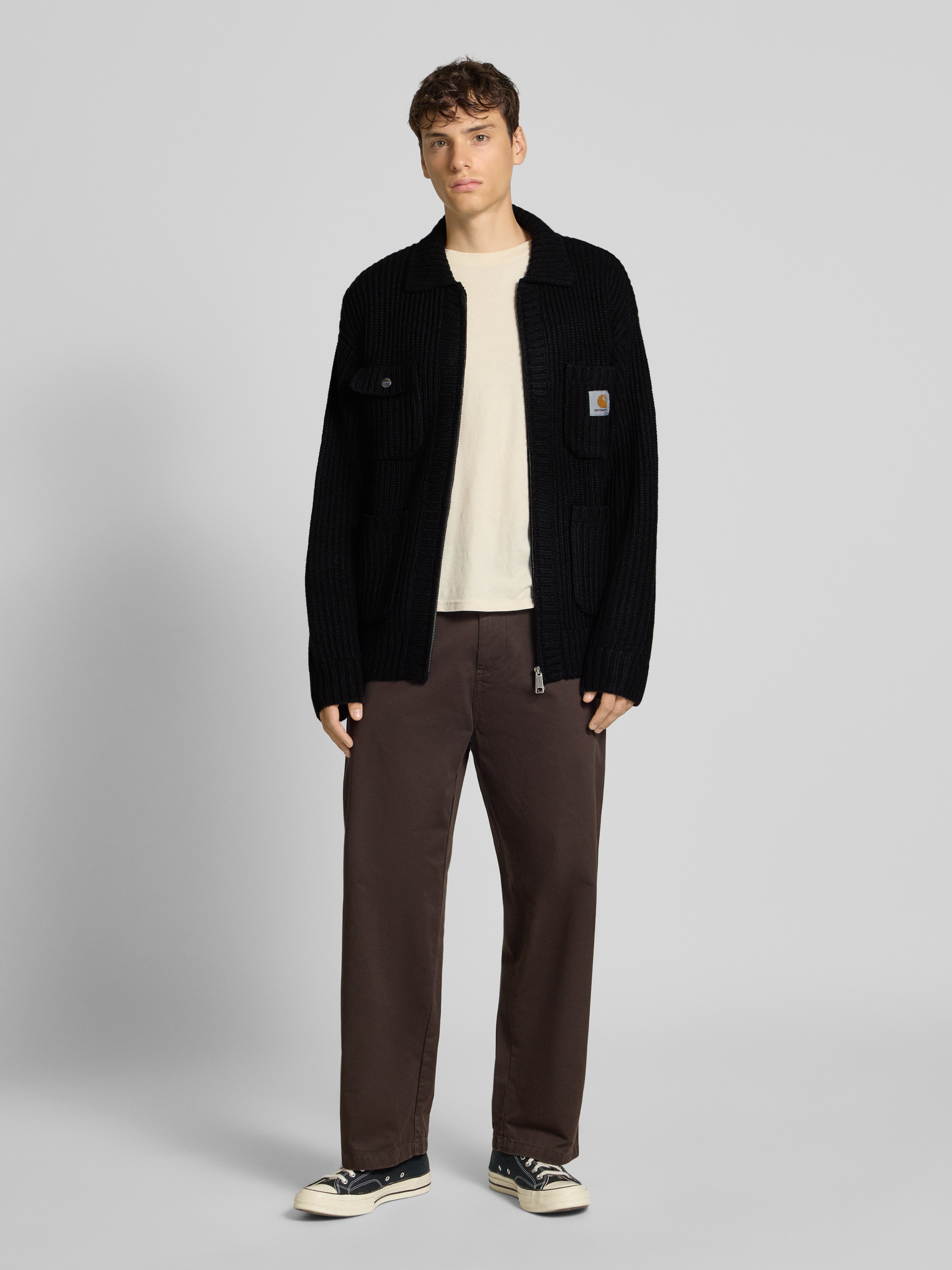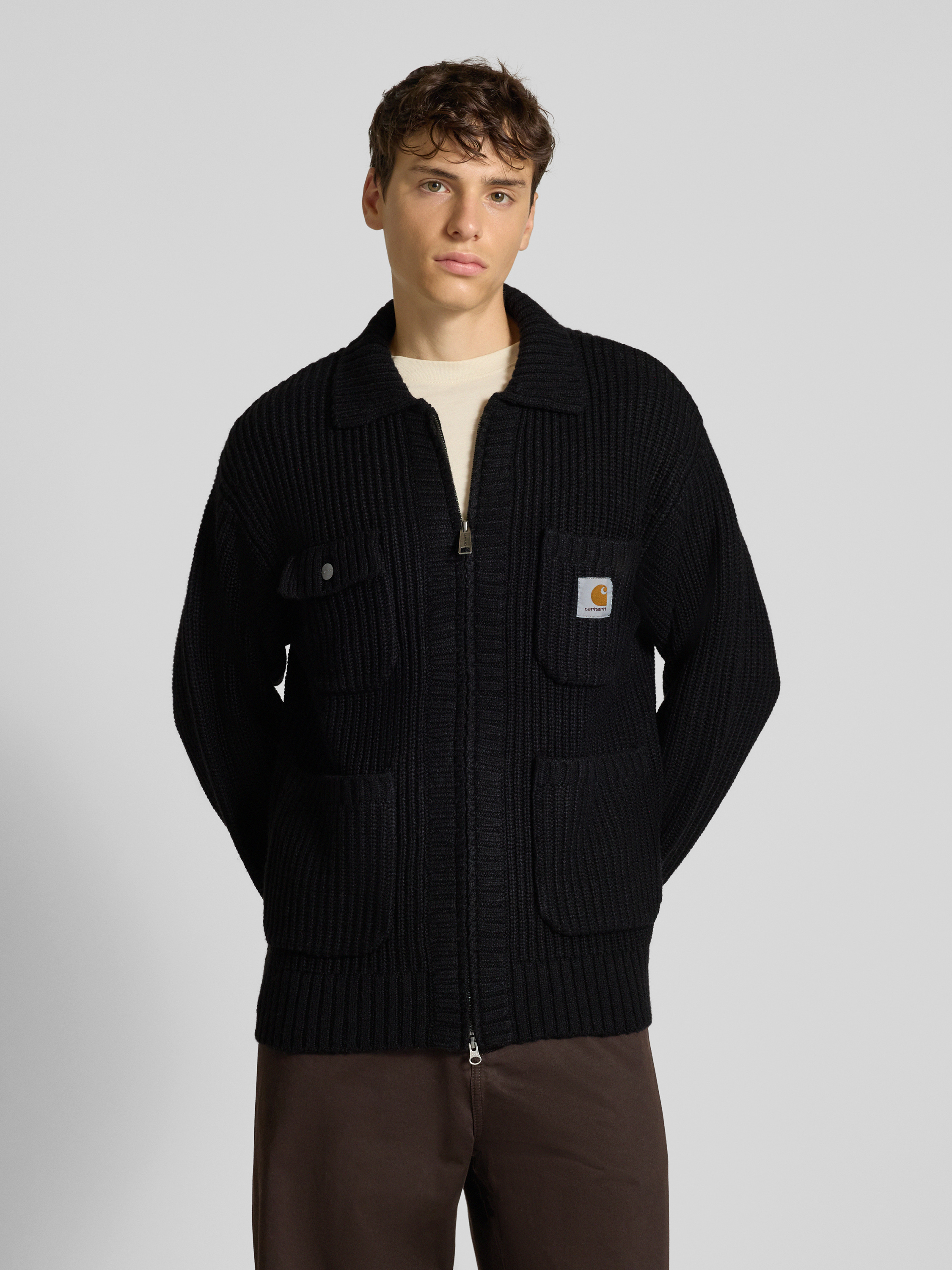 Die Herren Strickjacke von Carhartt Work In Progress bringt durch den Material-Mix mit Lanawolle-Anteil angenehme Wärme in den Alltag. Der Regular Fit und der Umlegekragen schaffen einen entspannten Look, während Brusttaschen praktischen Stauraum bereithalten. Ein Label-Detail rundet das Erscheinungsbild ab.