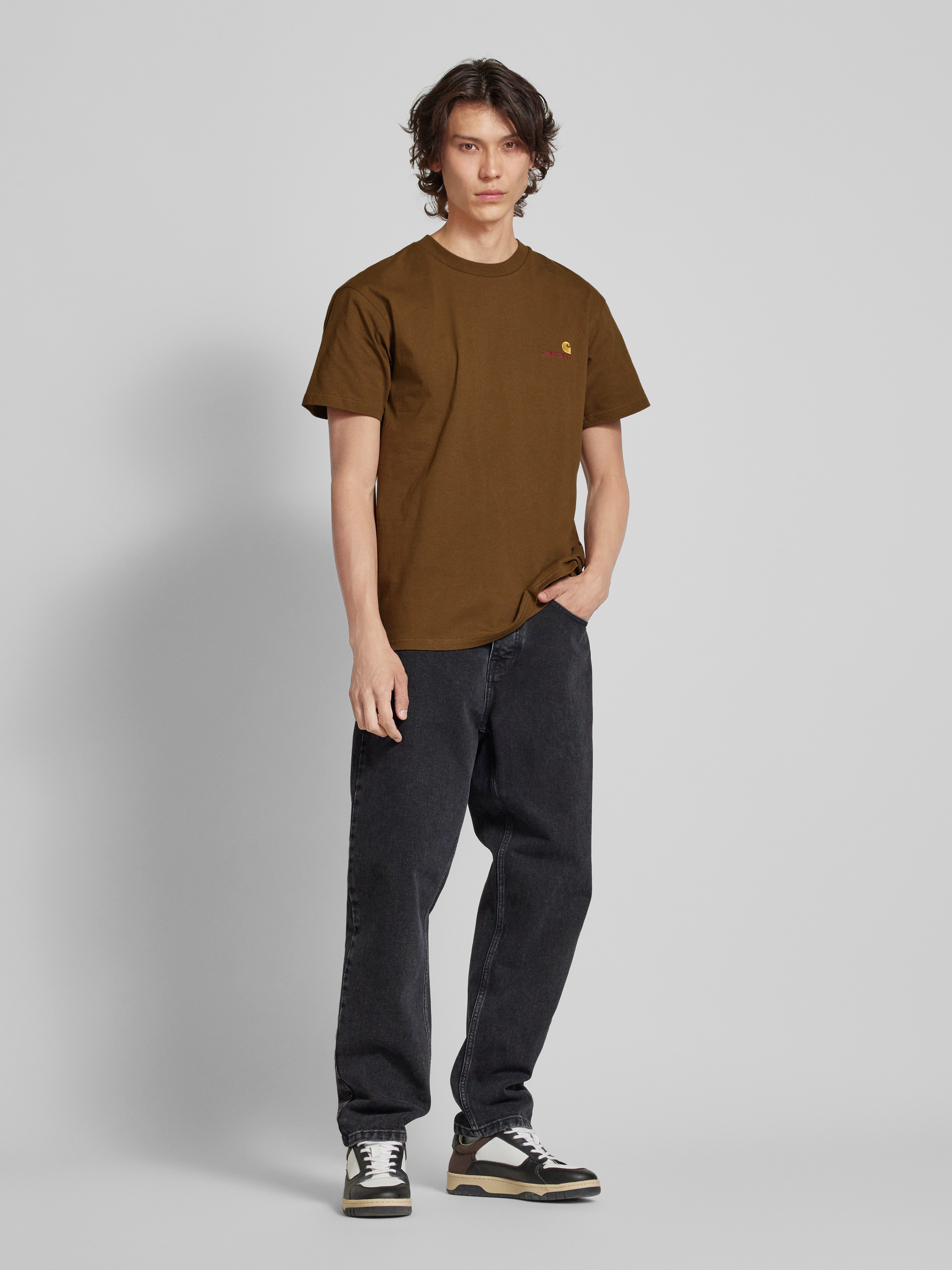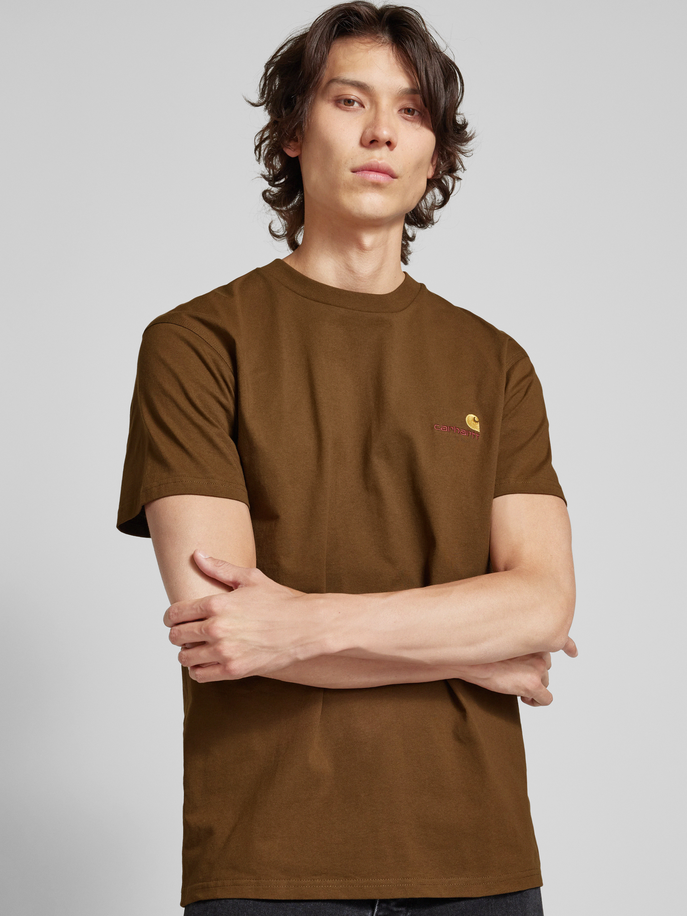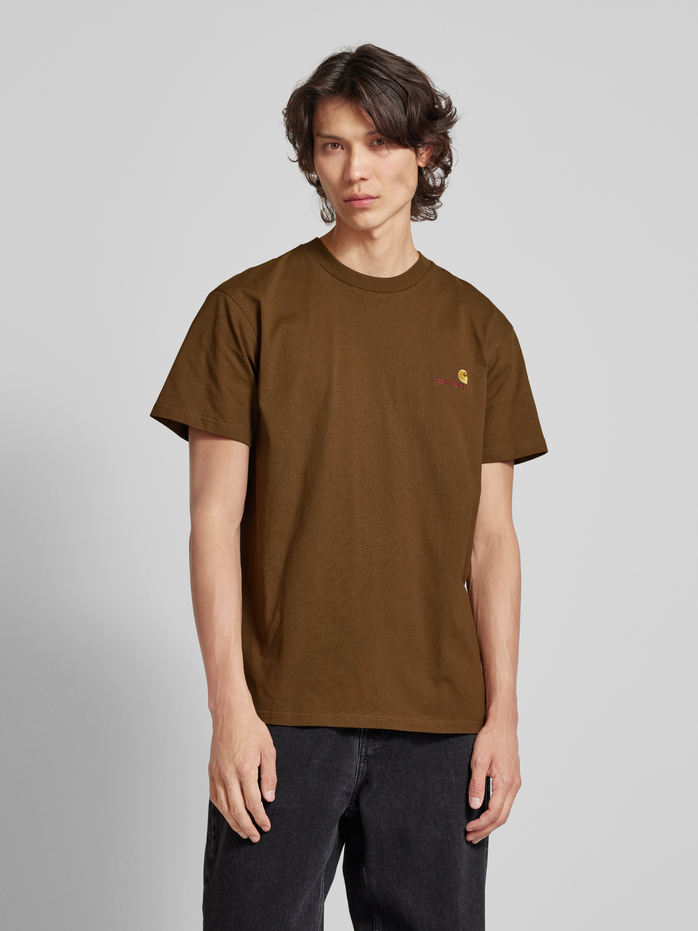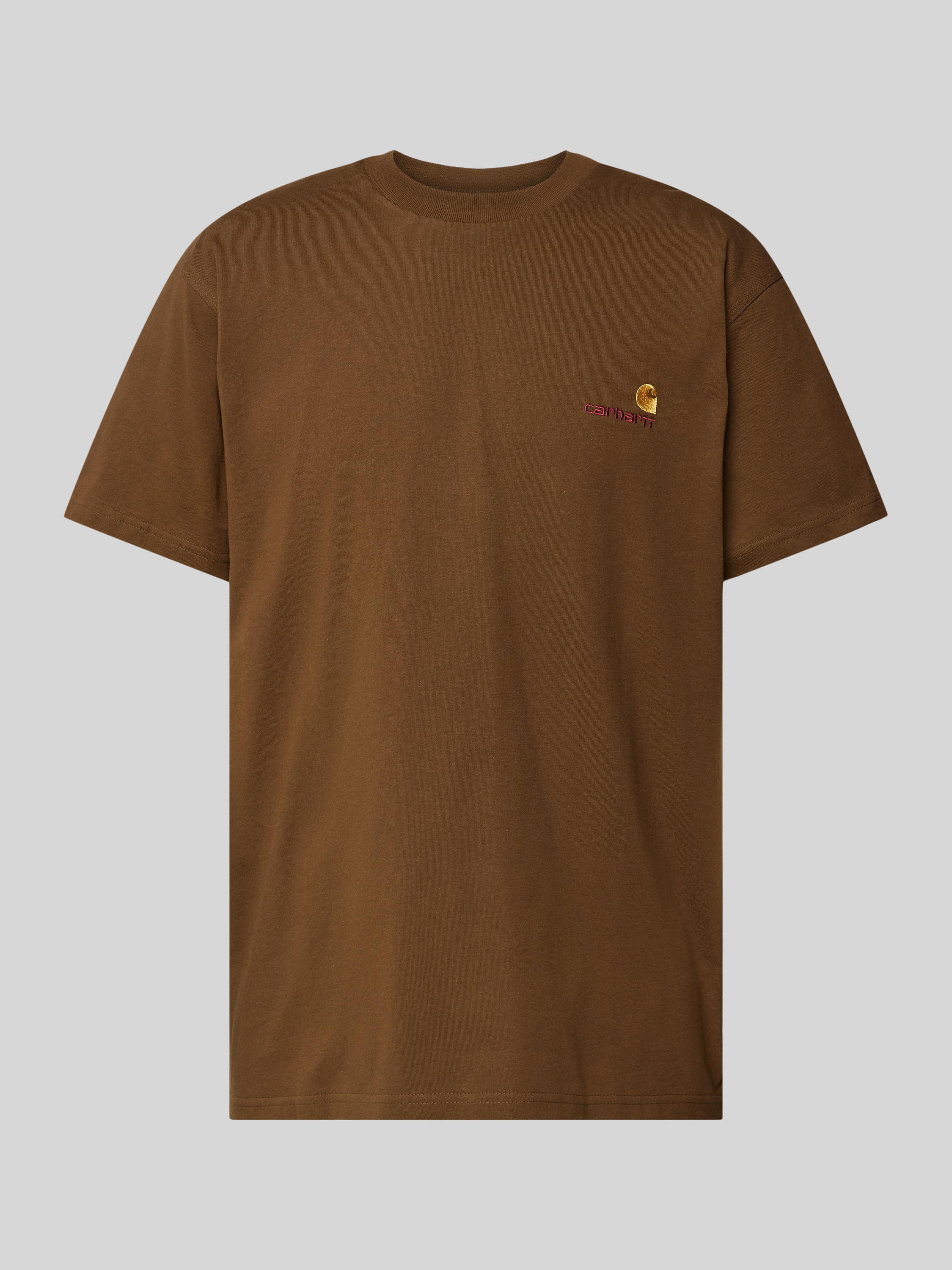 Carhartt Work In ProgressT-Shirt mit Label-Stitching Modell 'American Script' in dunkelbraun melange