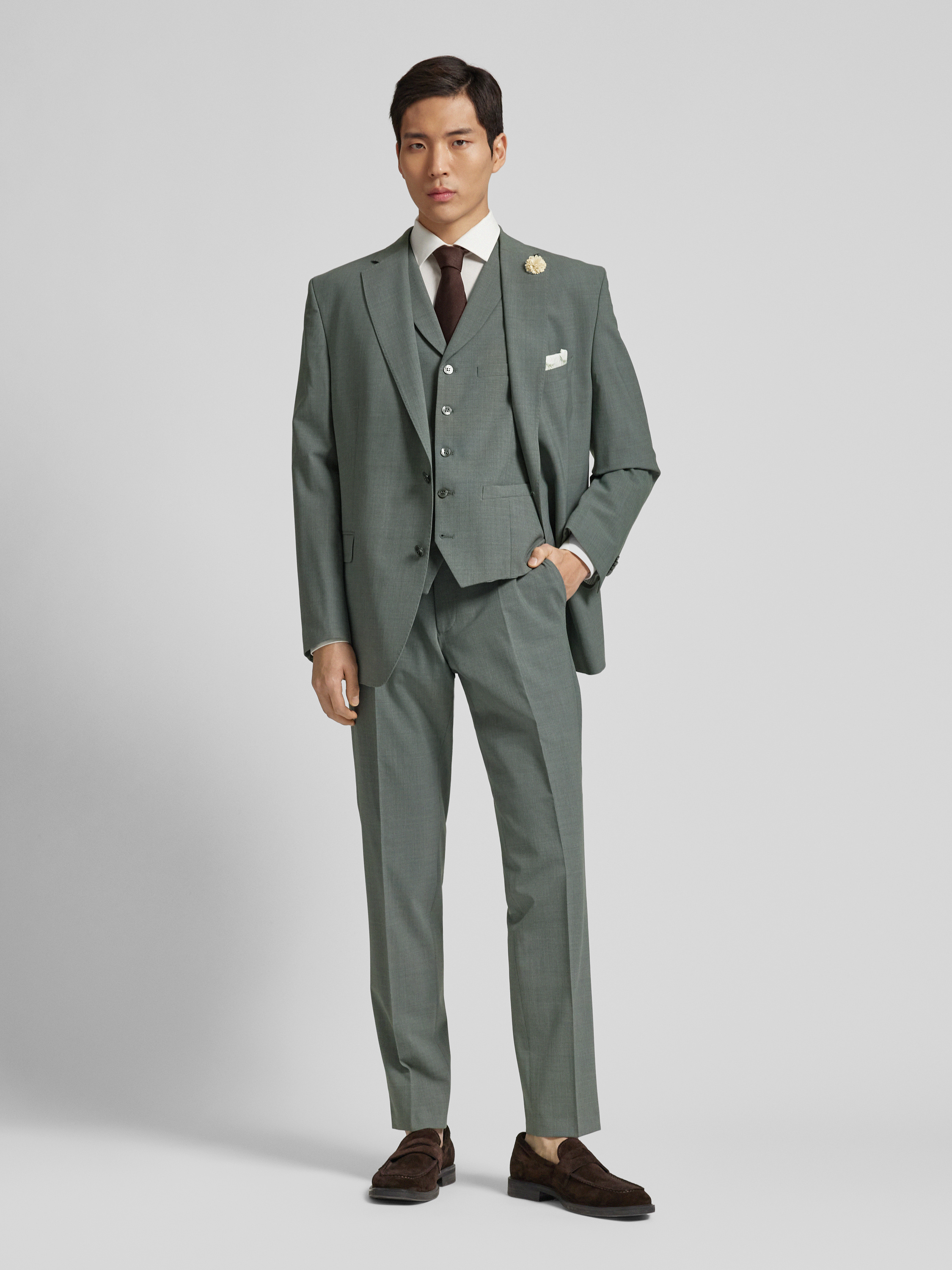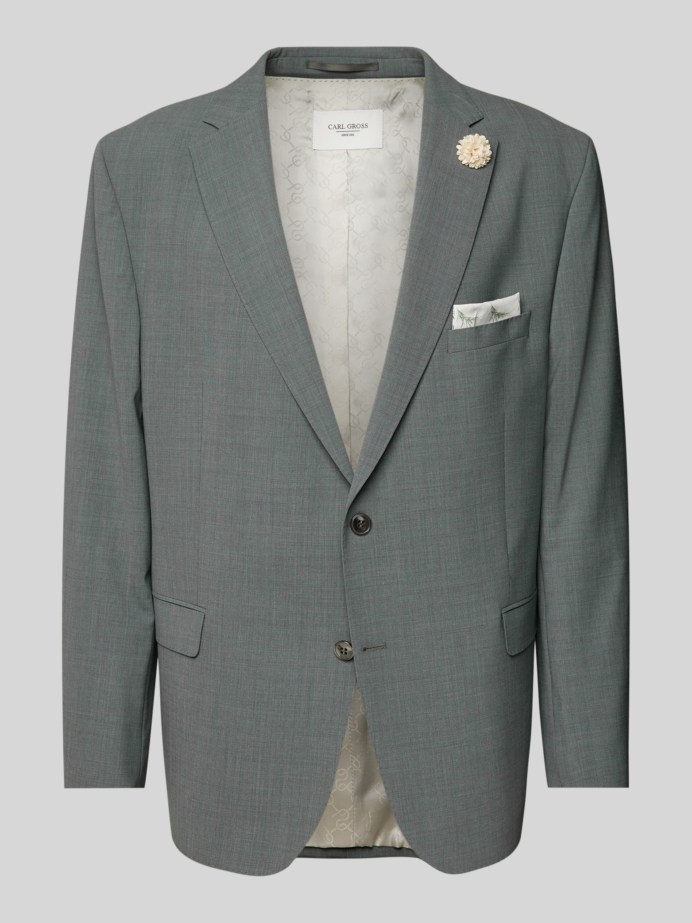Das elegante Slim Fit Sakko Modell 'Shelby' von Carl Gross kombiniert einen edlen Material-Mix mit Woll-Anteil und eine ansprechende Melange-Optik. Die schmale Passform betont eine moderne Silhouette, während der Reverskragen und die Pattentaschen klassische Akzente setzen. Ein dezentes Blumendetail ergänzt den stilvollen Look harmonisch.
