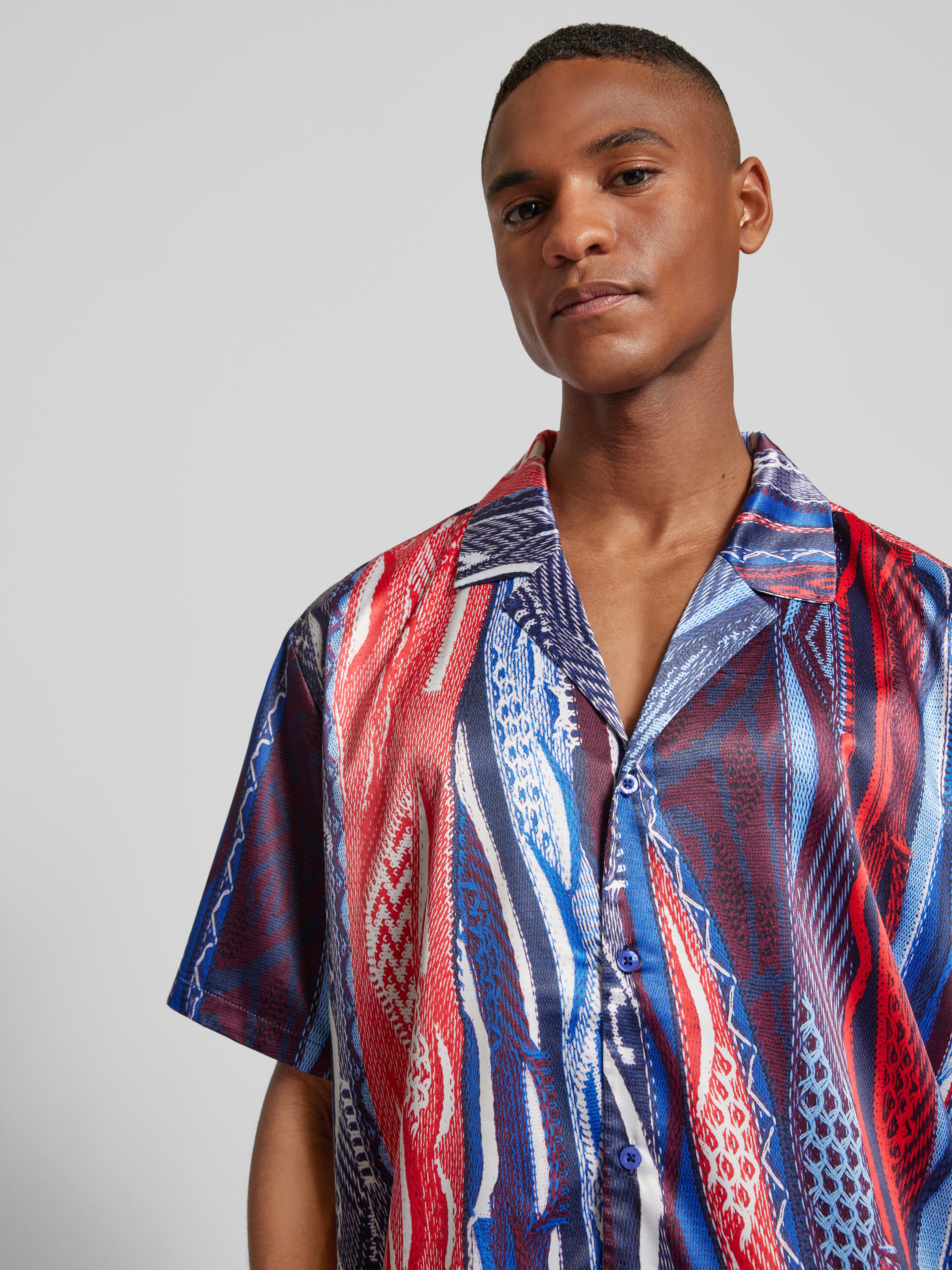 Das Herren Freizeithemd von Carlo Colucci fällt durch sein lebendiges Allover-Muster auf und bringt Abwechslung in alltägliche Outfits. Die lockere Passform sorgt für angenehme Bewegungsfreiheit, während der Material-Mix mit Stretch-Anteil den ganzen Tag über Komfort unterstützt. Ein Reverskragen ergänzt das entspannte Design.