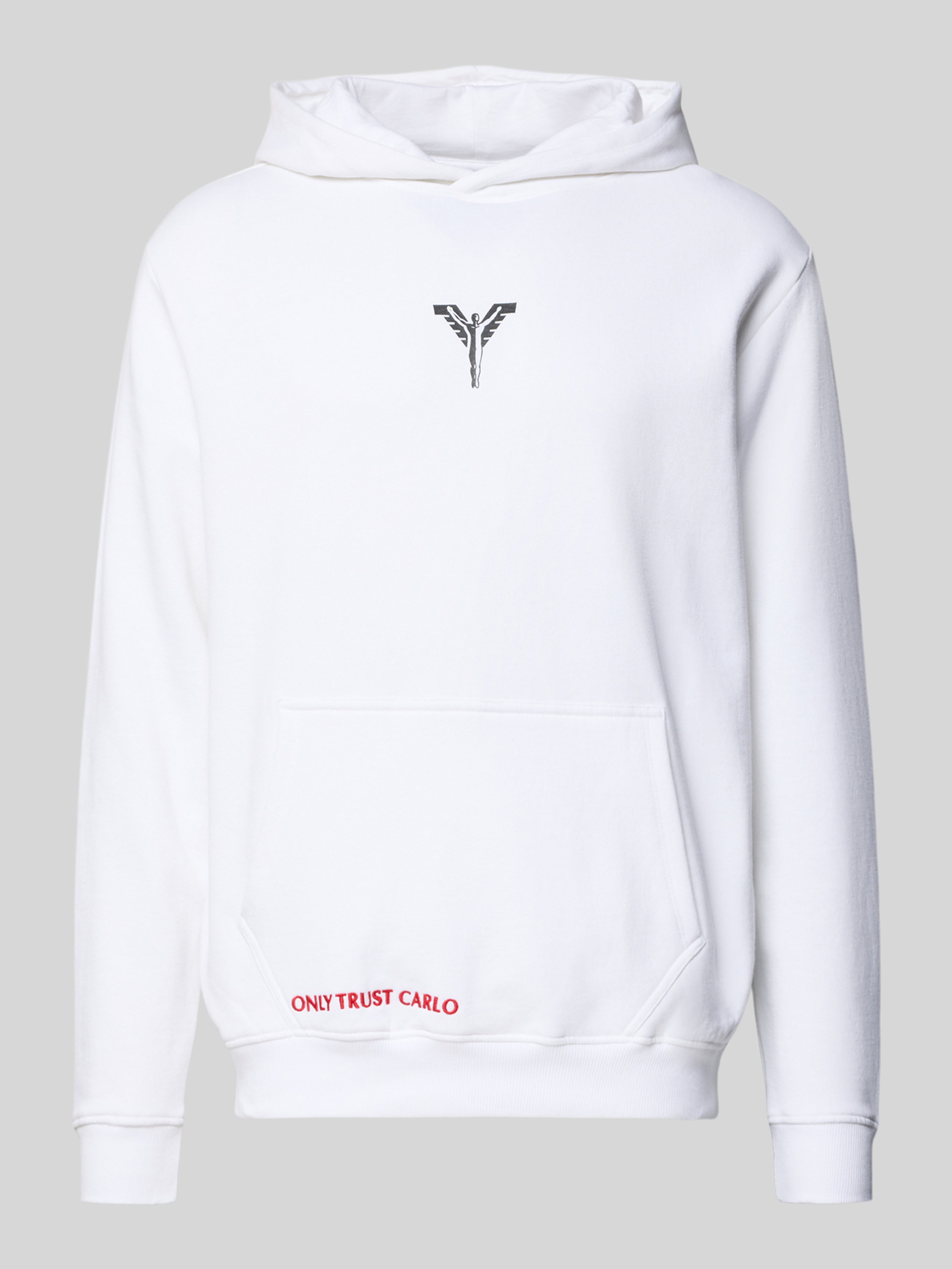Der Herren Hoodie von CARLO COLUCCI fällt durch seinen lockeren Schnitt und die angenehme Kapuze auf, wodurch Bewegungsfreiheit erhalten bleibt. Durch den Baumwoll-Mix trägt sich das Modell angenehm weich auf der Haut. Der Label-Print und die Känguru-Tasche ergänzen das sportliche Design.