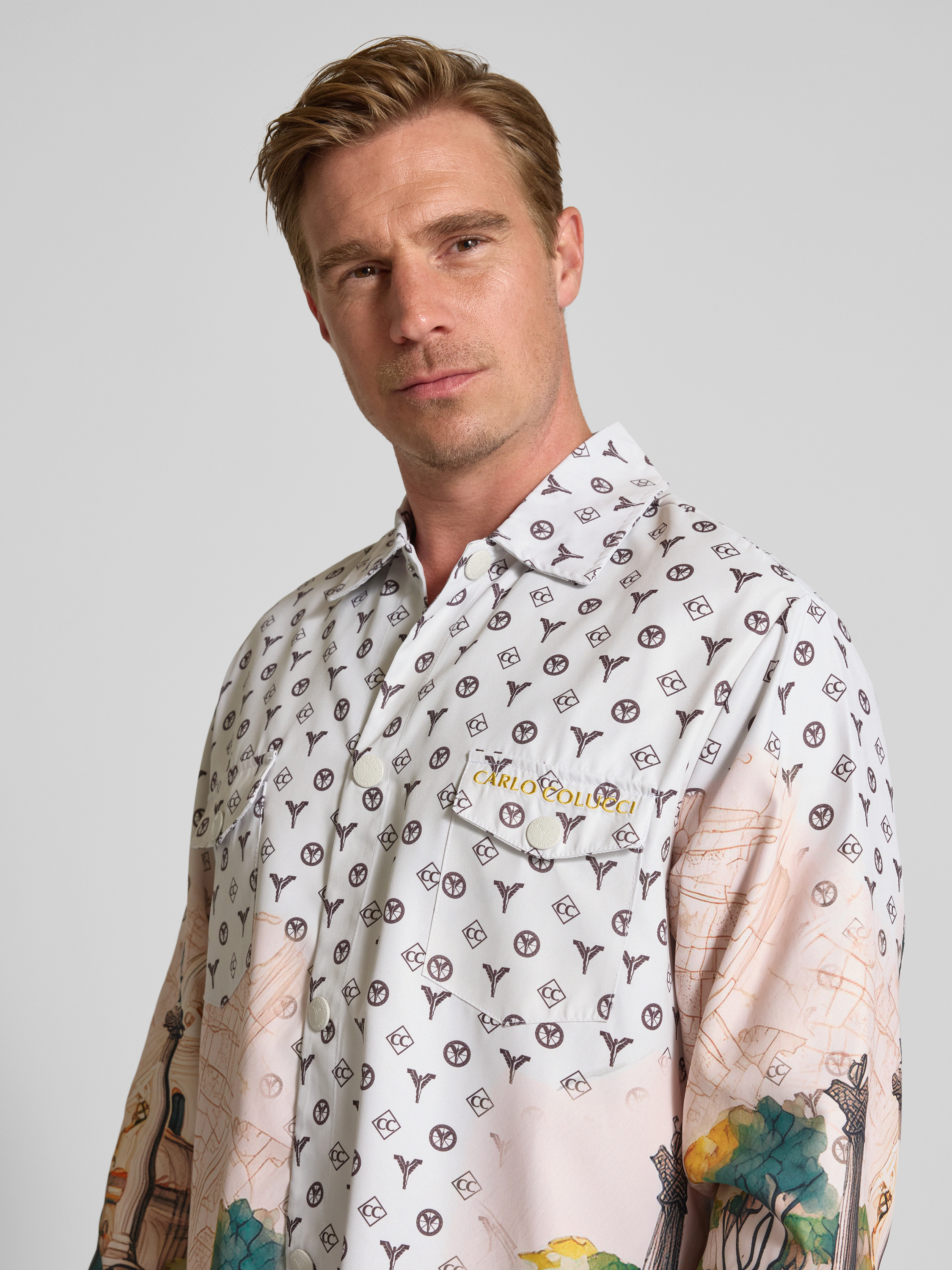 Das Herrenhemd von CARLO COLUCCI fällt durch seinen lockeren Oversized-Schnitt angenehm lässig aus, wodurch Bewegungsfreiheit entsteht. Der Kentkragen und die markanten Brusttaschen unterstreichen das entspannte Design. Dezentes Label-Stitching ergänzt den zeitlosen Charakter und sorgt für einen authentischen Look.