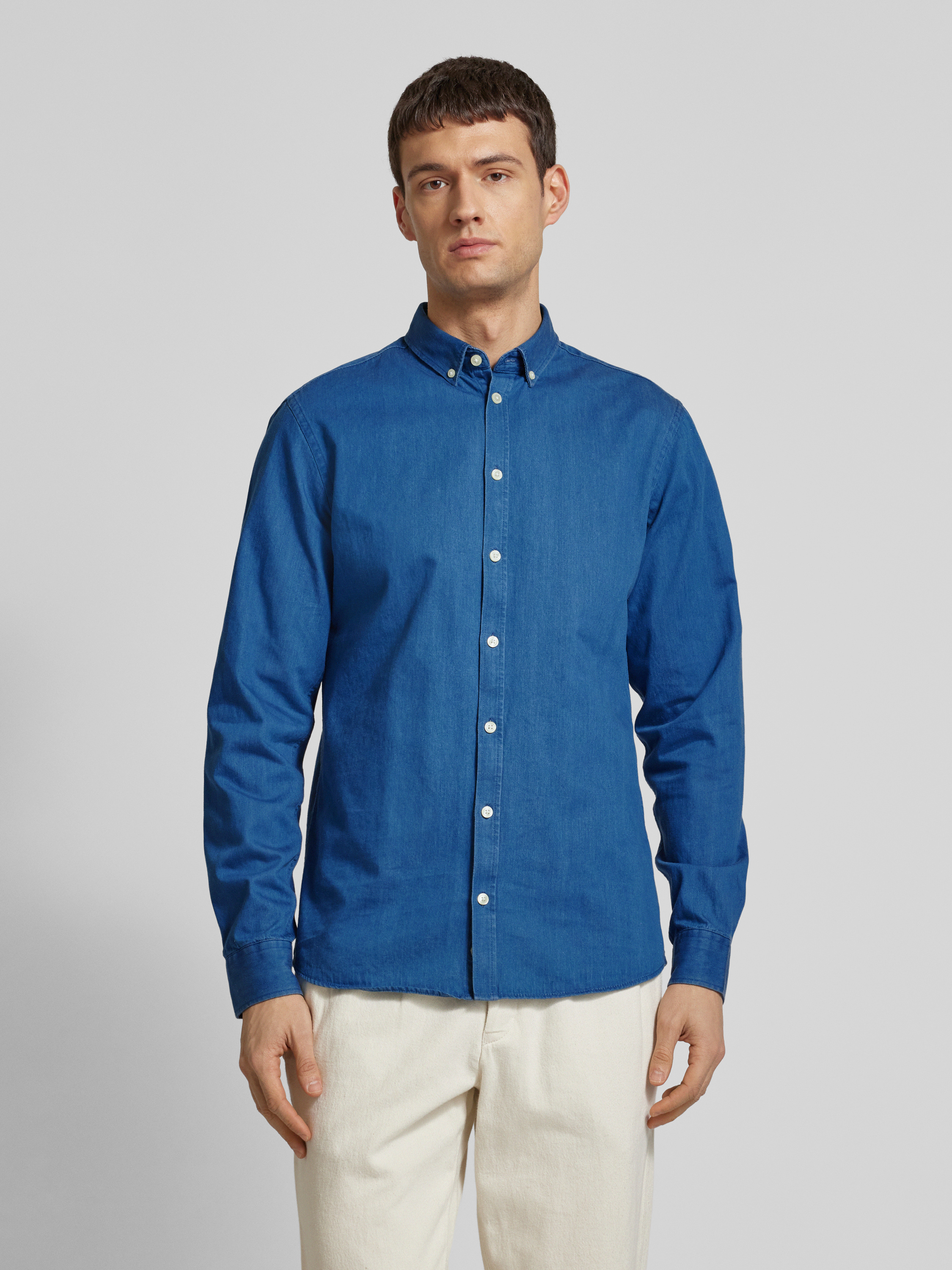 Das Herren Jeanshemd von Casual Friday, Modell 'Anton', besteht aus reiner Baumwolle und liegt angenehm auf der Haut. Mit seinem Regular-Fit-Schnitt und dem klassischen Button-Down-Kragen passt es unkompliziert zu verschiedensten Outfits. Die dezente Knopfleiste rundet den entspannten Look ab.