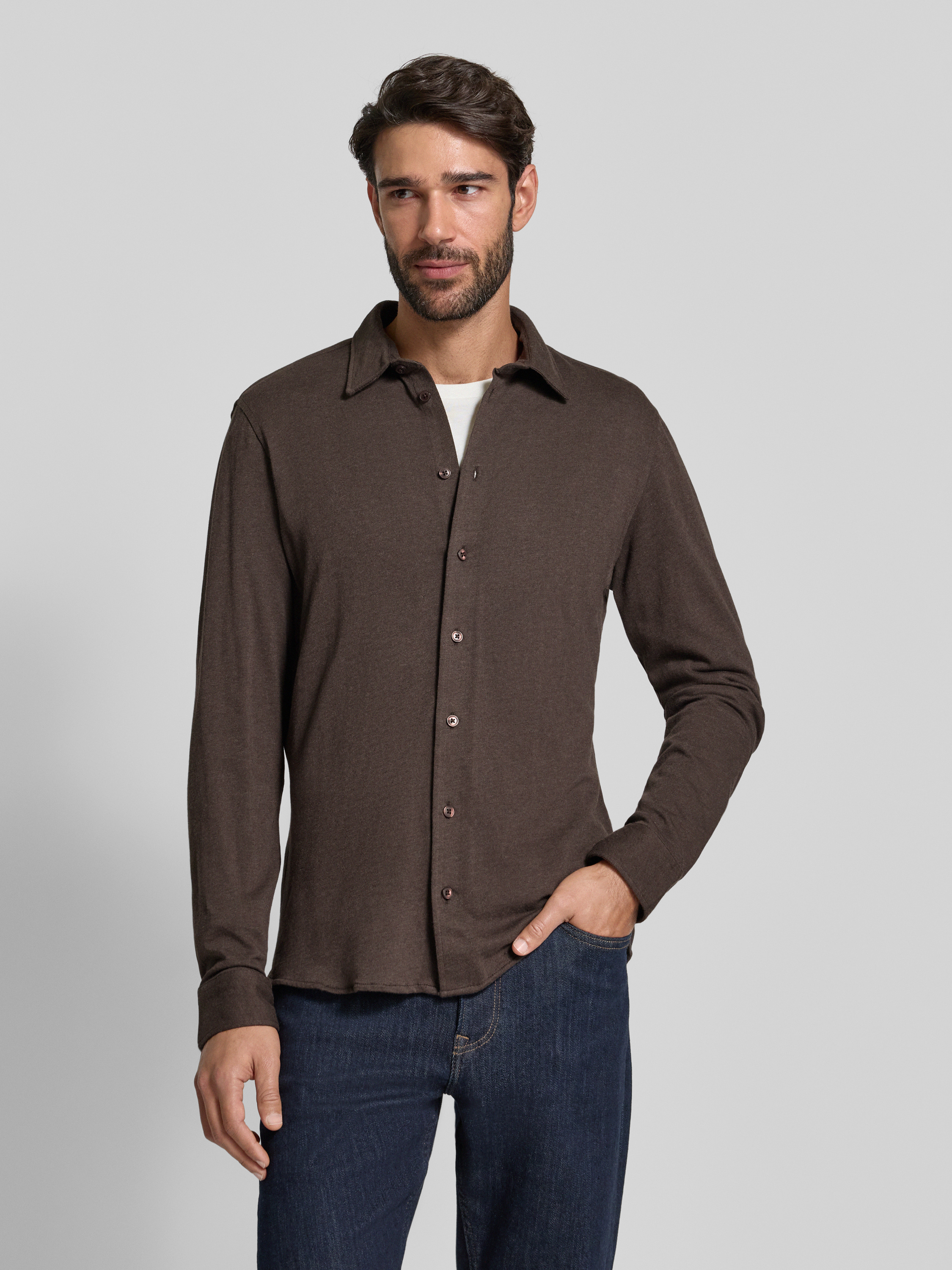 Casual FridayRegular Fit Freizeithemd mit Kentkragen Modell 'ARKAN' in schoko melange