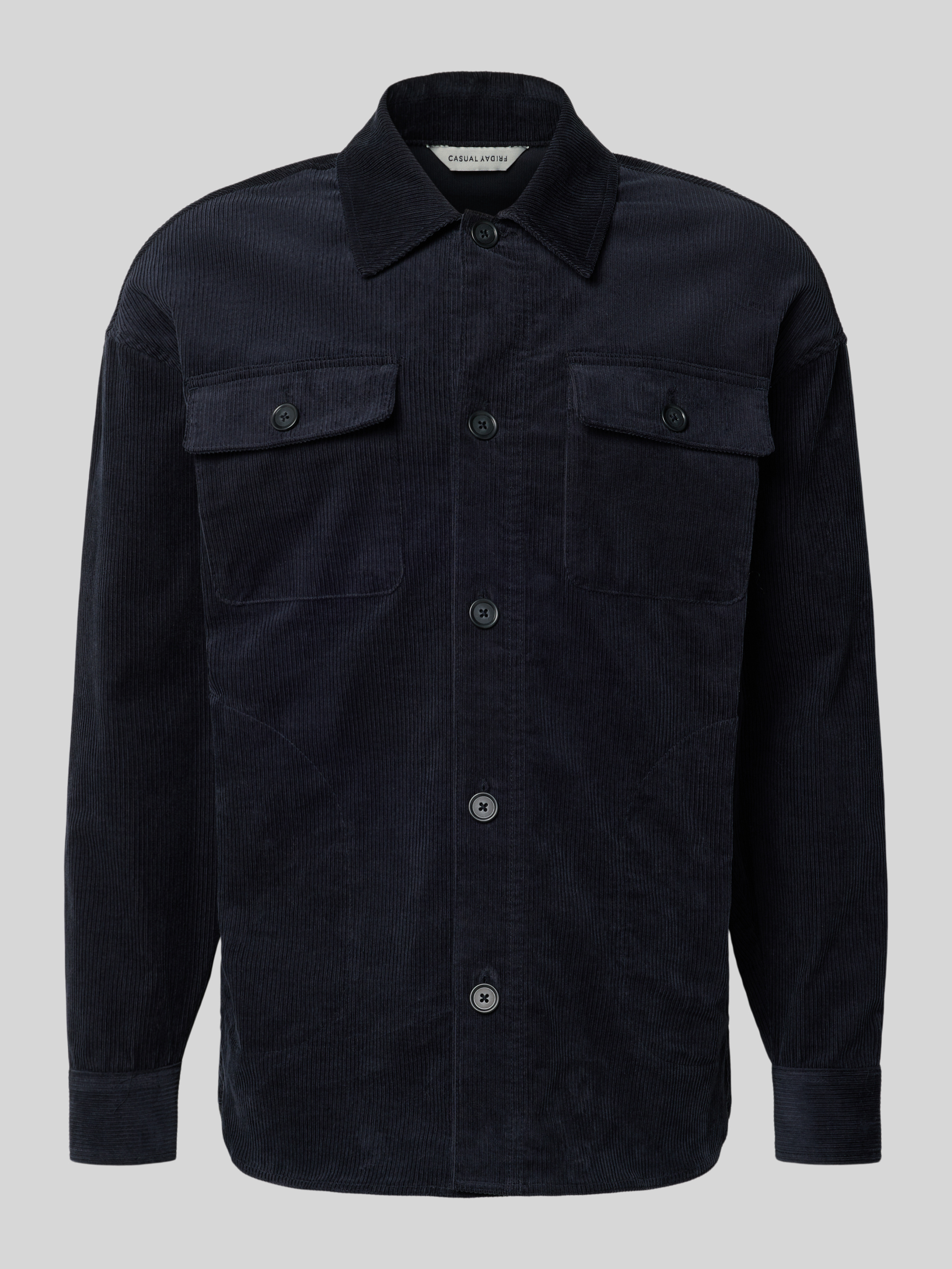 Casual FridayRegular Fit Hemdjacke aus Cord Modell 'MYLES' in dunkelblau