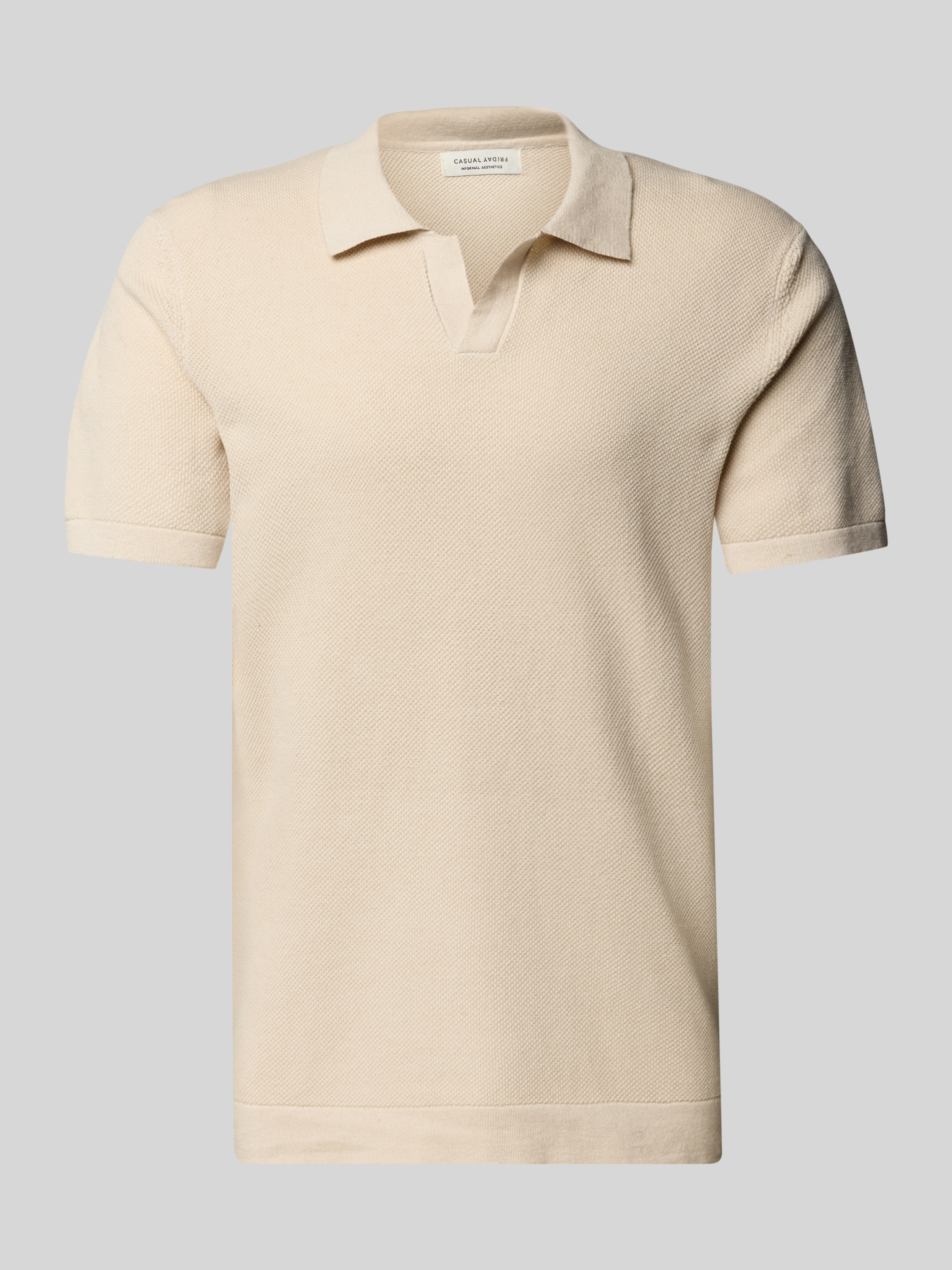 Das Herren Poloshirt 'MATEO' von Casual Friday kombiniert einen Baumwoll-Leinen-Mix mit einem angenehmen Regular Fit. Der Polokragen und der V-Ausschnitt verleihen dem Shirt eine klassische Note, während das feine Strukturmuster subtile Eleganz hinzufügt, ideal für vielseitige Anlässe.