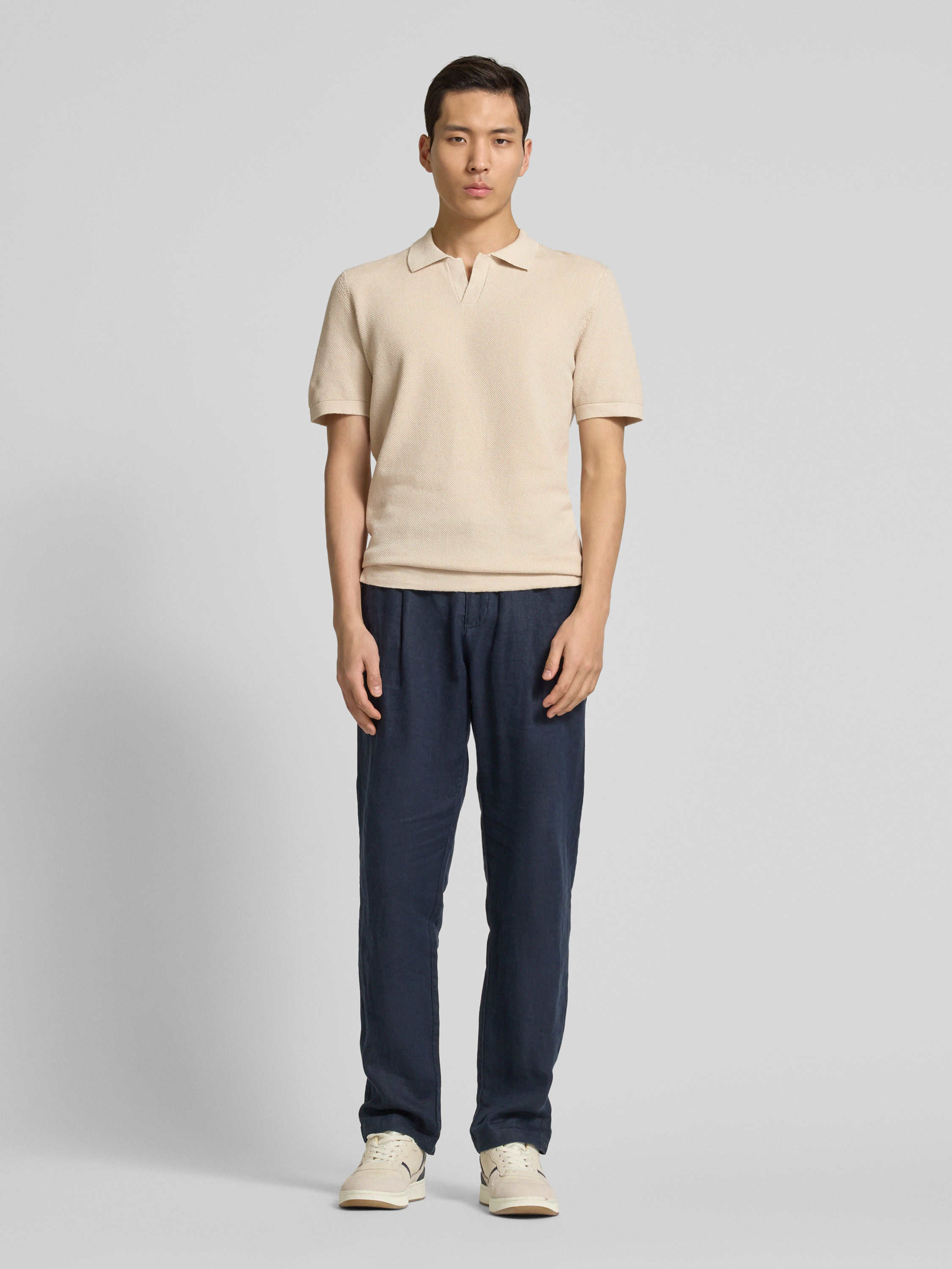 Casual FridayRegular Fit Poloshirt aus Baumwoll-Leinen-Mix Modell 'MATEO' in sand