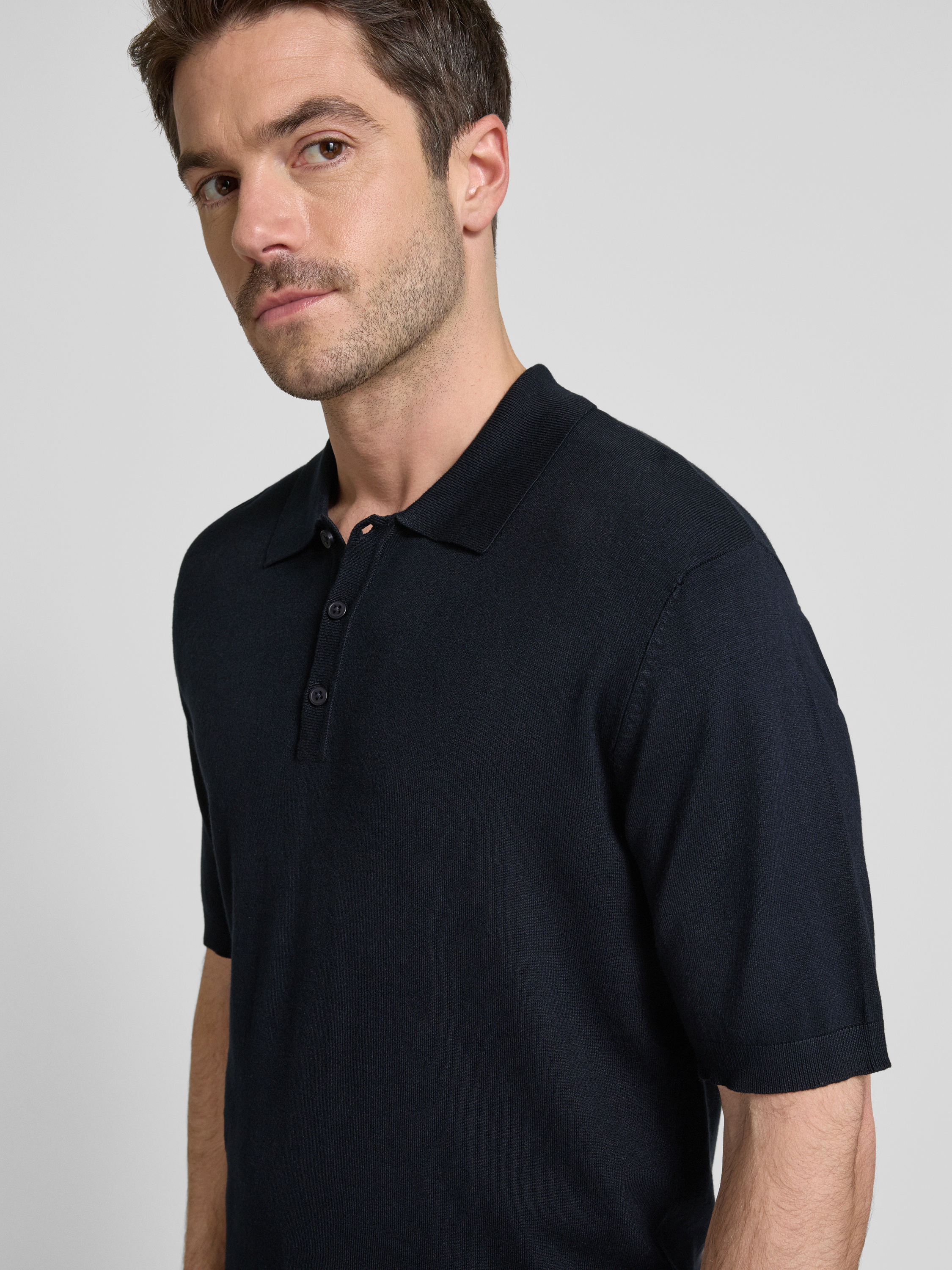 Casual FridaySlim Fit Poloshirt mit gerippten Abschlüssen Modell 'KARLO' in dunkelblau