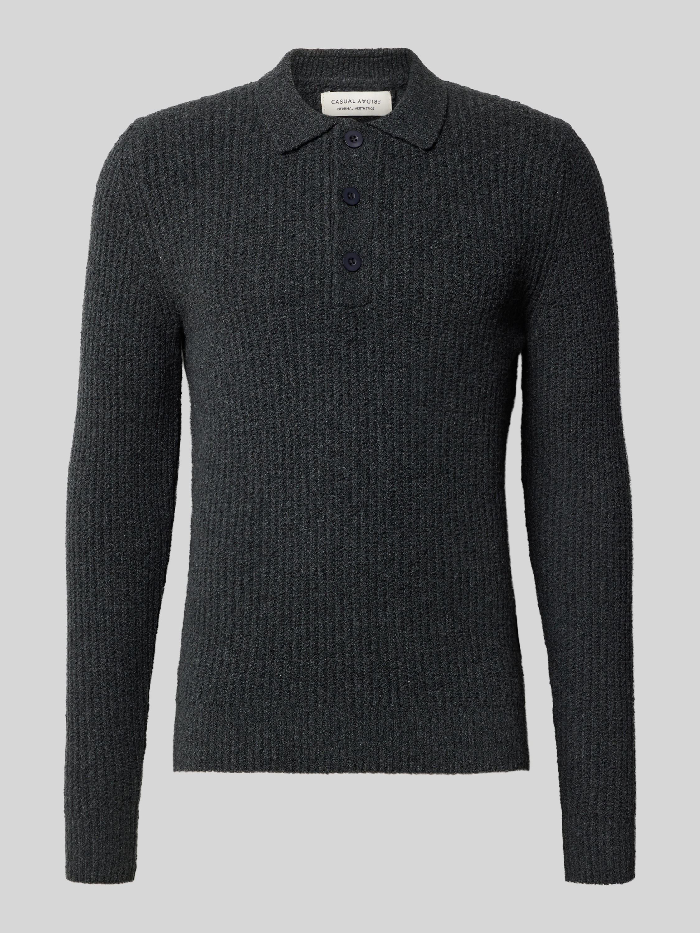 • Casual Friday Strickpullover mit Polokragen Modell 'GAHN' Mittelgrau Melange