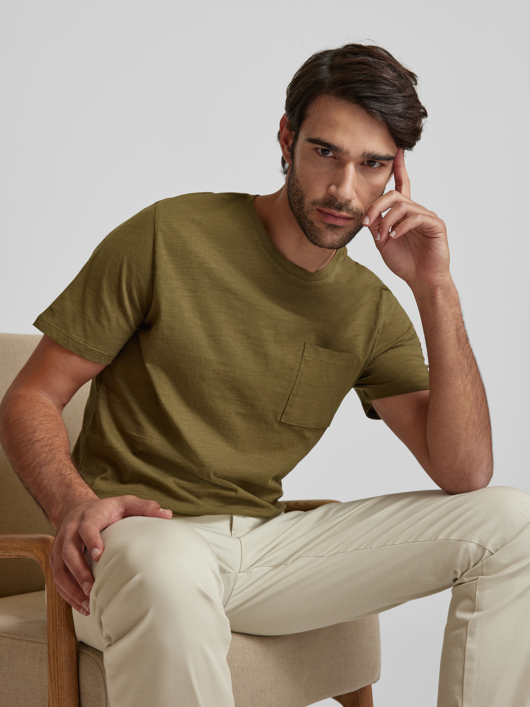 T-Shirt mit Brusttasche Modell 'THOR' in oliv