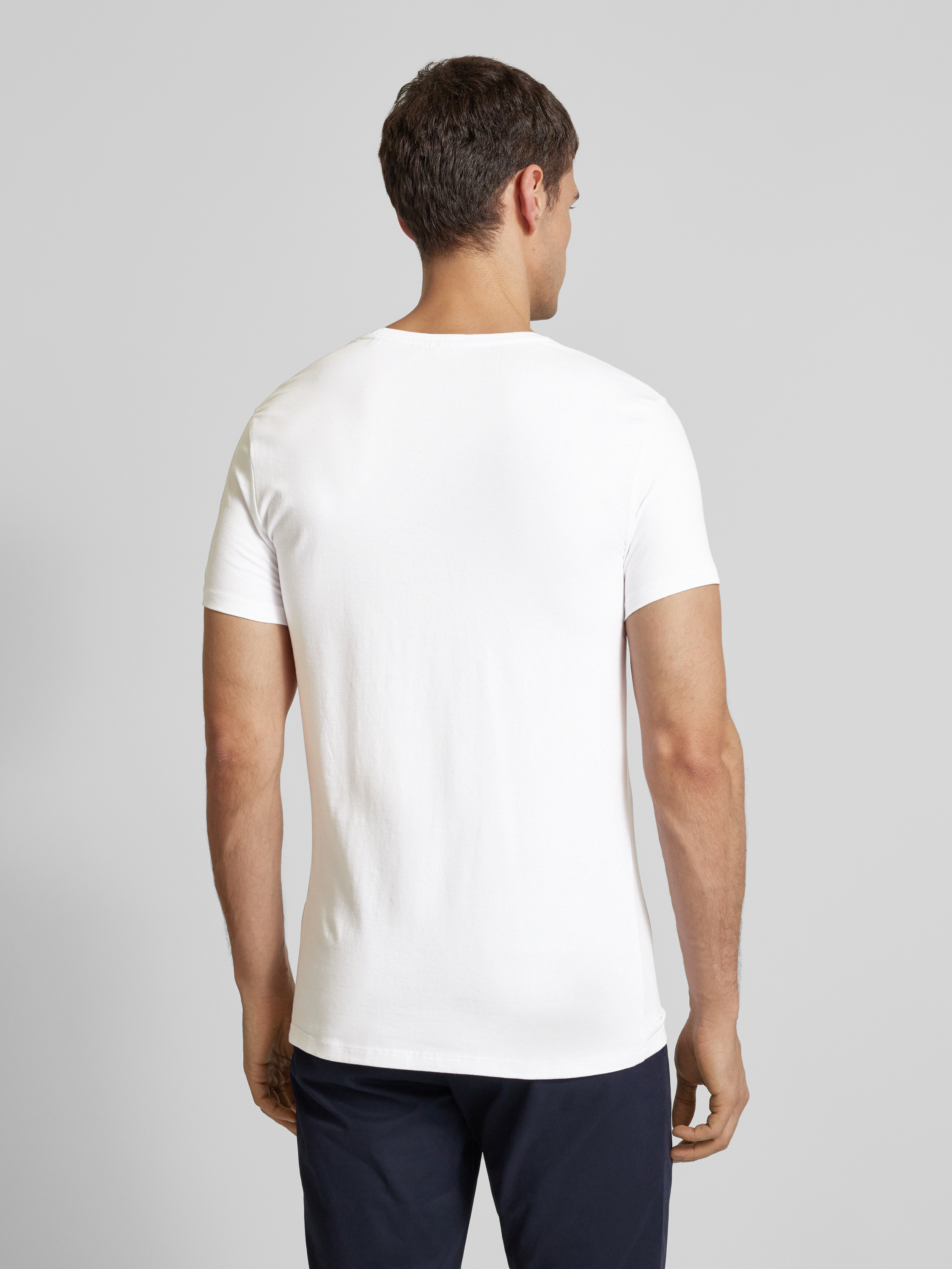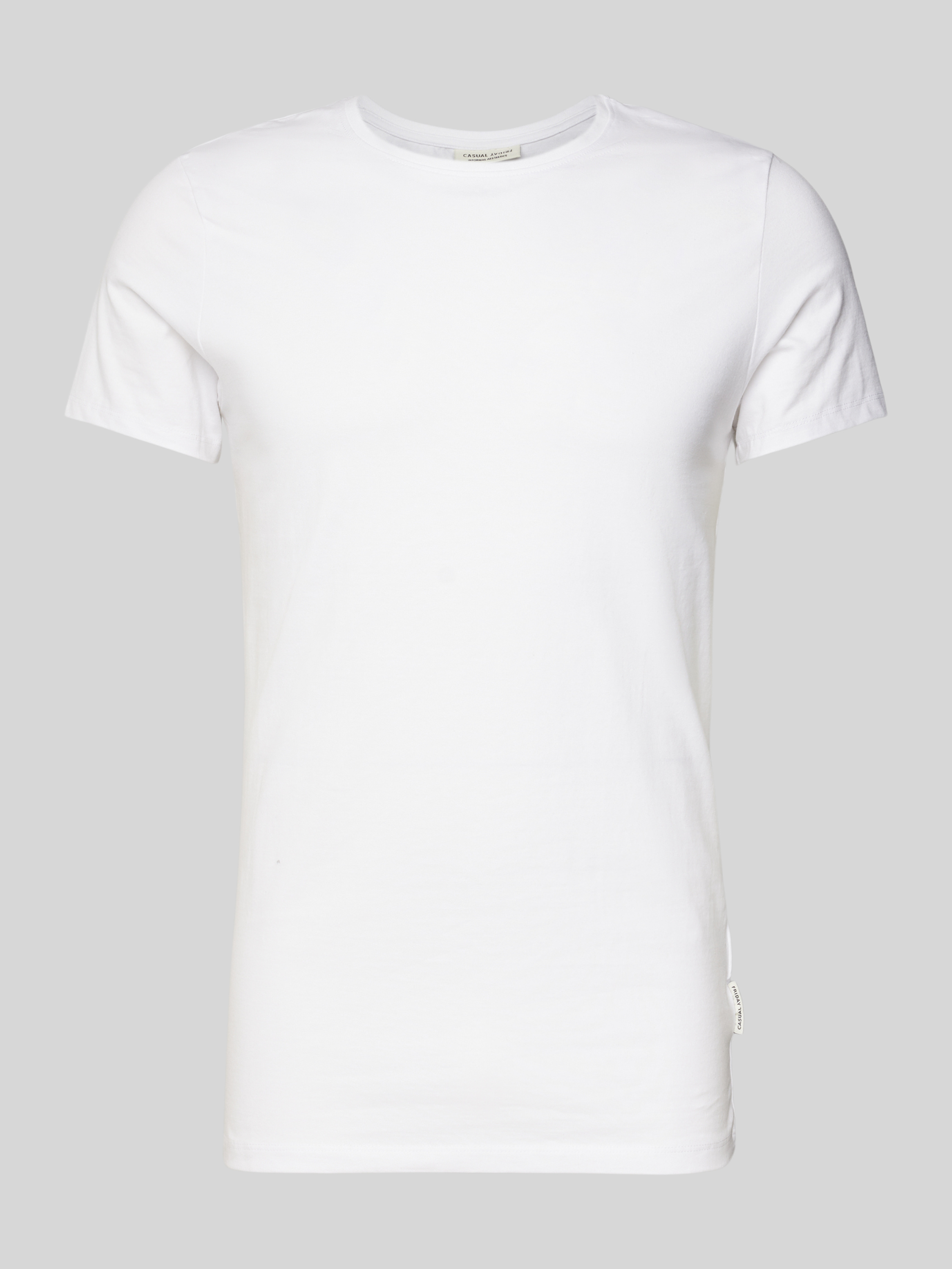 T-Shirt mit geripptem Rundhalsausschnitt in weiss