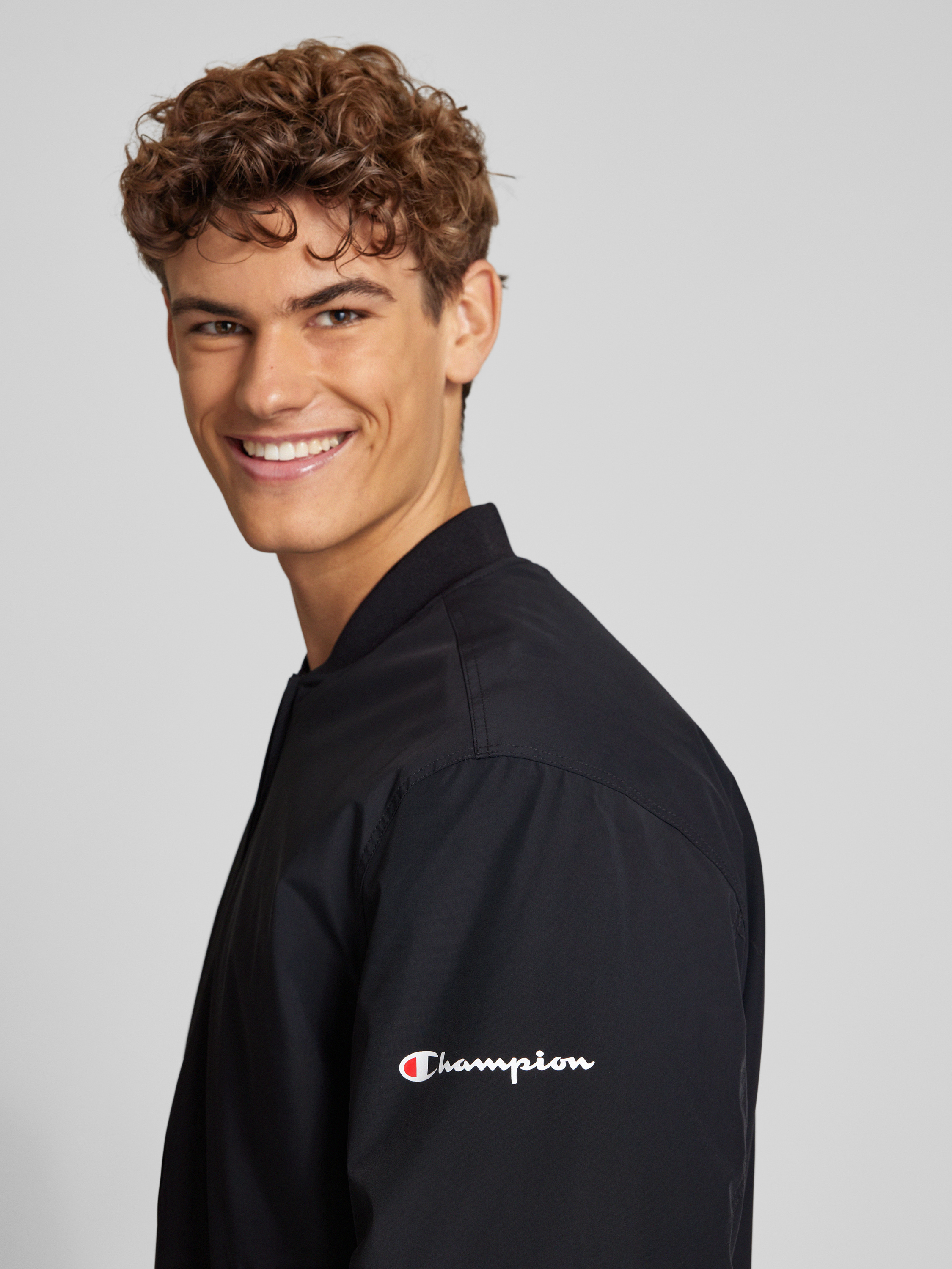 Die Champion Bomberjacke kombiniert einen Material-Mix mit Stretch-Anteil und geradem Schnitt für optimalen Komfort und Bewegungsfreiheit. Der dezente Label-Print verleiht dem Outfit eine moderne Note. Dank der hochwertigen Verarbeitung eignet sie sich ideal für legere und stilvolle Anlässe.