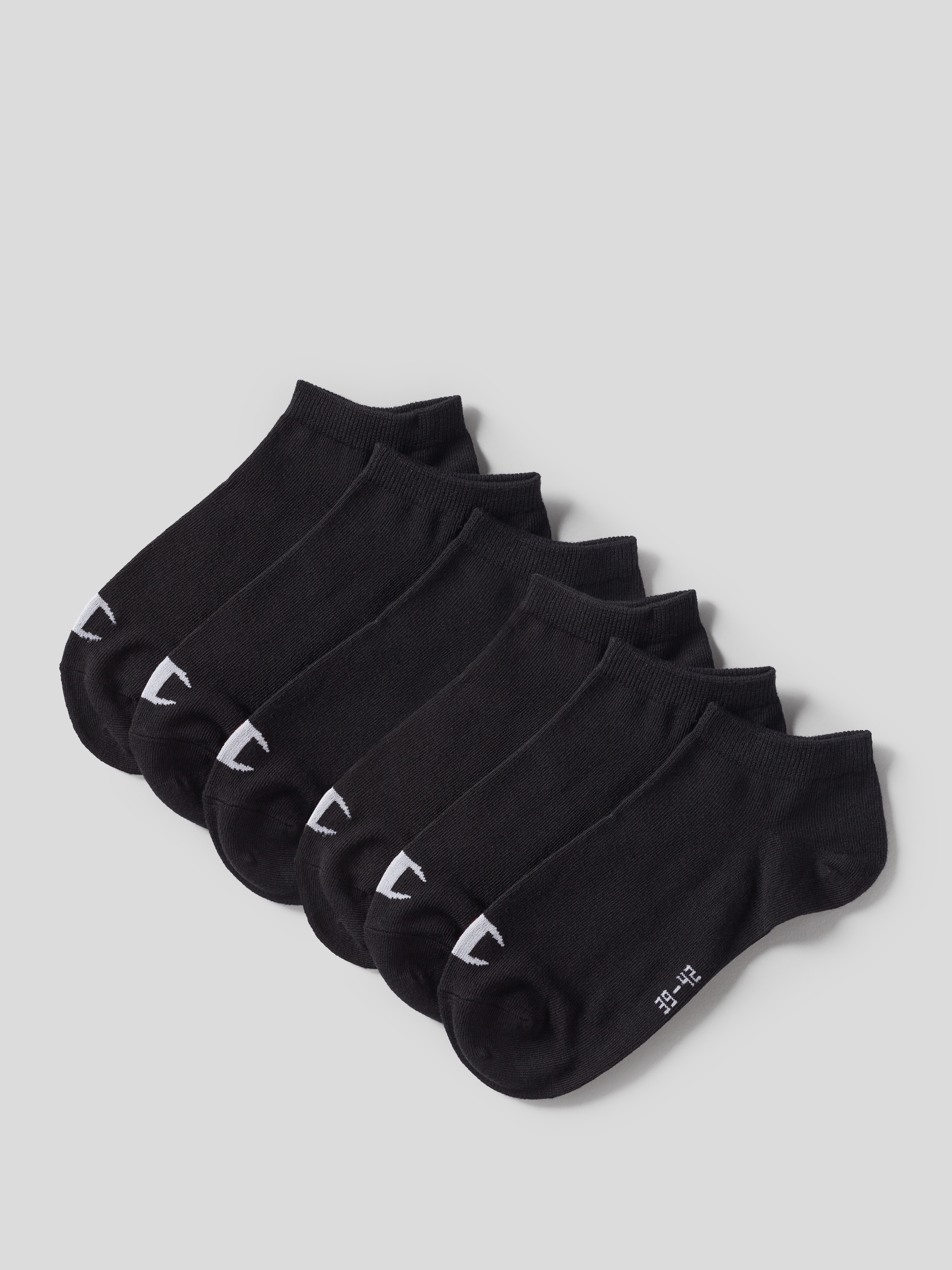 Die Sneakersocken von Champion, gefertigt aus einer Baumwollmischung mit Stretch-Anteil, vereinen Komfort mit einem dezenten Label-Print. Dank des unifarbenen Designs im 6er-Pack lassen sie sich vielseitig kombinieren. Der elastische Bund sorgt für einen bequemen Sitz im Alltag.