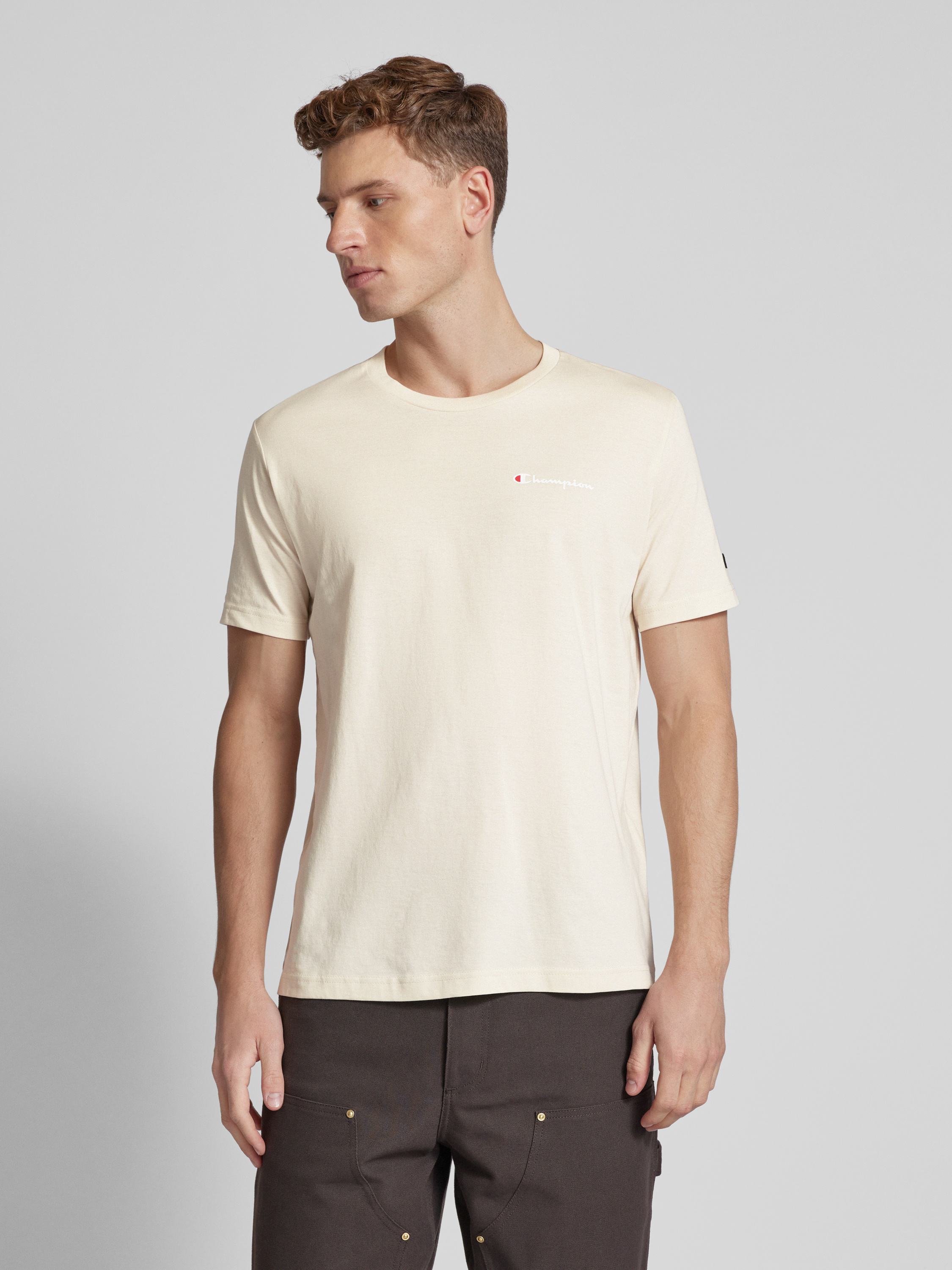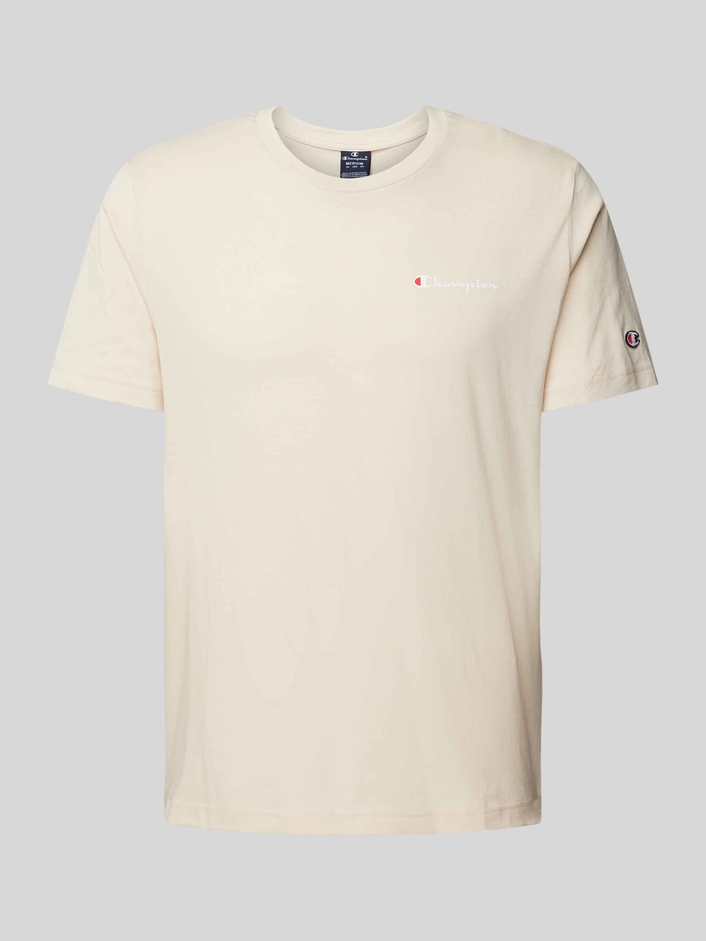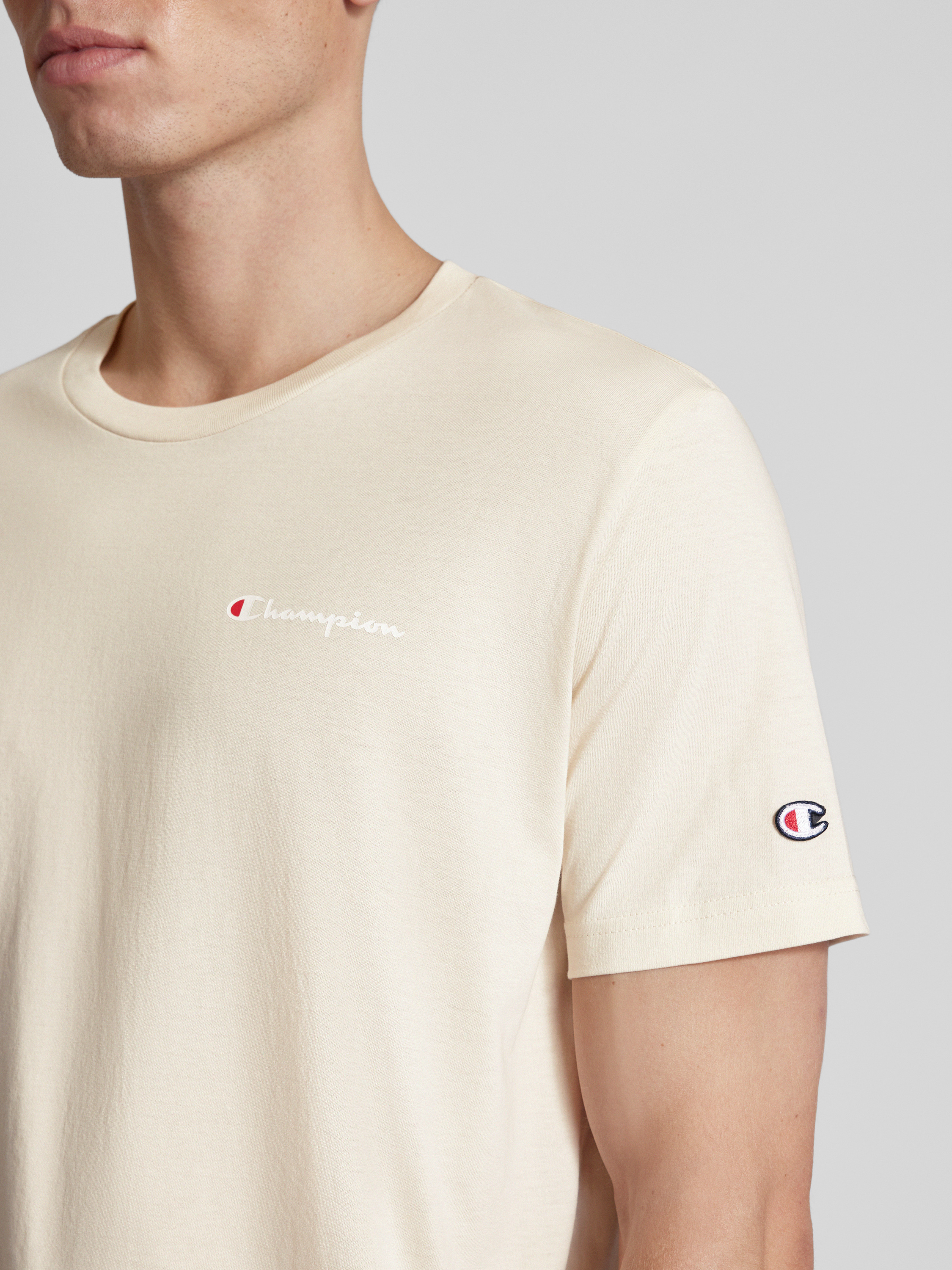 Das Champion T-Shirt mit Label-Print und Logo-Patch kombiniert lässigen Stil mit hochwertiger, merzerisierter Baumwolle, die für ein angenehmes Tragegefühl sorgt. Der gerade Schnitt und das unifarbene Design machen es vielseitig kombinierbar. Der Rundhalsausschnitt verleiht dem T-Shirt eine klassische Note.