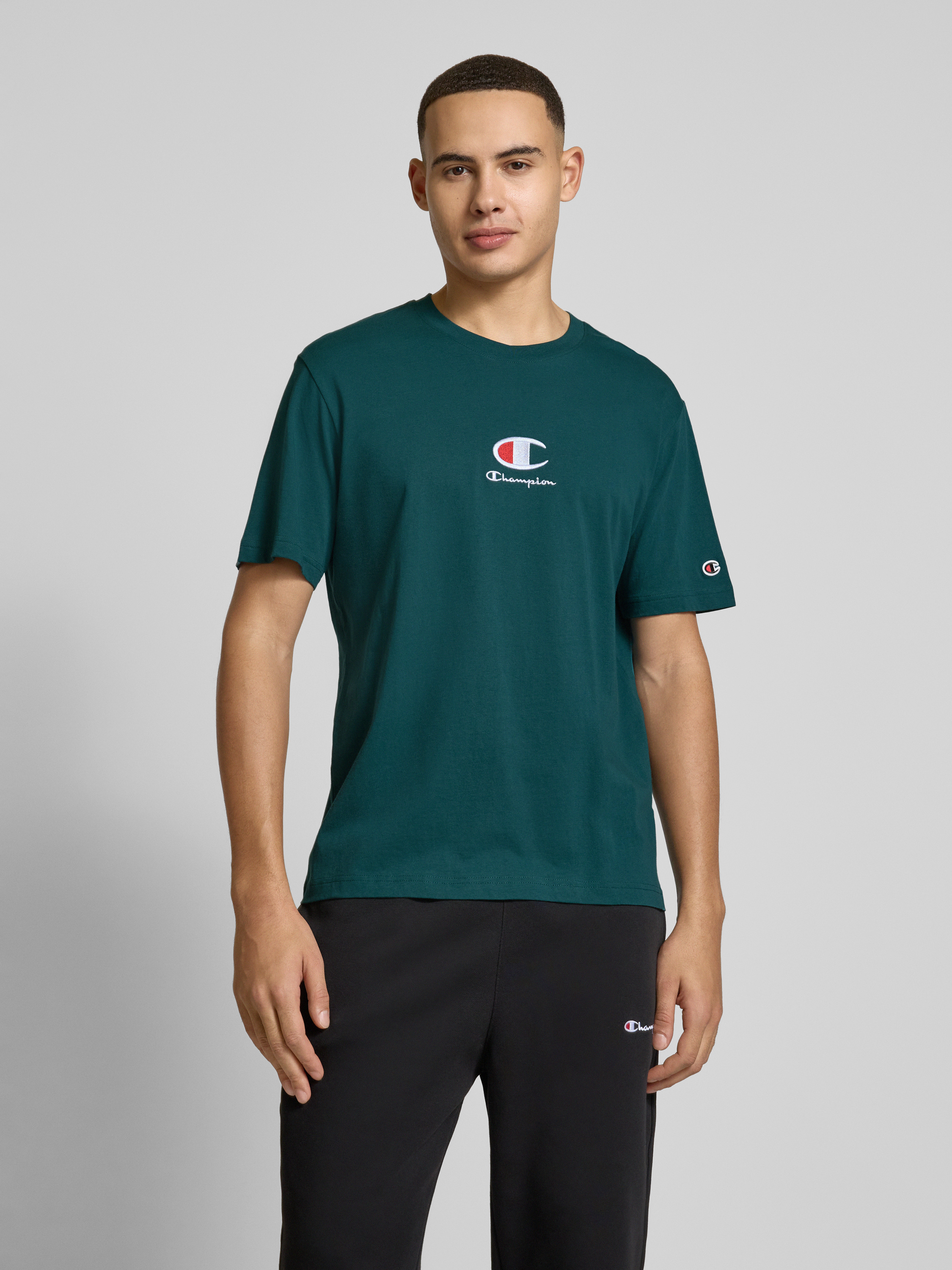 CHAMPIONT-Shirt mit Label-Stitching in dunkelgruen