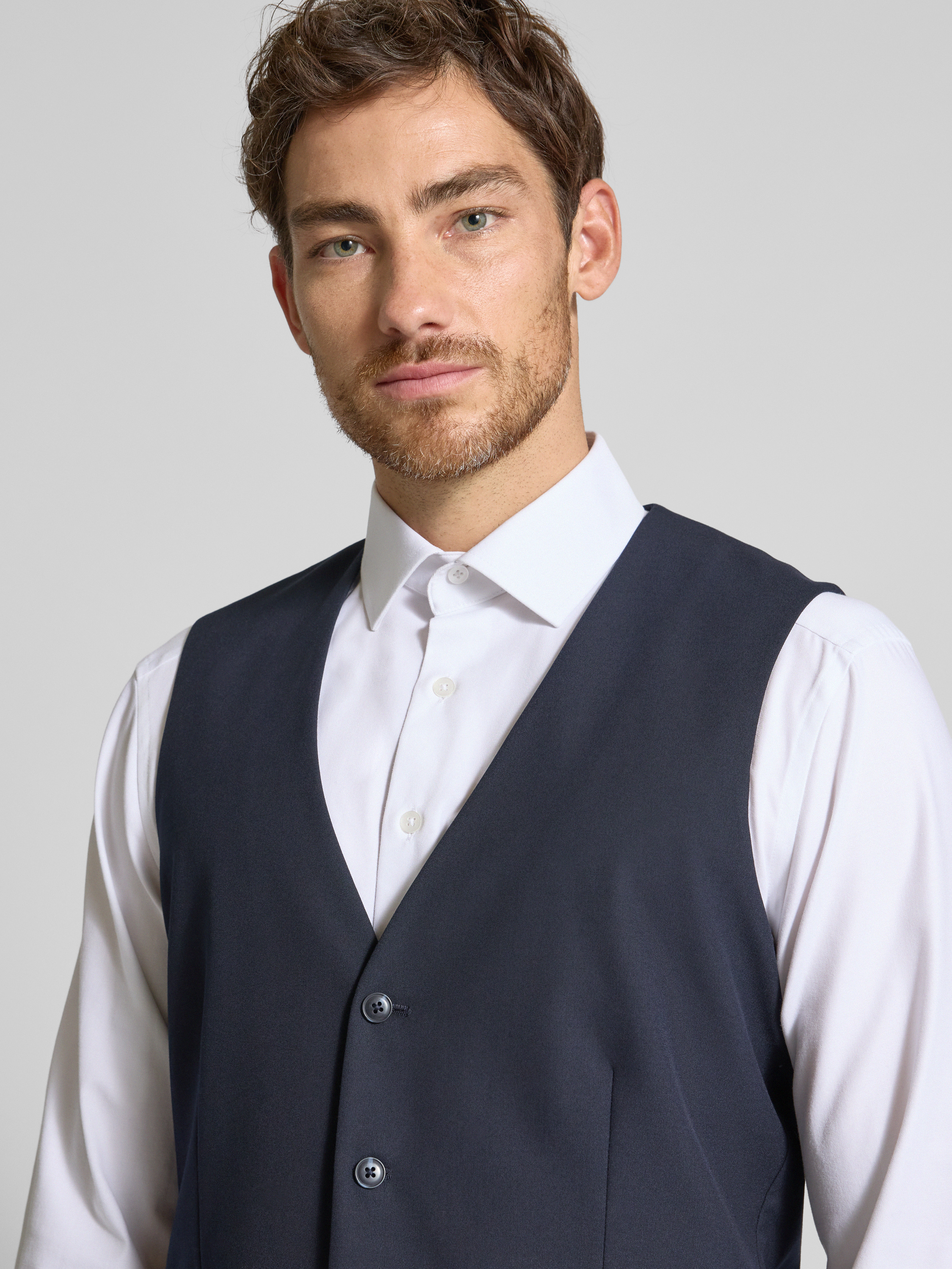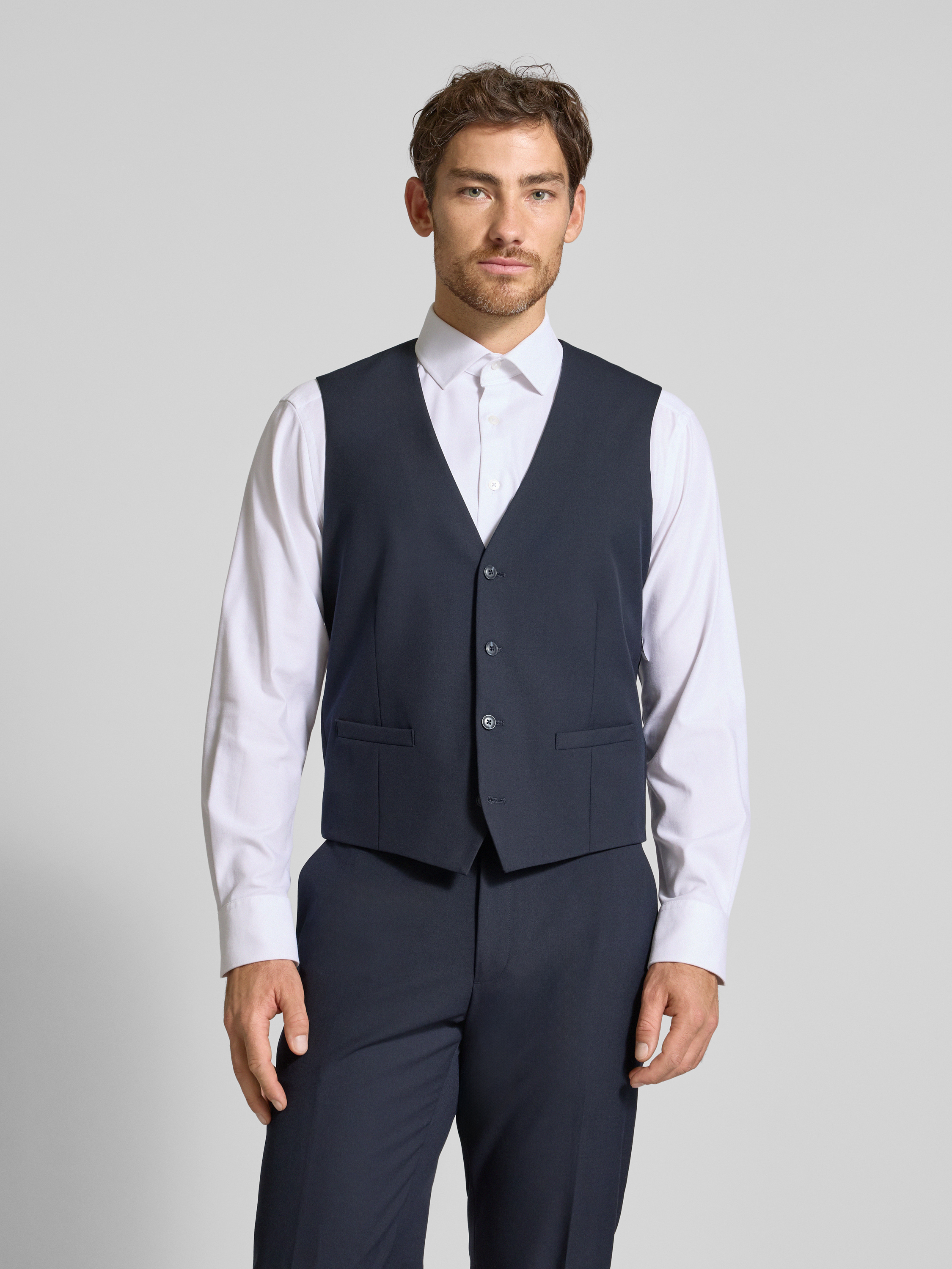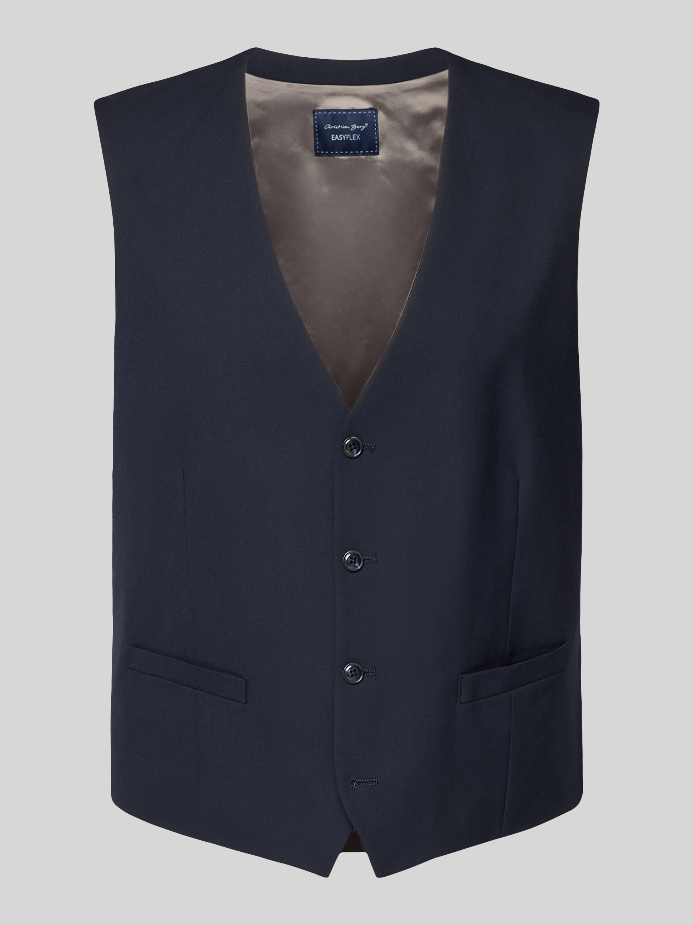 Die Anzugweste von Christian Berg Men kombiniert einen edlen Material-Mix mit einem zeitlosen, unifarbenen Design. Durch den geraden Schnitt und den V-Ausschnitt entsteht eine vielseitige Passform, die sich mühelos in jeden Kleiderschrank integrieren lässt. Ein diskreter Zierbesatz rundet das elegante Gesamtbild ab.
