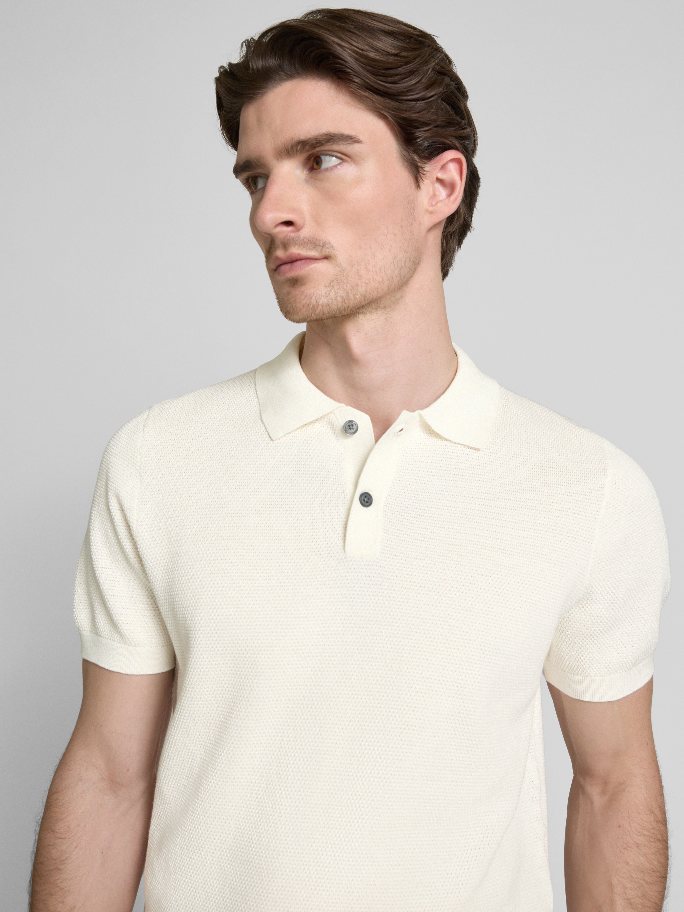 Christian Berg MenPoloshirt mit gerippten Abschlüssen in offwhite