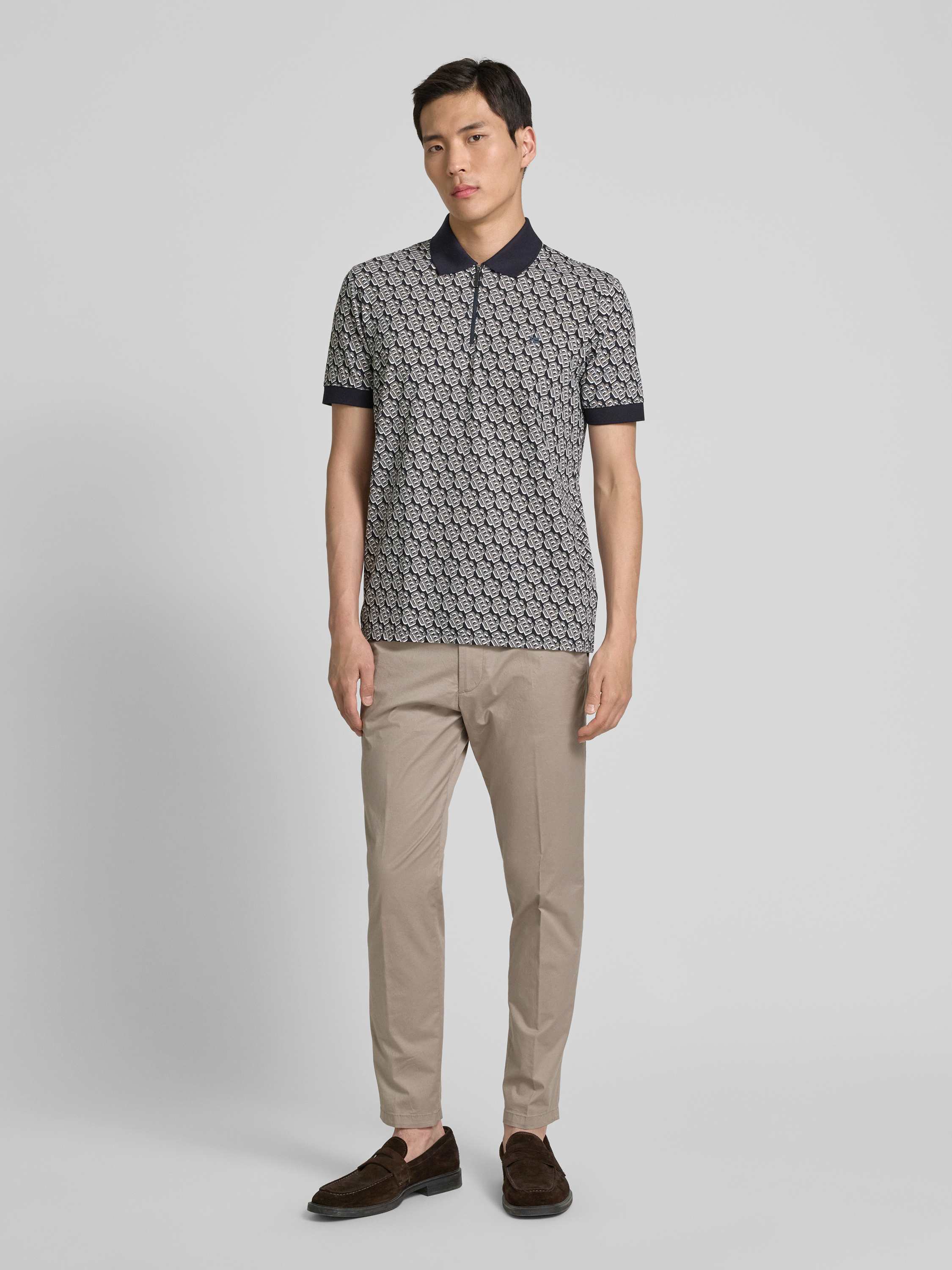 Das Poloshirt von Christian Berg Men kombiniert stilvoll einen klassischen Polokragen mit modernen, gerippten Ärmelabschlüssen. Der angenehme Baumwoll-Mix mit Stretch-Anteil sorgt für eine bequeme Passform, während der Regular Fit vielseitig einsetzbar ist. Ein kurzer Reißverschluss rundet das Gesamtbild ab.