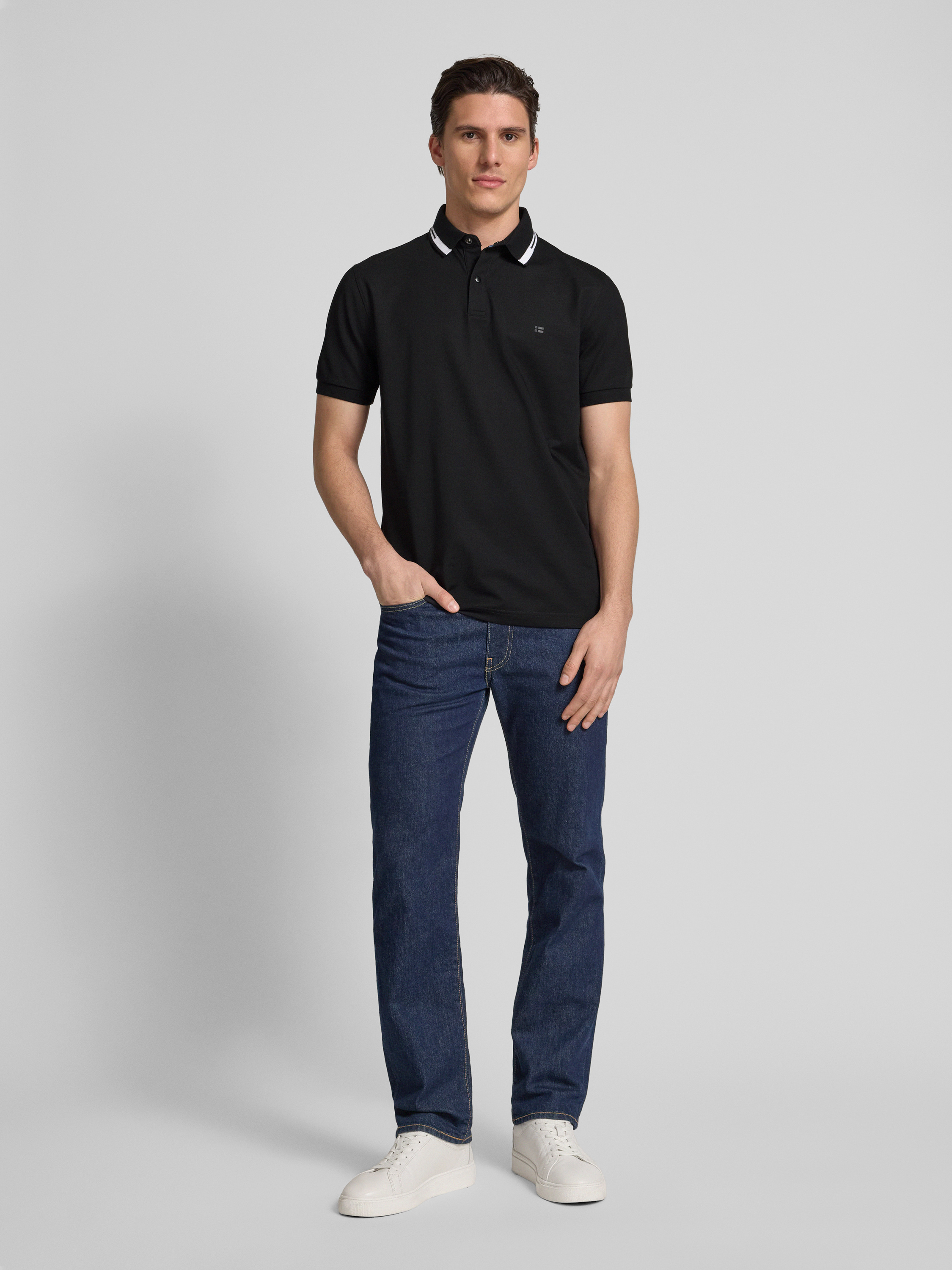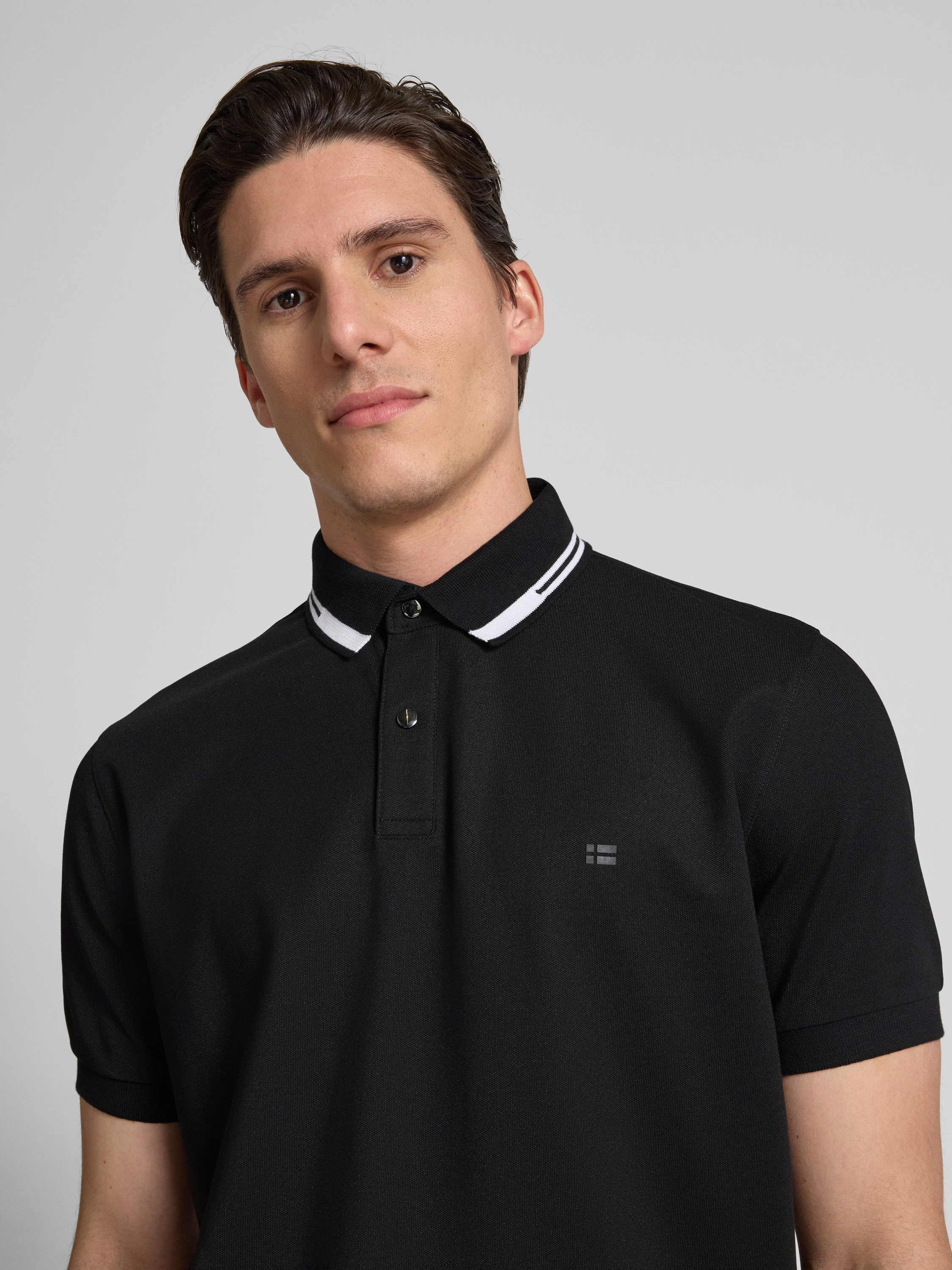 Christian Berg MenPoloshirt mit kurzer Knopfleiste und Logo-Print in black