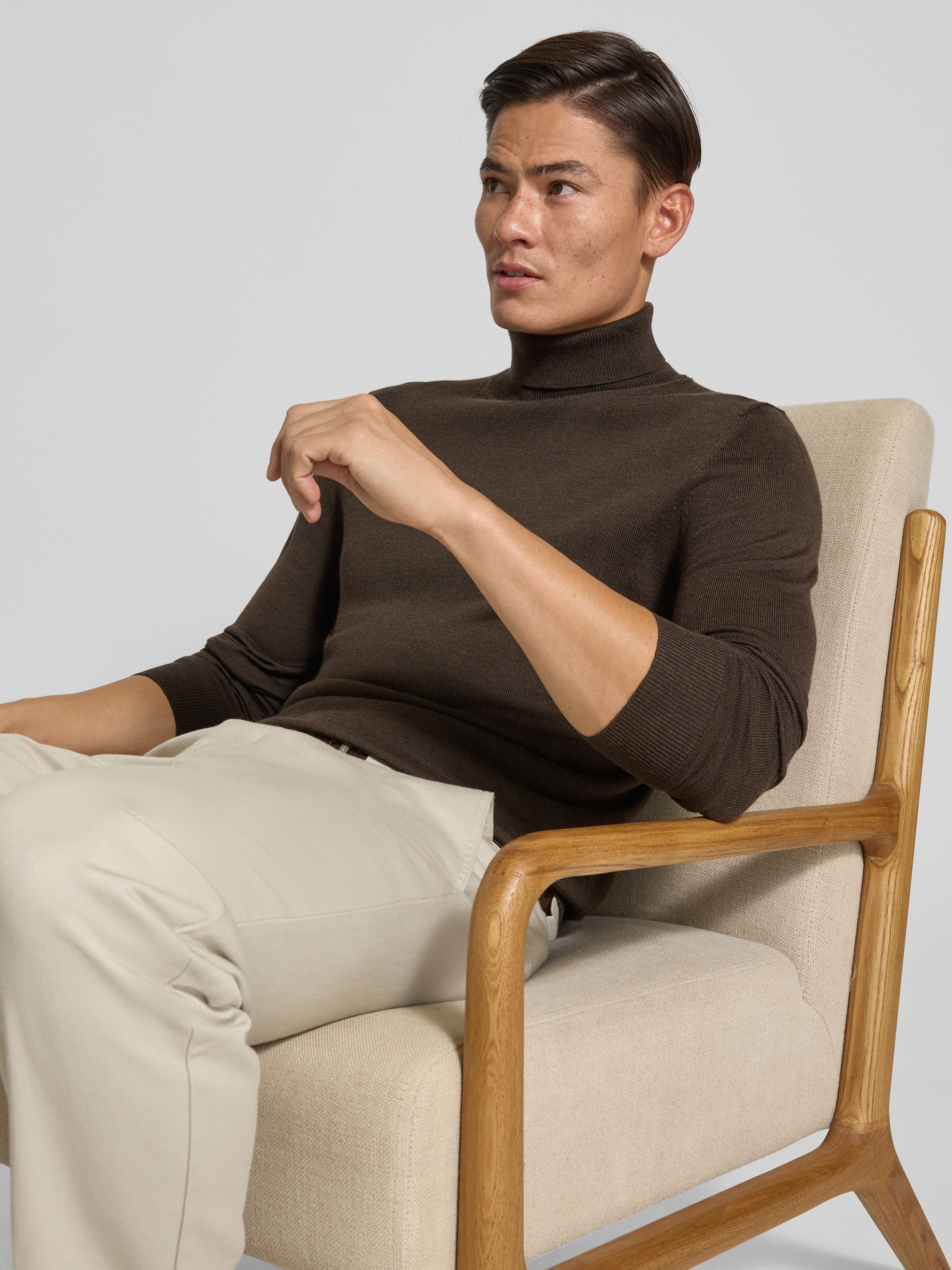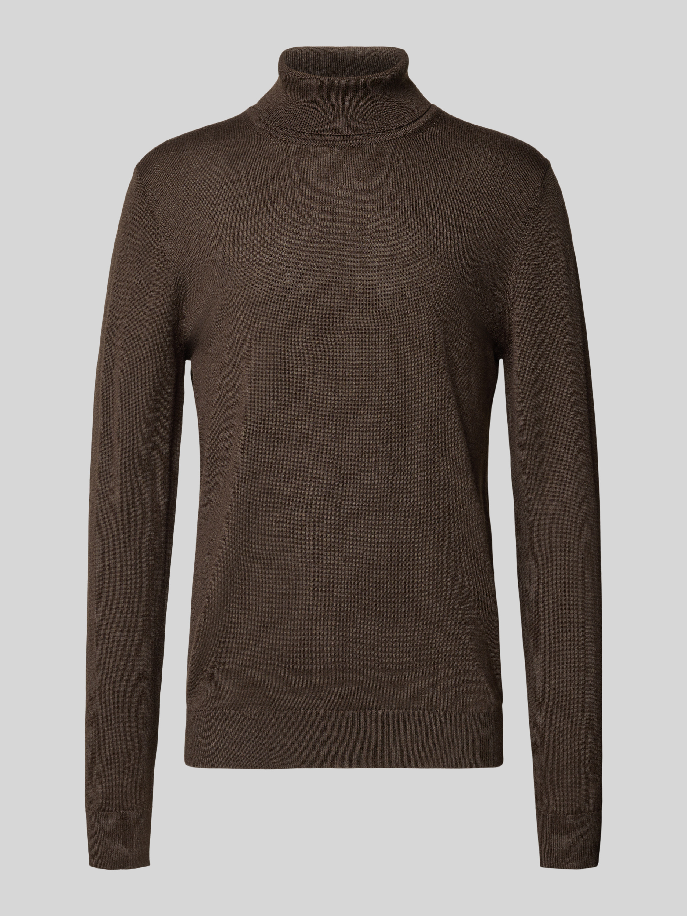 Christian Berg MenPullover aus Merino-Mix mit Rollkragen in dunkelbraun melange