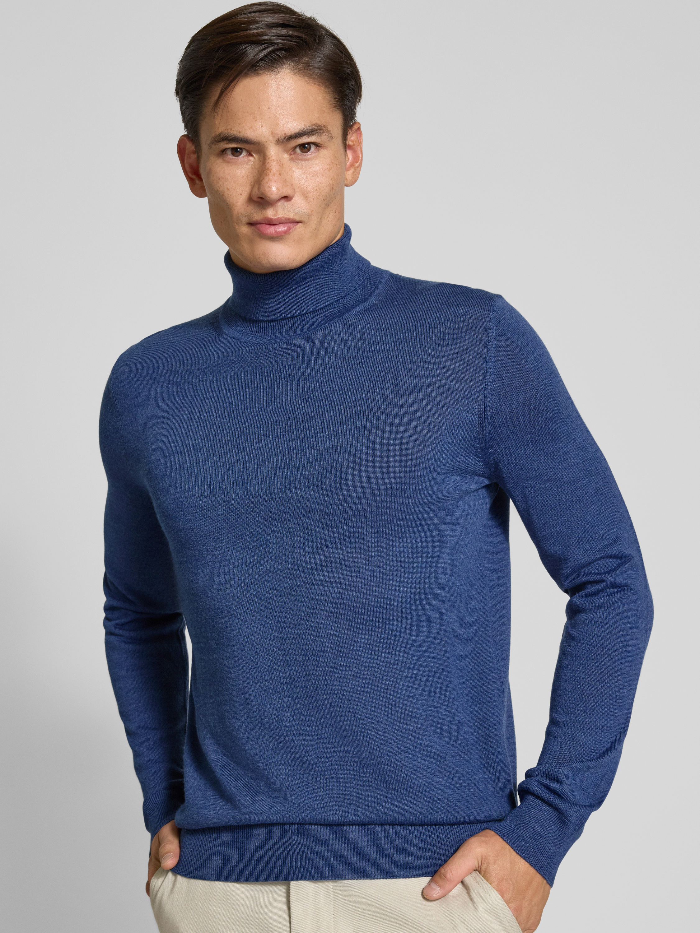 Christian Berg MenPullover aus Merino-Mix mit Rollkragen in jeansblau melange