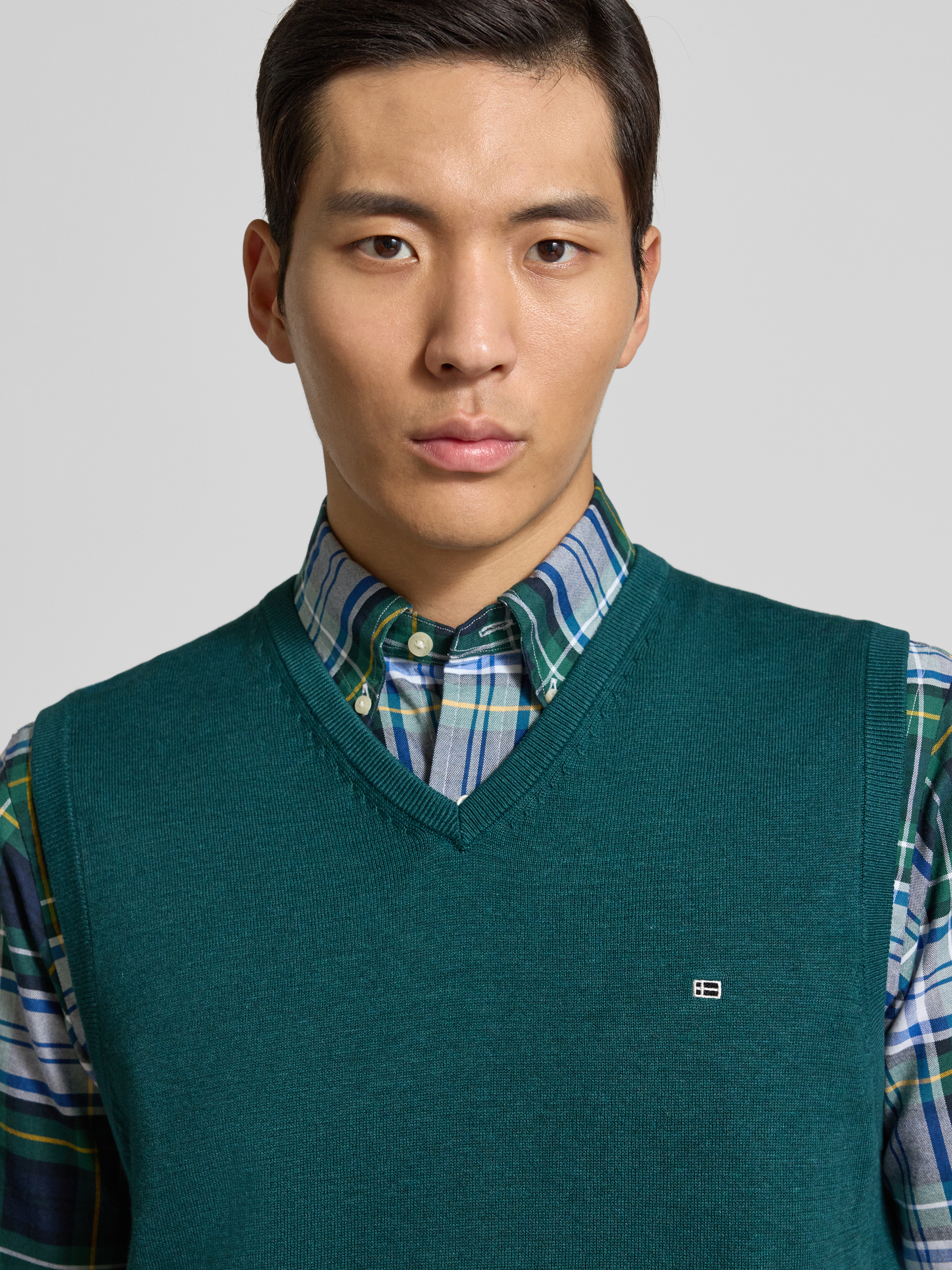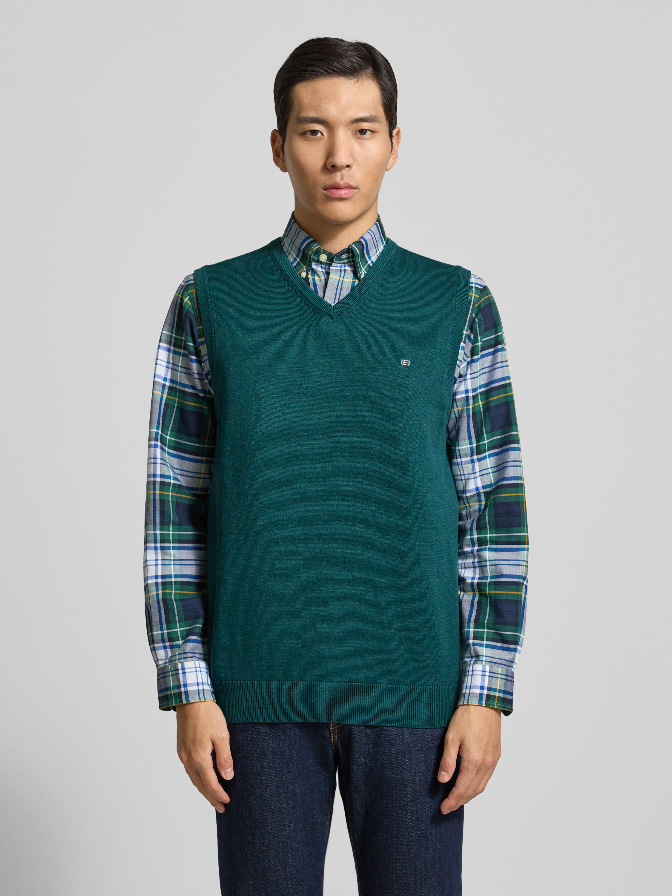 Der Herren Pullunder von Christian Berg Men zeichnet sich durch reine Baumwolle und einen angenehmen Regular Fit aus, wodurch er vielseitig kombinierbar bleibt. Durch den klassischen V-Ausschnitt und die dezenten gerippten Abschlüsse entsteht eine schlichte, gepflegte Silhouette. Das Label-Stitching rundet das Gesamtbild unaufdringlich ab.
