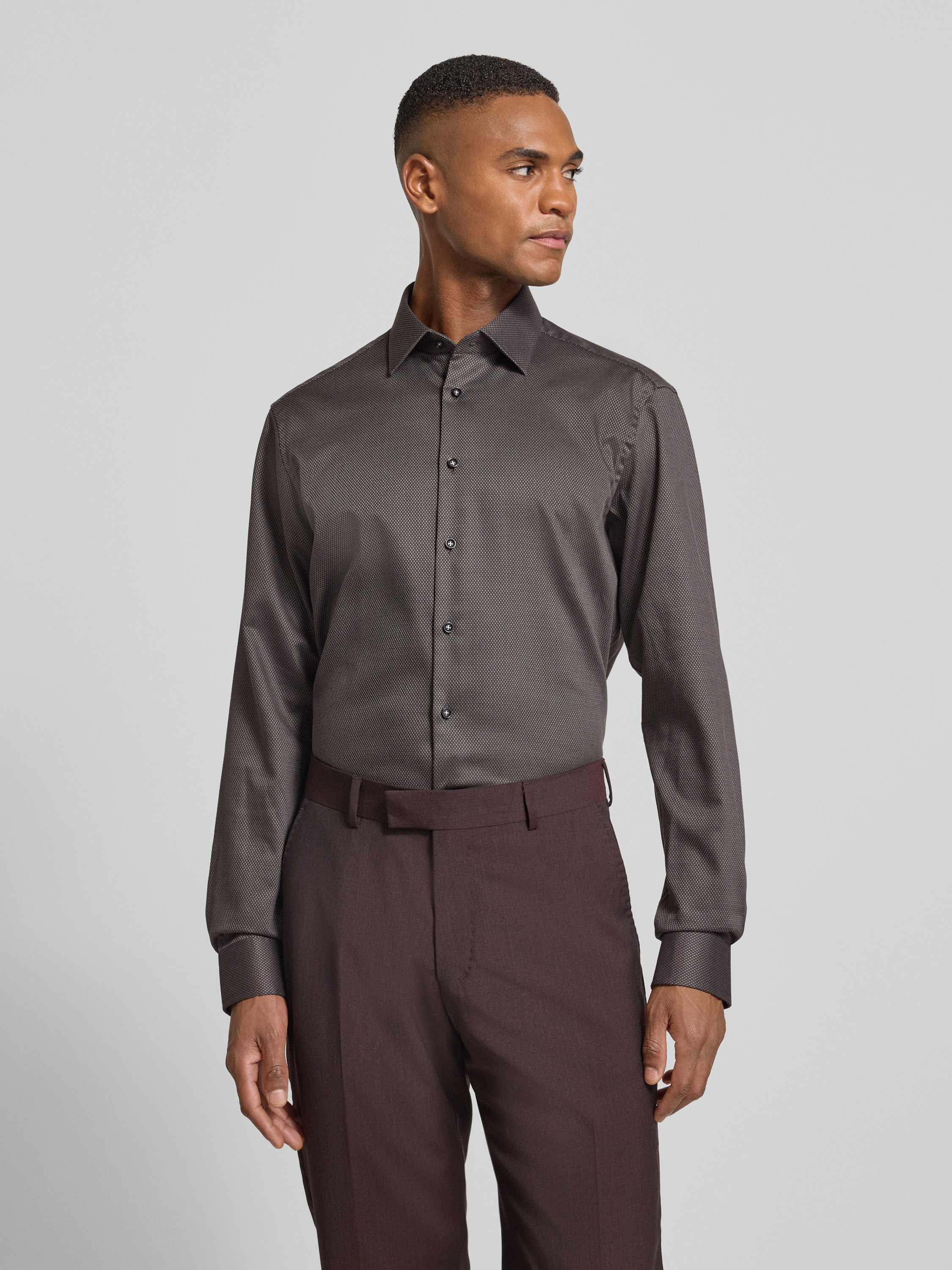 Christian Berg MenRegular Fit Businesshemd aus Baumwolle mit Kentkragen in mittelgrau