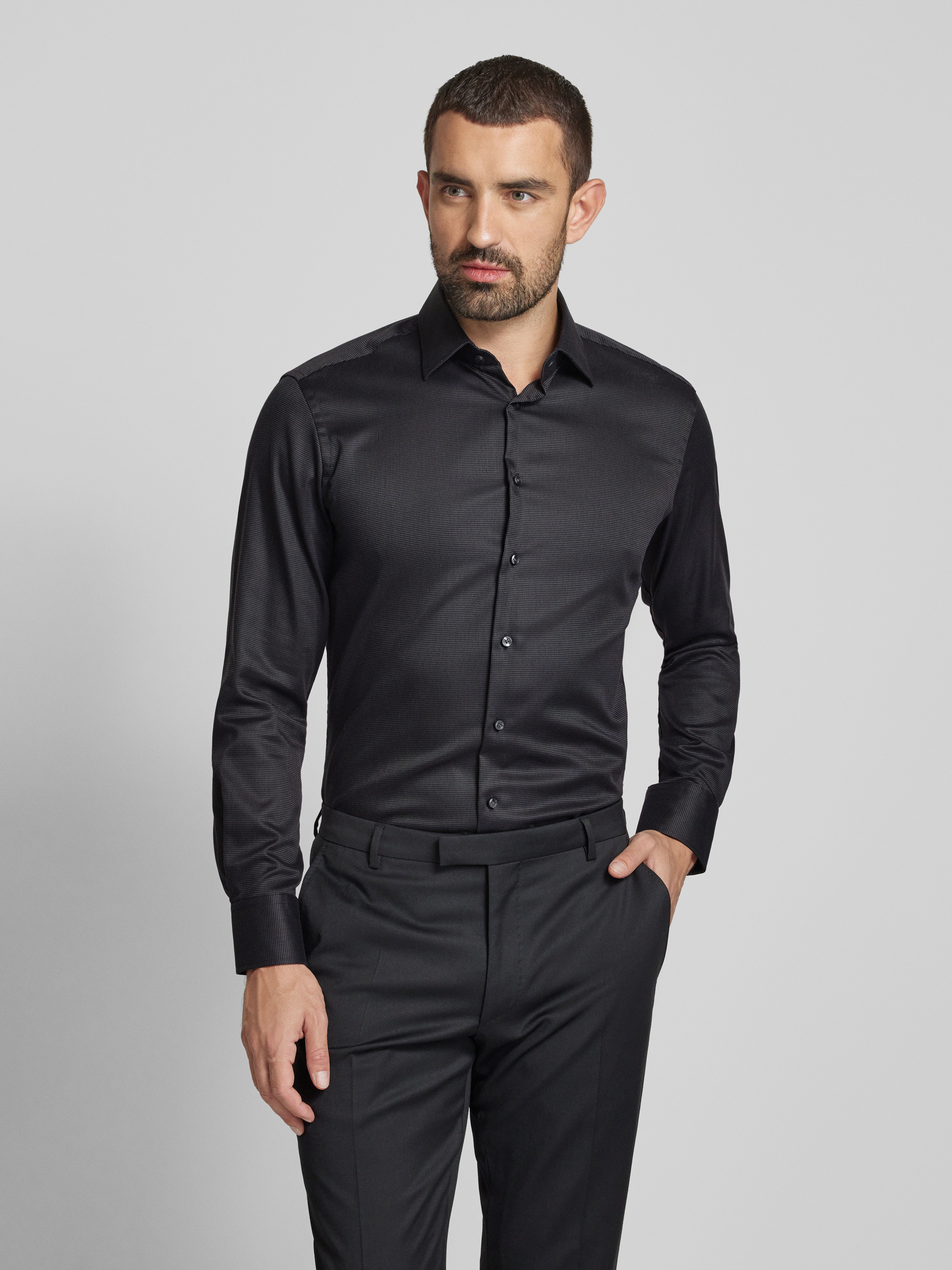 Christian Berg MenRegular Fit Businesshemd in Premiumqualität aus aus Uni-Struktur in anthrazit